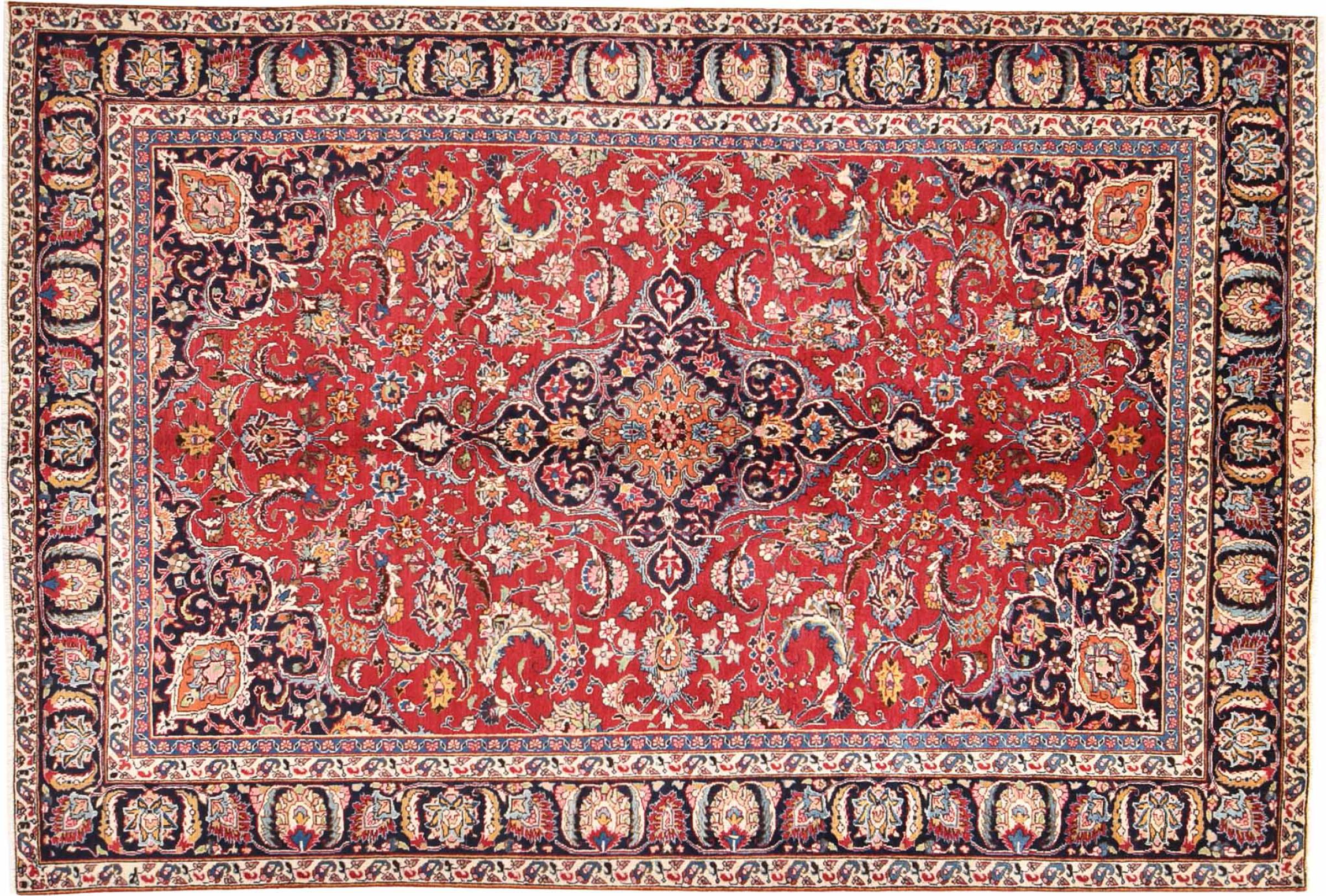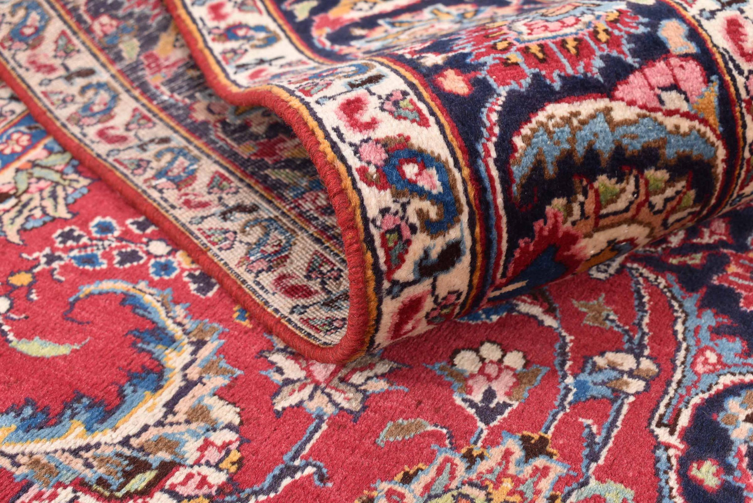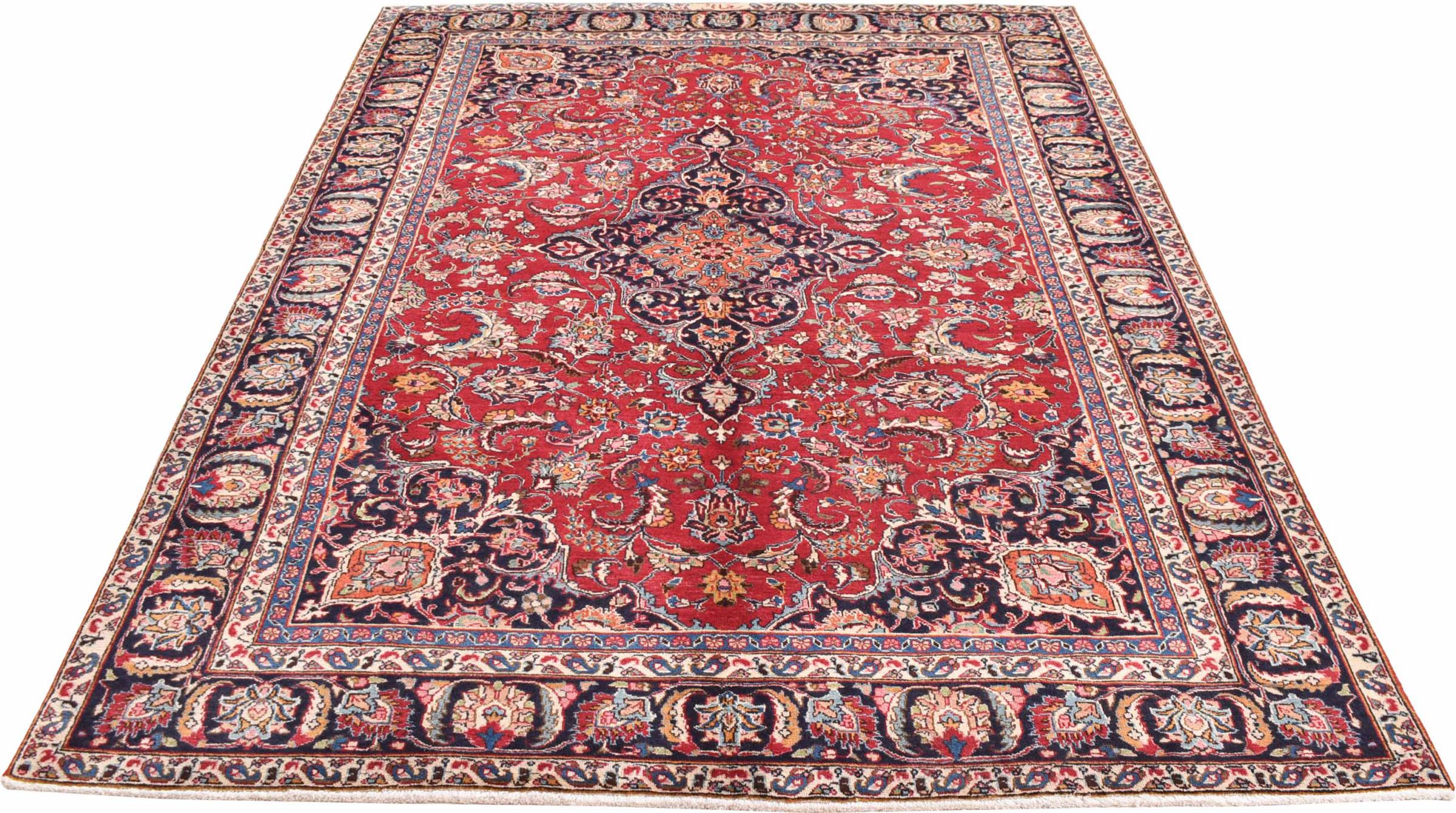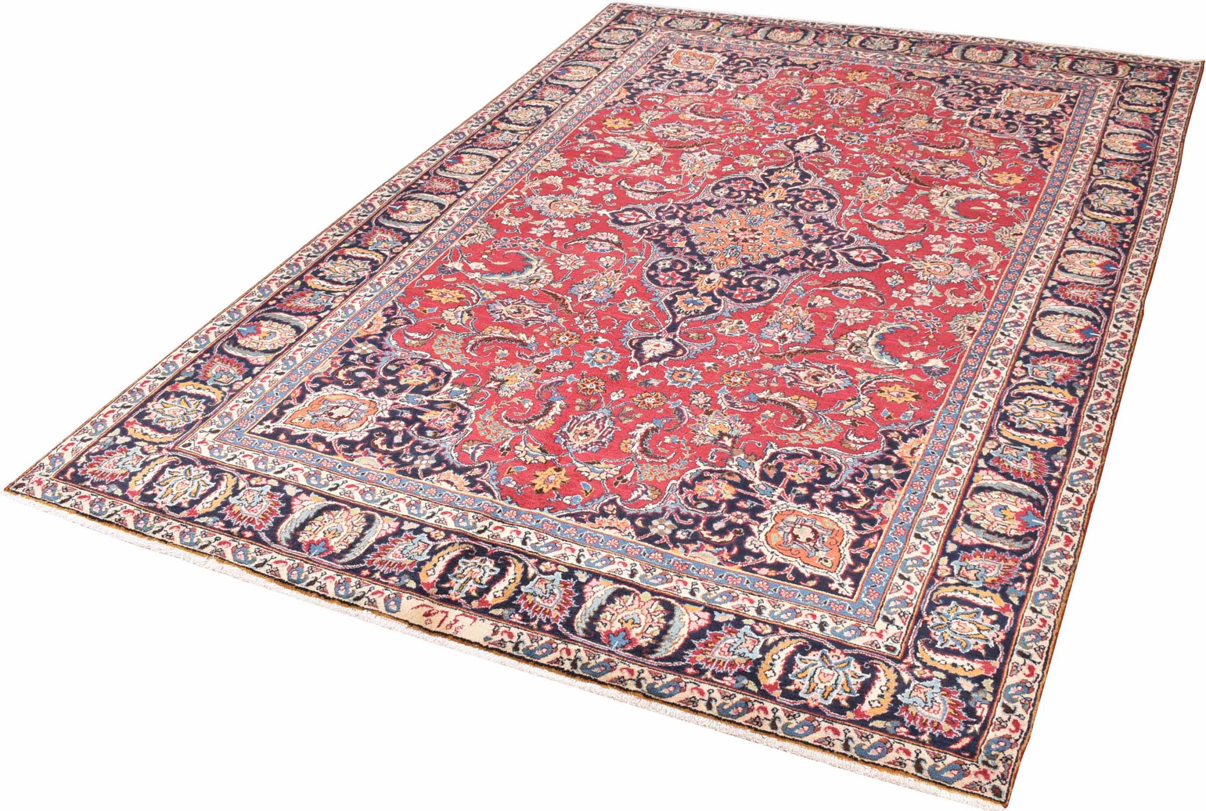 Nr.dywanu: 300845006995550 Wielkość: 282x191 cm Grubość: ok. 12 mm Gęstość tkania: 160 000 - 200 000 / m² Przetwarzanie: Ręcznie tkane Włosie: Wełna ręcznie przędzona Osnowa: Bawełna Pochodzenie: Persja / Iran Wiek: nowe Waga: ok. 19 kg Znany także jako Maschad, Meshed Ilość w magazynie: Unikalny - Tylko 1 na składzie