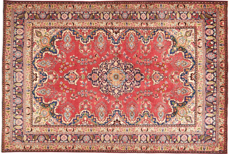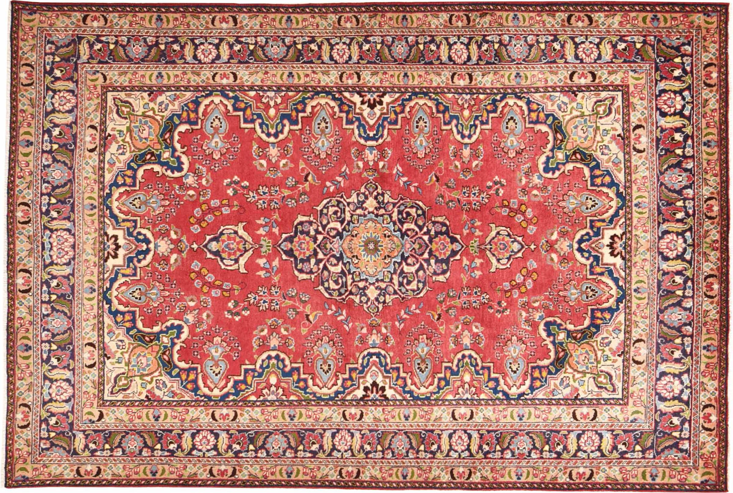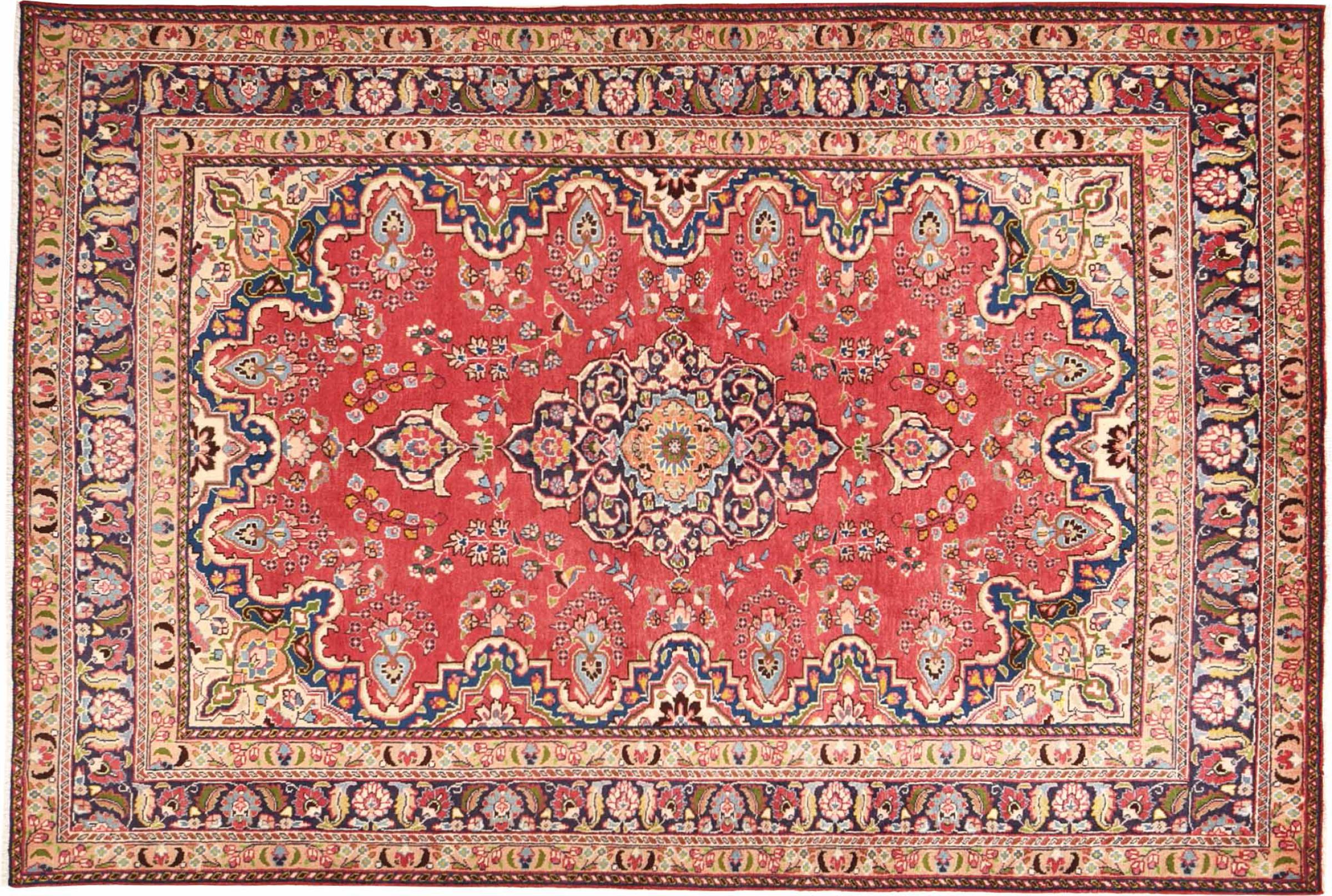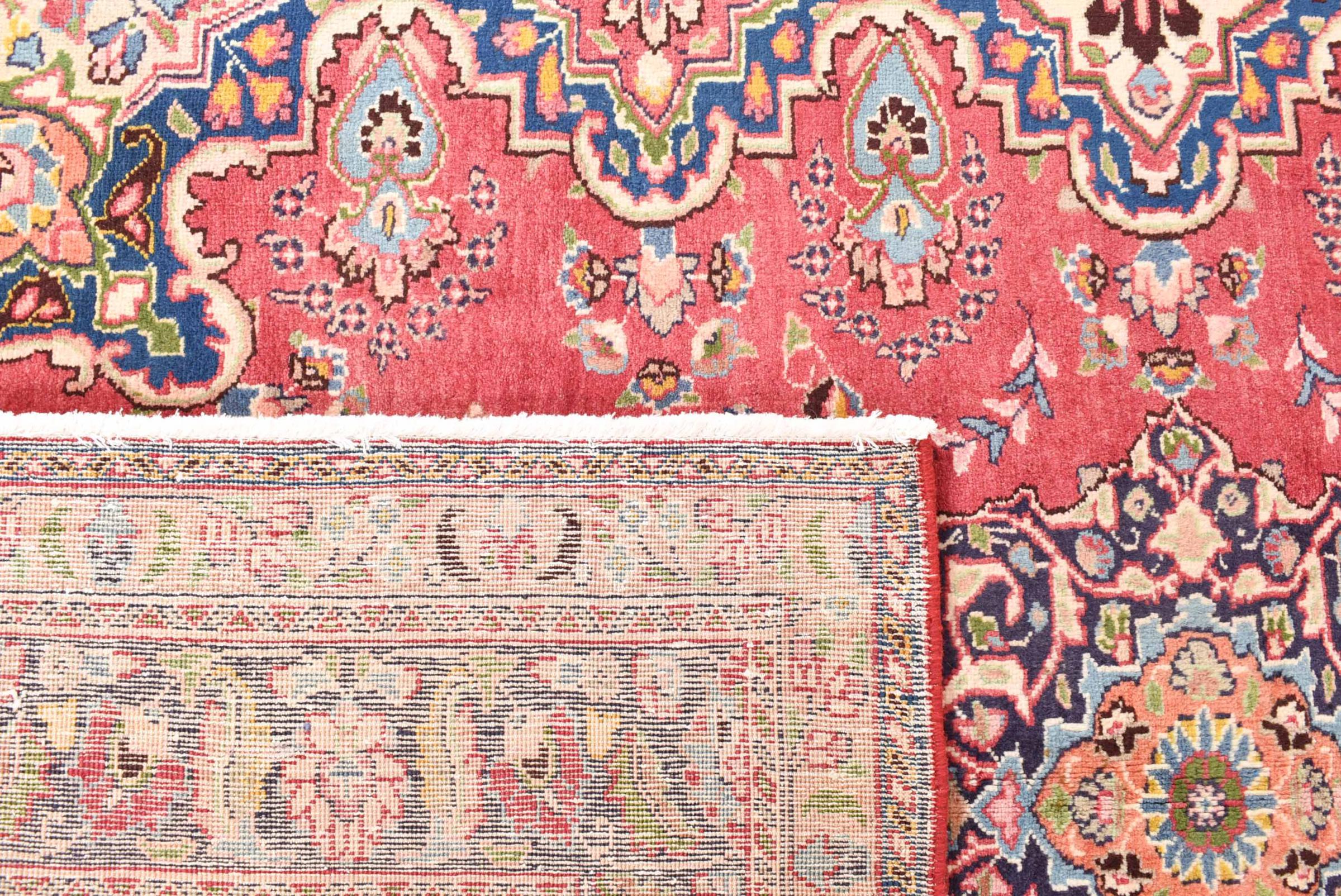 Nr.dywanu: 30079400445997 Wielkość: 290x196 cm Grubość: ok. 12 mm Gęstość tkania: 128 000 - 160 000 / m² Przetwarzanie: Ręcznie tkane Włosie: Wełna ręcznie przędzona Osnowa: Bawełna Pochodzenie: Persja / Iran Wiek: nowe Waga: ok. 20 kg Znany także jako Maschad, Meshed Ilość w magazynie: Unikalny - Tylko 1 na składzie