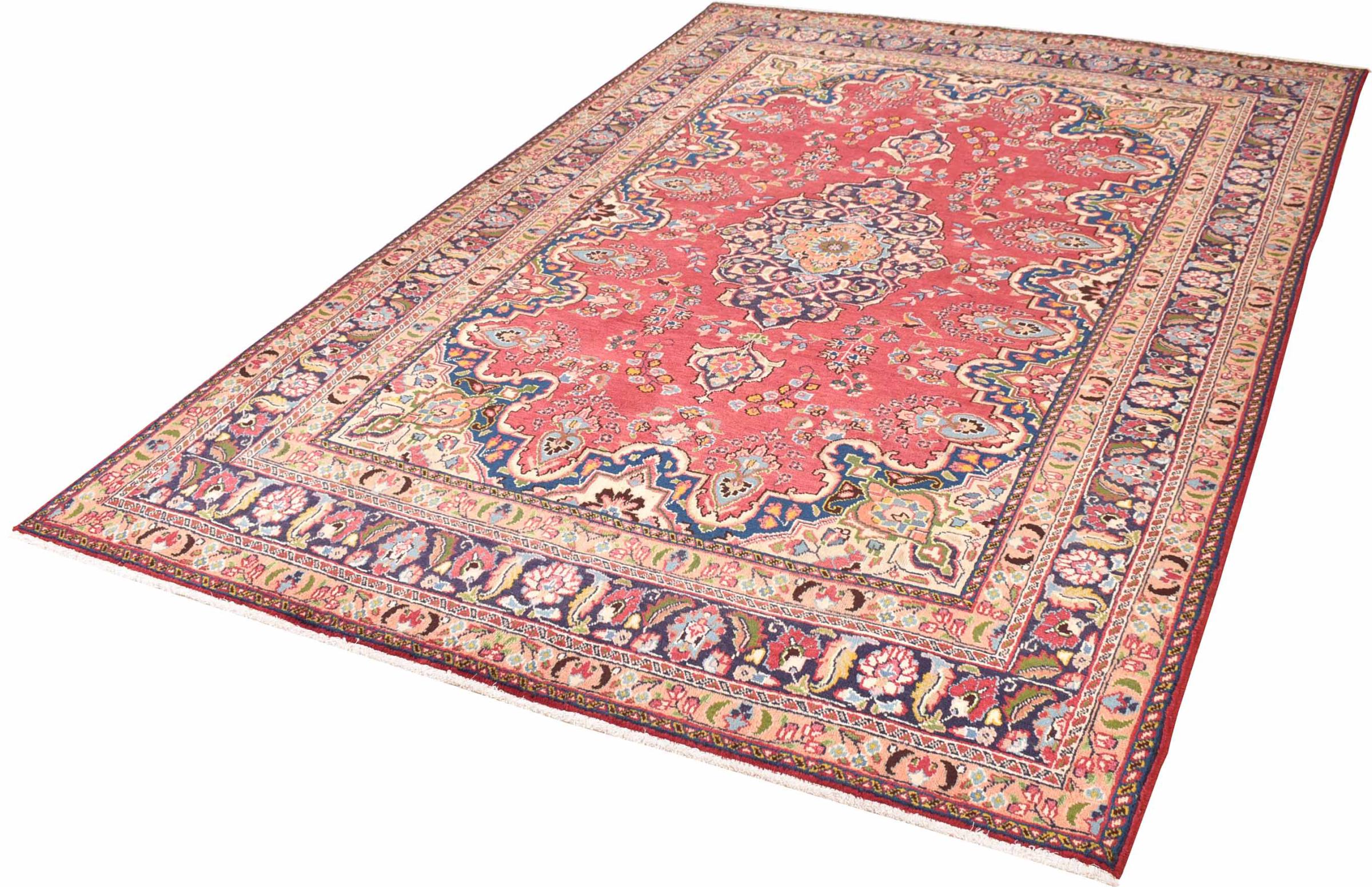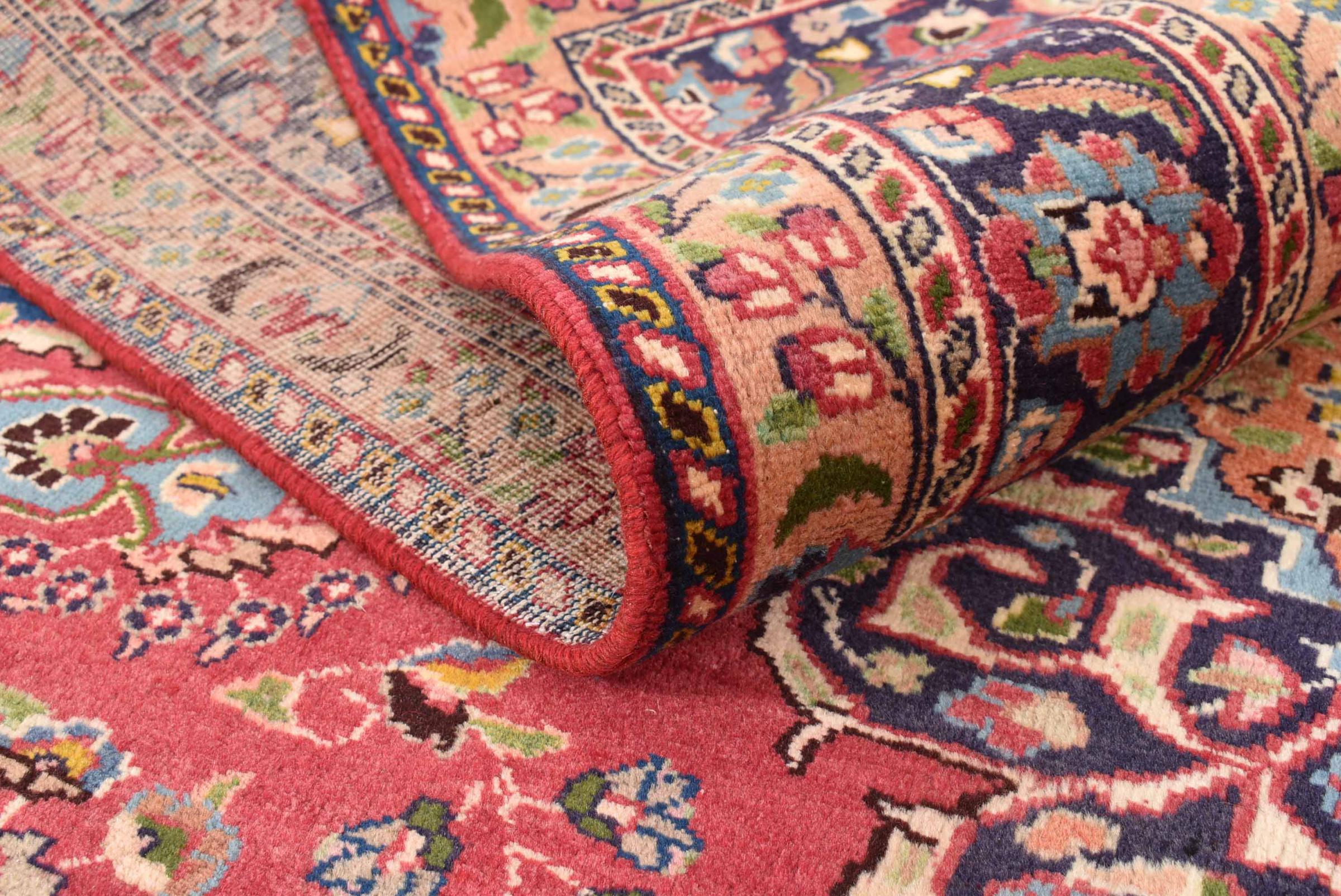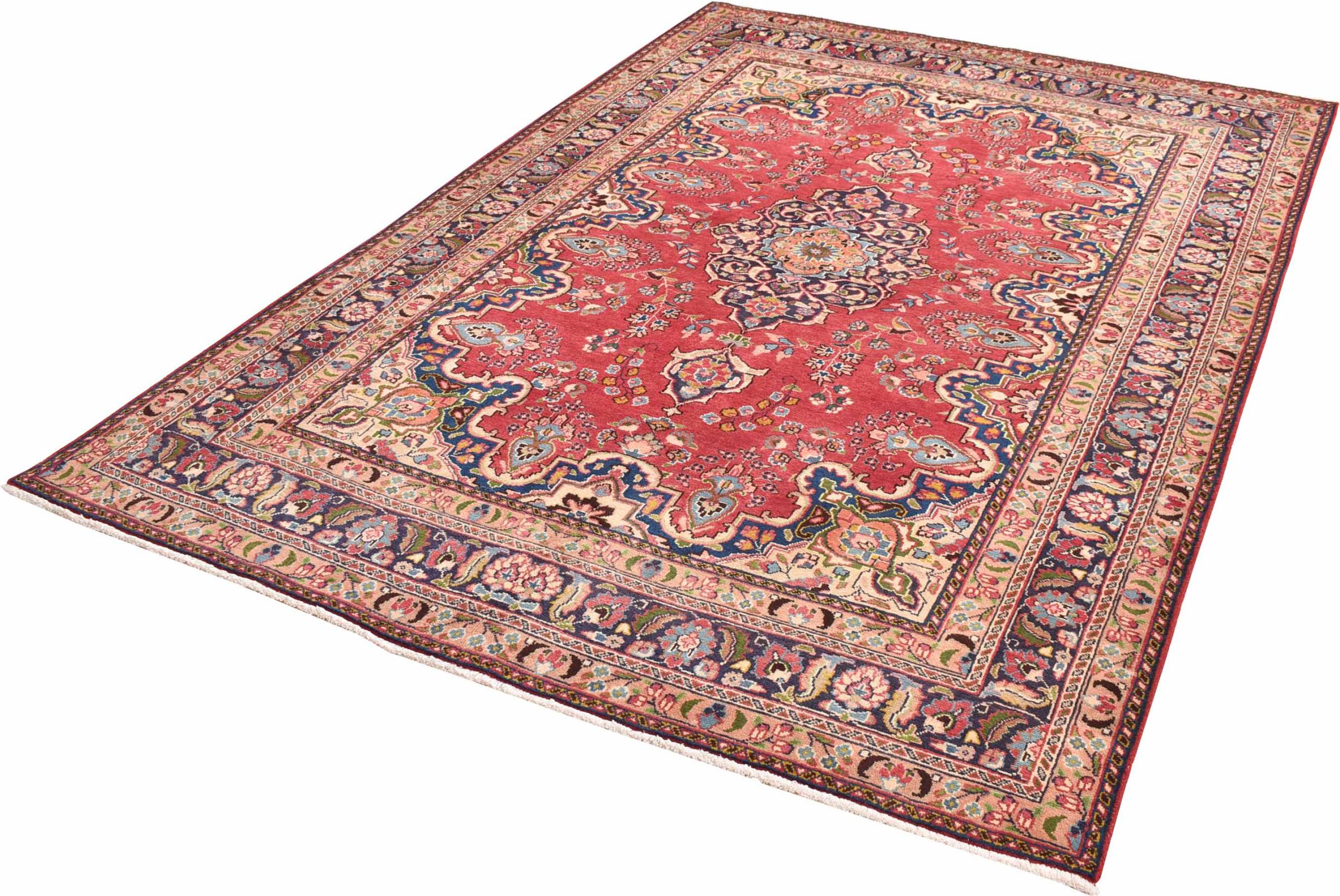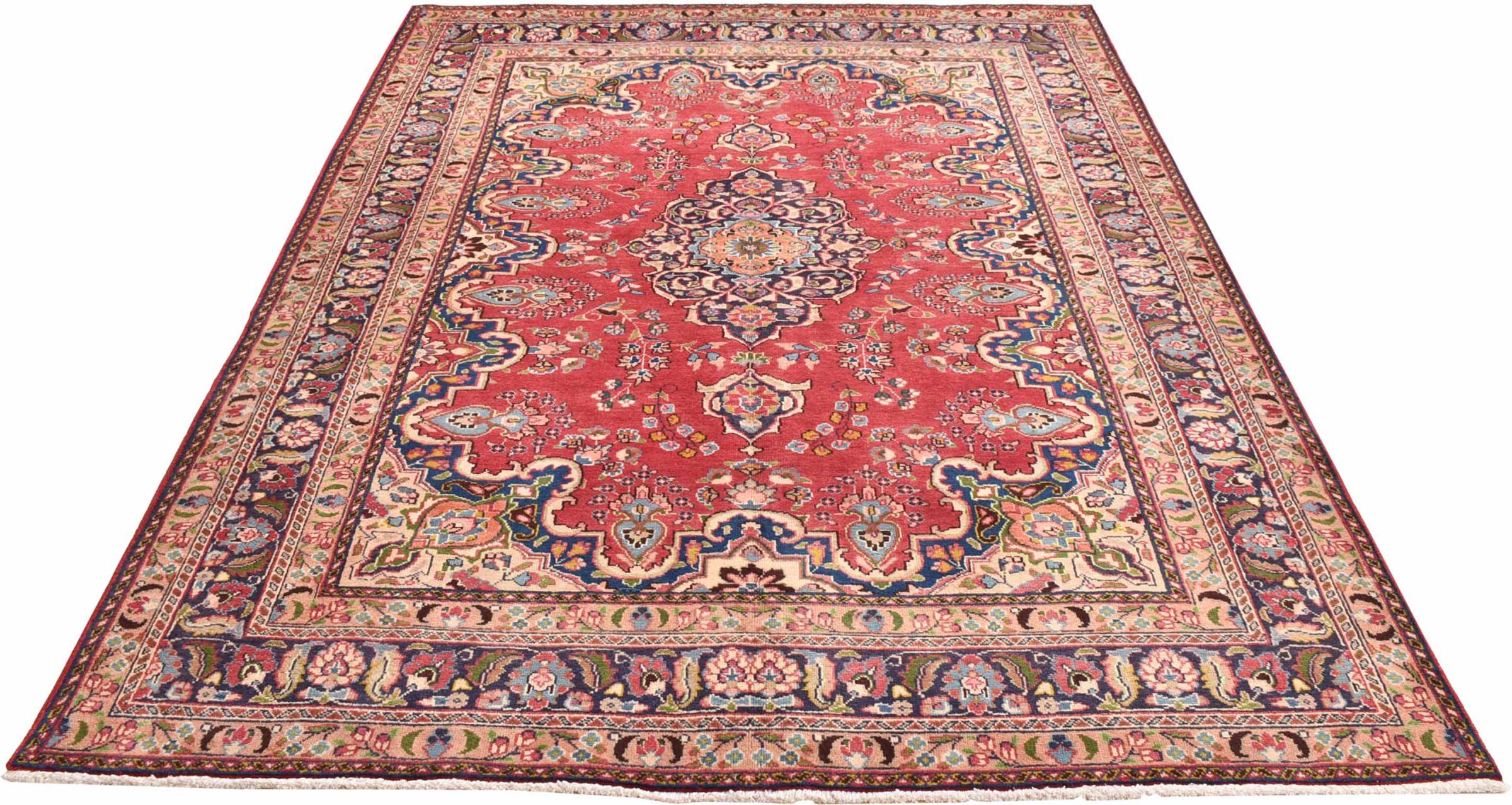 Nr.dywanu: 30079400445997 Wielkość: 290x196 cm Grubość: ok. 12 mm Gęstość tkania: 128 000 - 160 000 / m² Przetwarzanie: Ręcznie tkane Włosie: Wełna ręcznie przędzona Osnowa: Bawełna Pochodzenie: Persja / Iran Wiek: nowe Waga: ok. 20 kg Znany także jako Maschad, Meshed Ilość w magazynie: Unikalny - Tylko 1 na składzie
