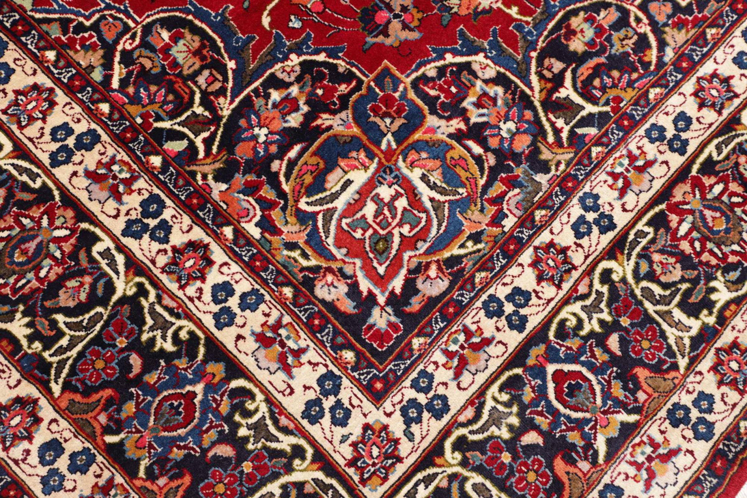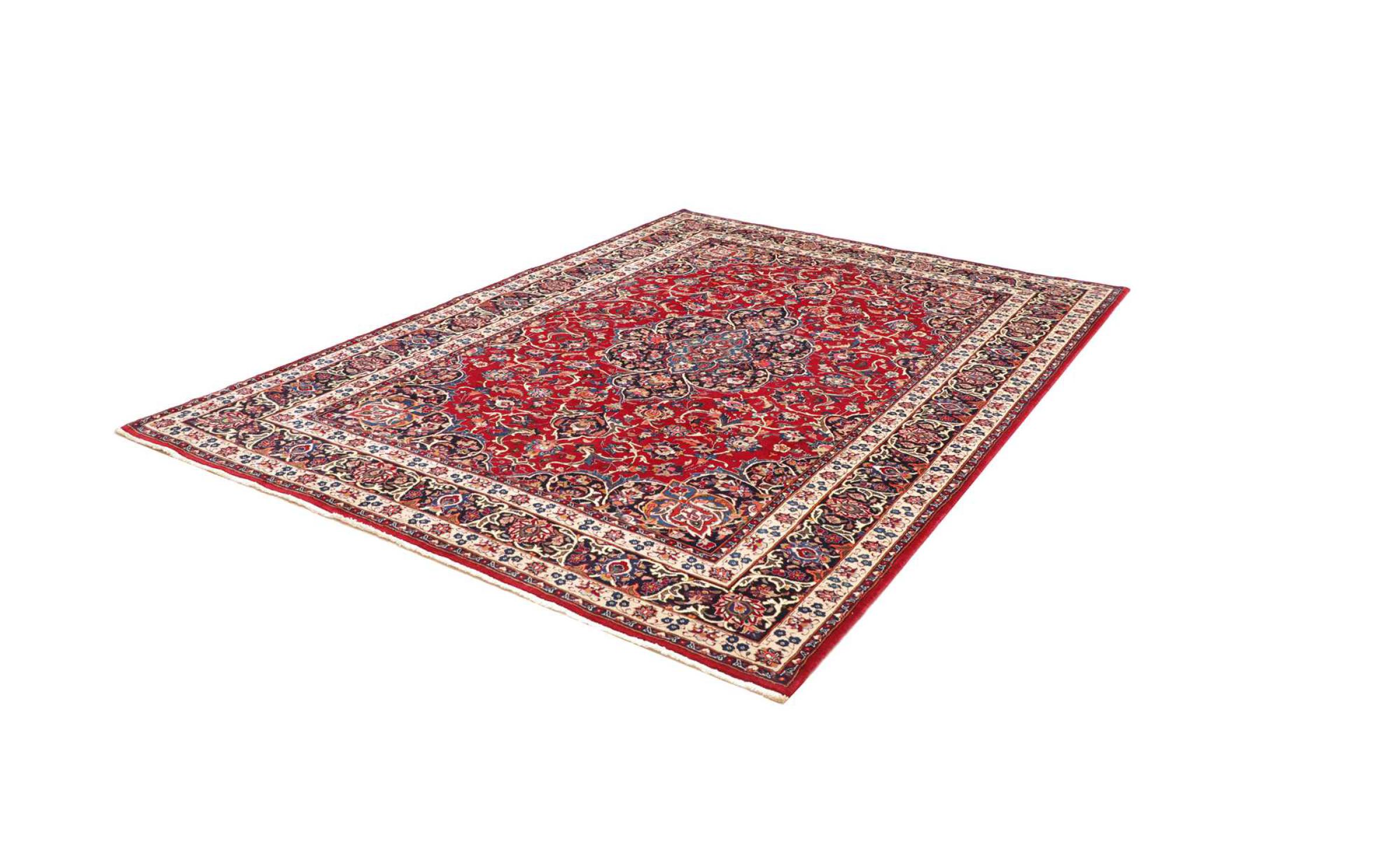 Nr.dywanu: 300775007970601 Wielkość: 291x207 cm Grubość: ok. 12 mm Gęstość tkania: 128 000 - 160 000 / m² Przetwarzanie: Ręcznie tkane Włosie: Wełna ręcznie przędzona Osnowa: Bawełna Pochodzenie: Persja / Iran Wiek: nowe Waga: ok. 21 kg Znany także jako Maschad, Meshed Ilość w magazynie: Unikalny - Tylko 1 na składzie