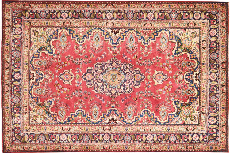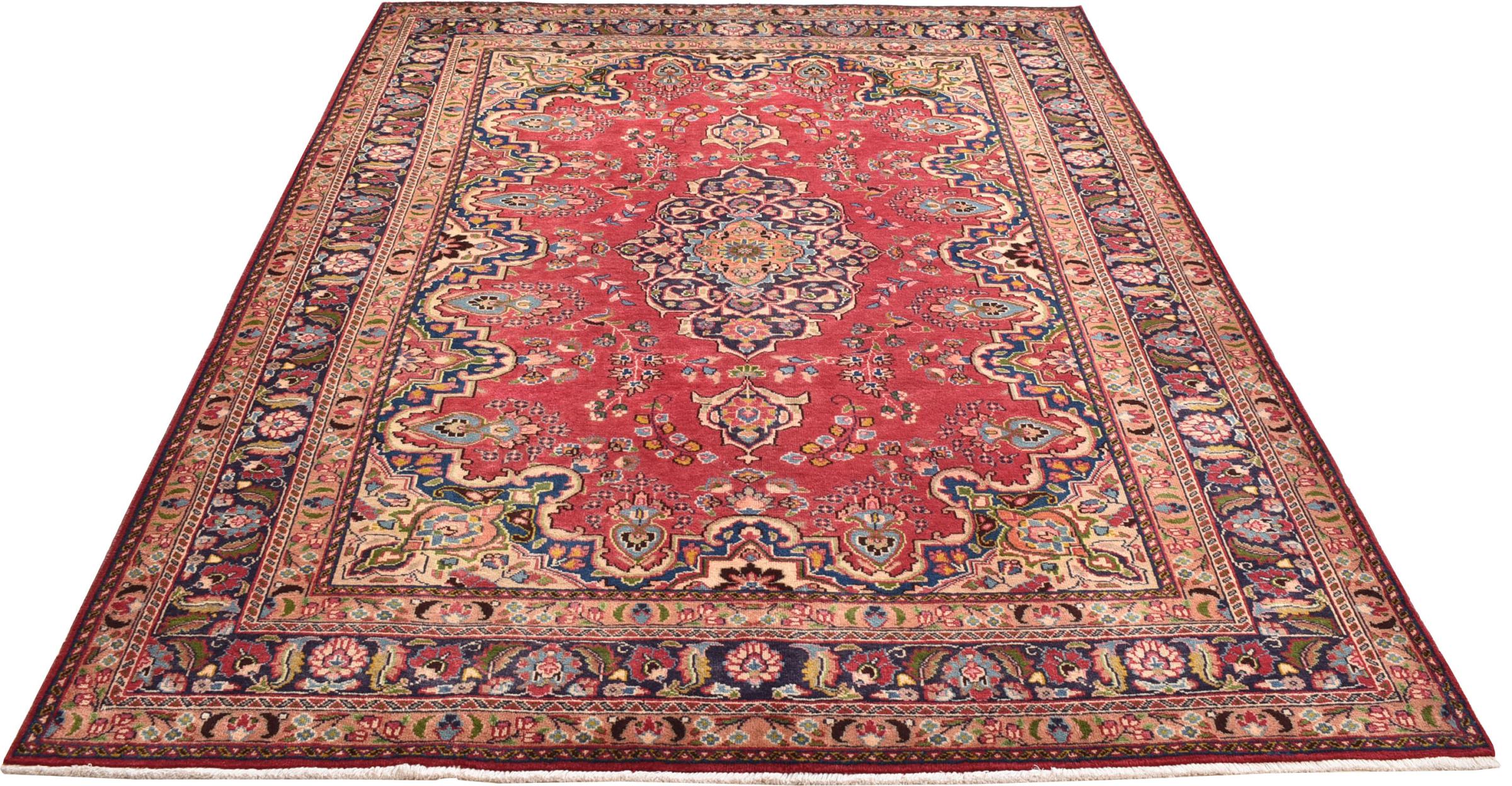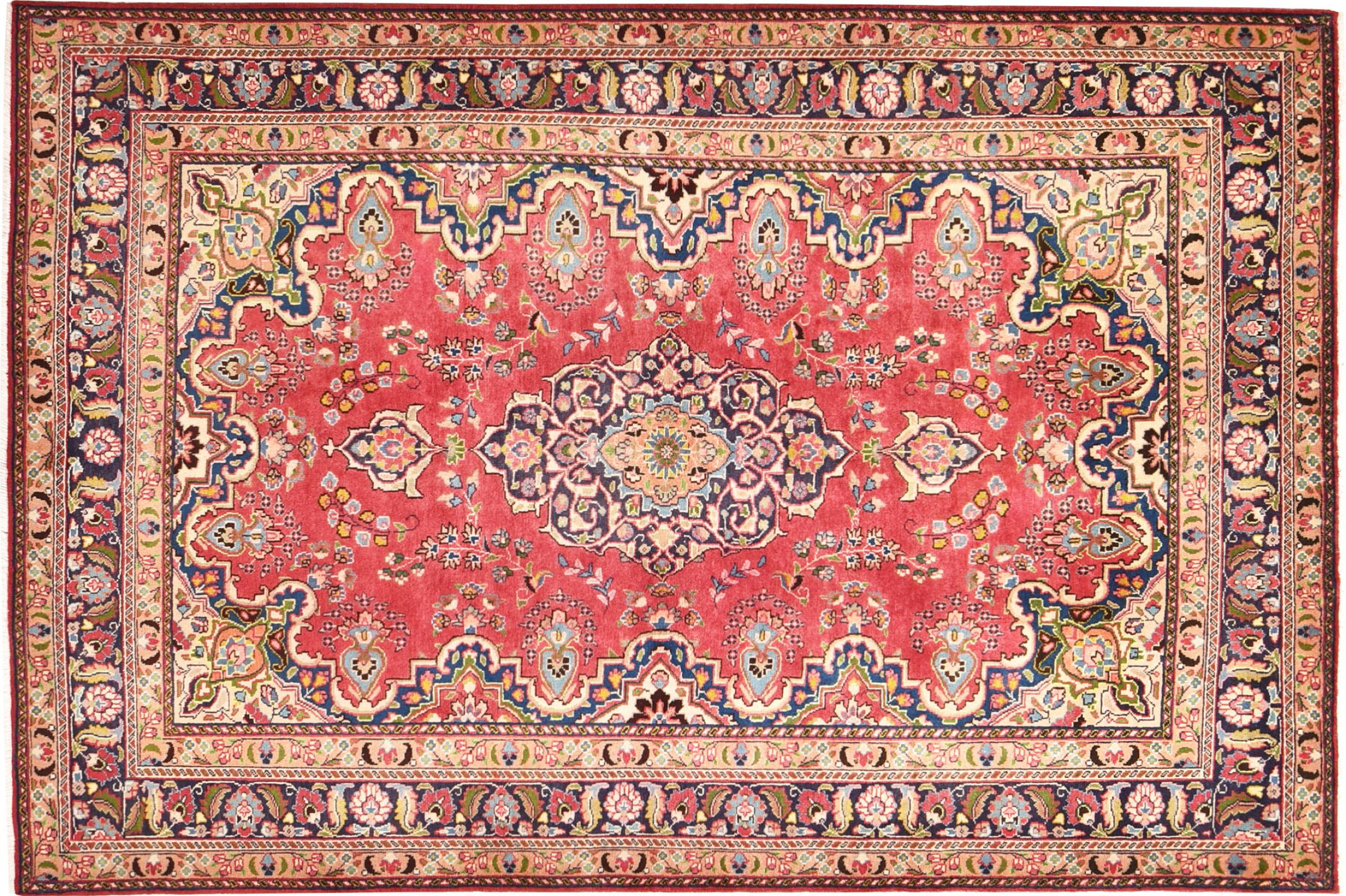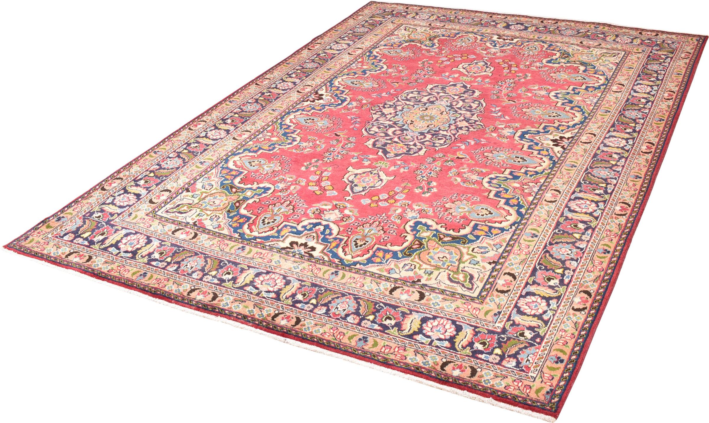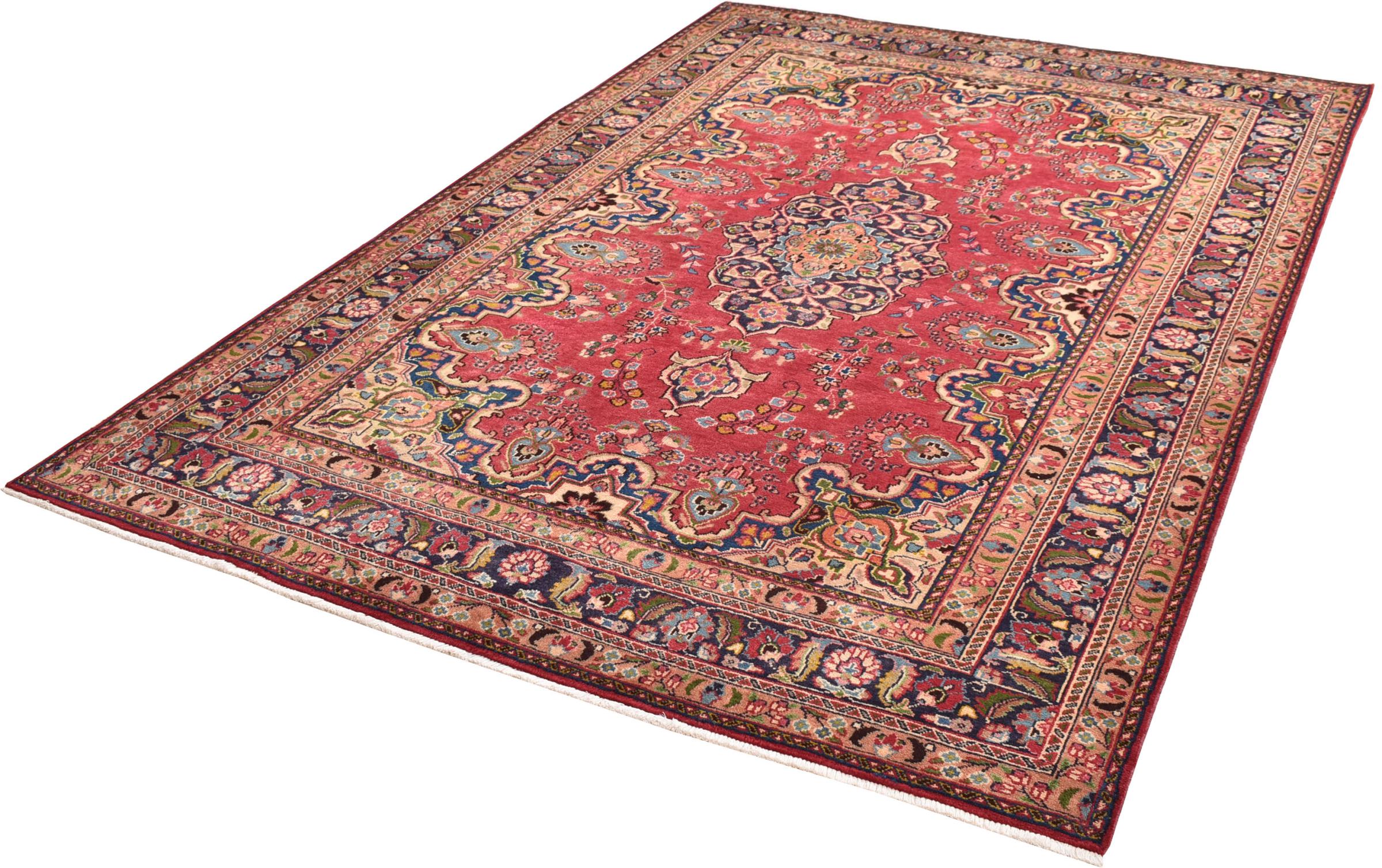 Nr.dywanu: 301051007612875 Wielkość: 292x195 cm Grubość: ok. 12 mm Gęstość tkania: 128 000 - 160 000 / m² Przetwarzanie: Ręcznie tkane Włosie: Wełna ręcznie przędzona Osnowa: Bawełna Pochodzenie: Persja / Iran Wiek: nowe Waga: ok. 20 kg Znany także jako Maschad, Meshed Ilość w magazynie: Unikalny - Tylko 1 na składzie
