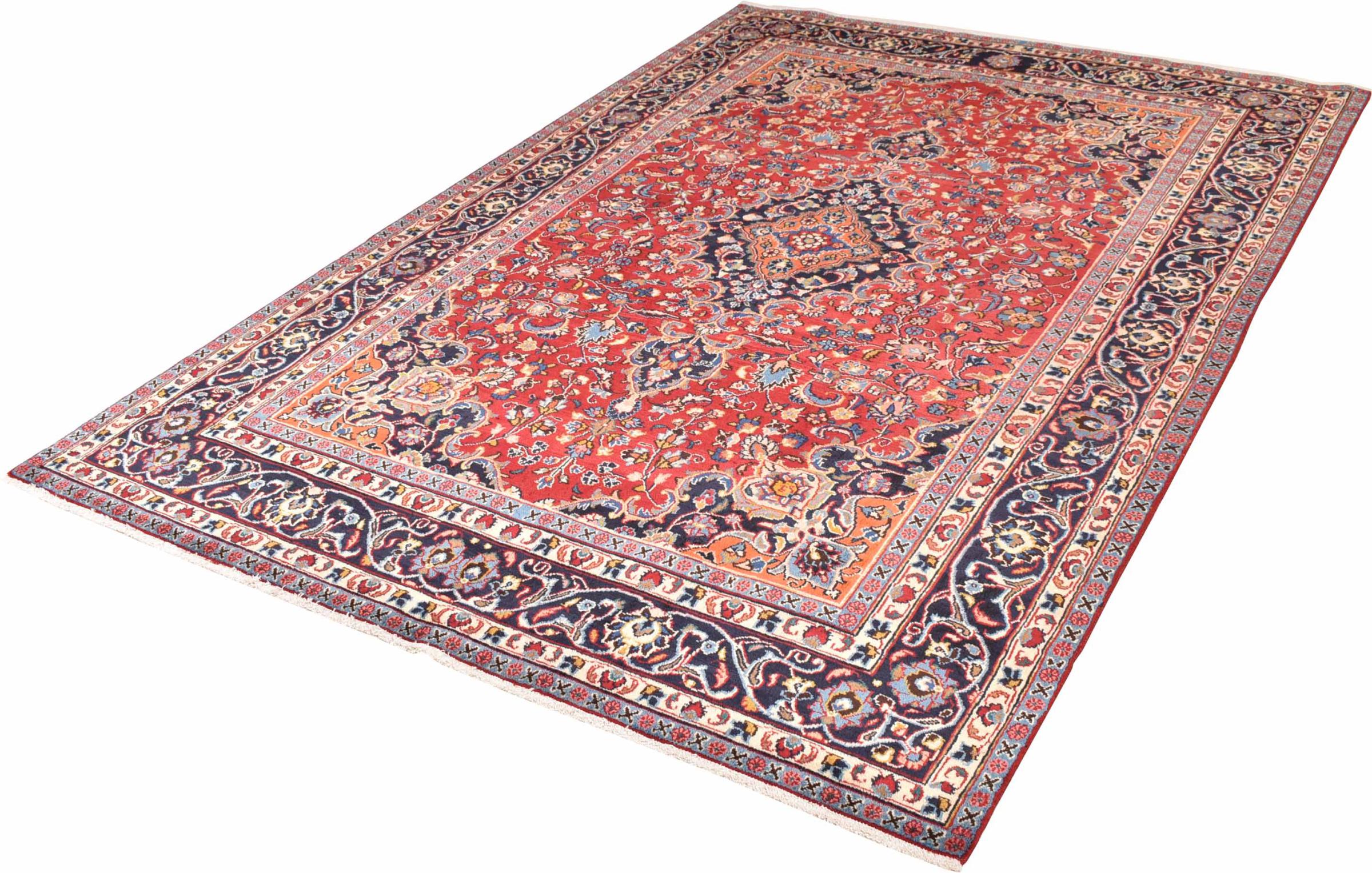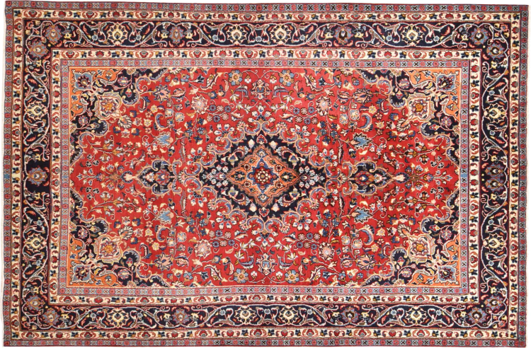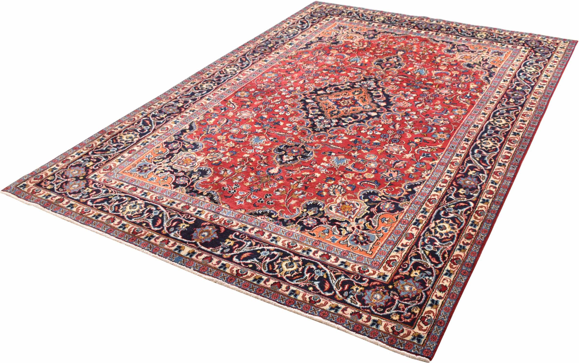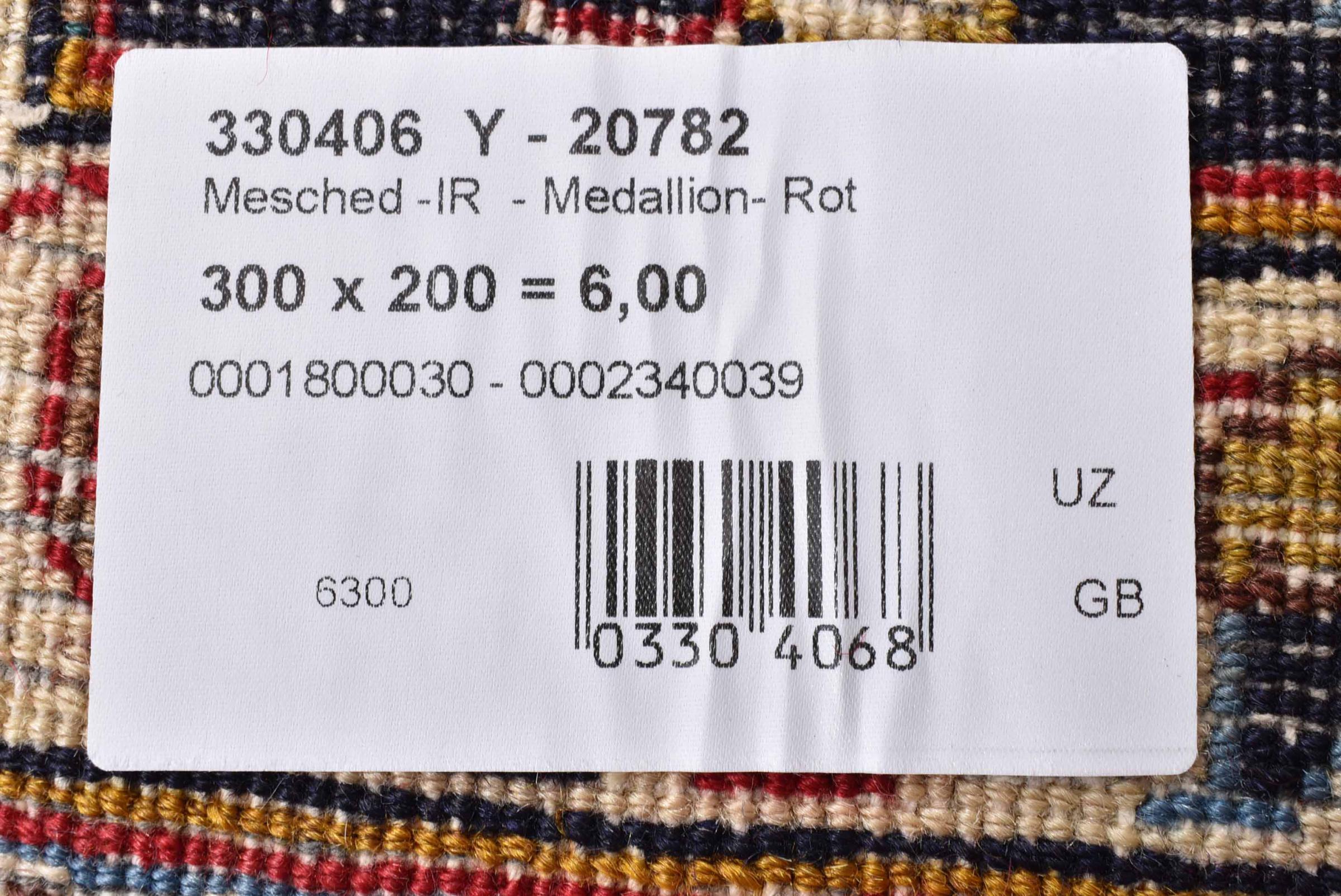 Nr.dywanu: 300857001723163 Wielkość: 299x199 cm Grubość: ok. 12 mm Gęstość tkania: 160 000 - 200 000 / m² Przetwarzanie: Ręcznie tkane Włosie: Wełna ręcznie przędzona Osnowa: Bawełna Pochodzenie: Persja / Iran Wiek: nowe Waga: ok. 21 kg Znany także jako Maschad, Meshed Ilość w magazynie: Unikalny - Tylko 1 na składzie