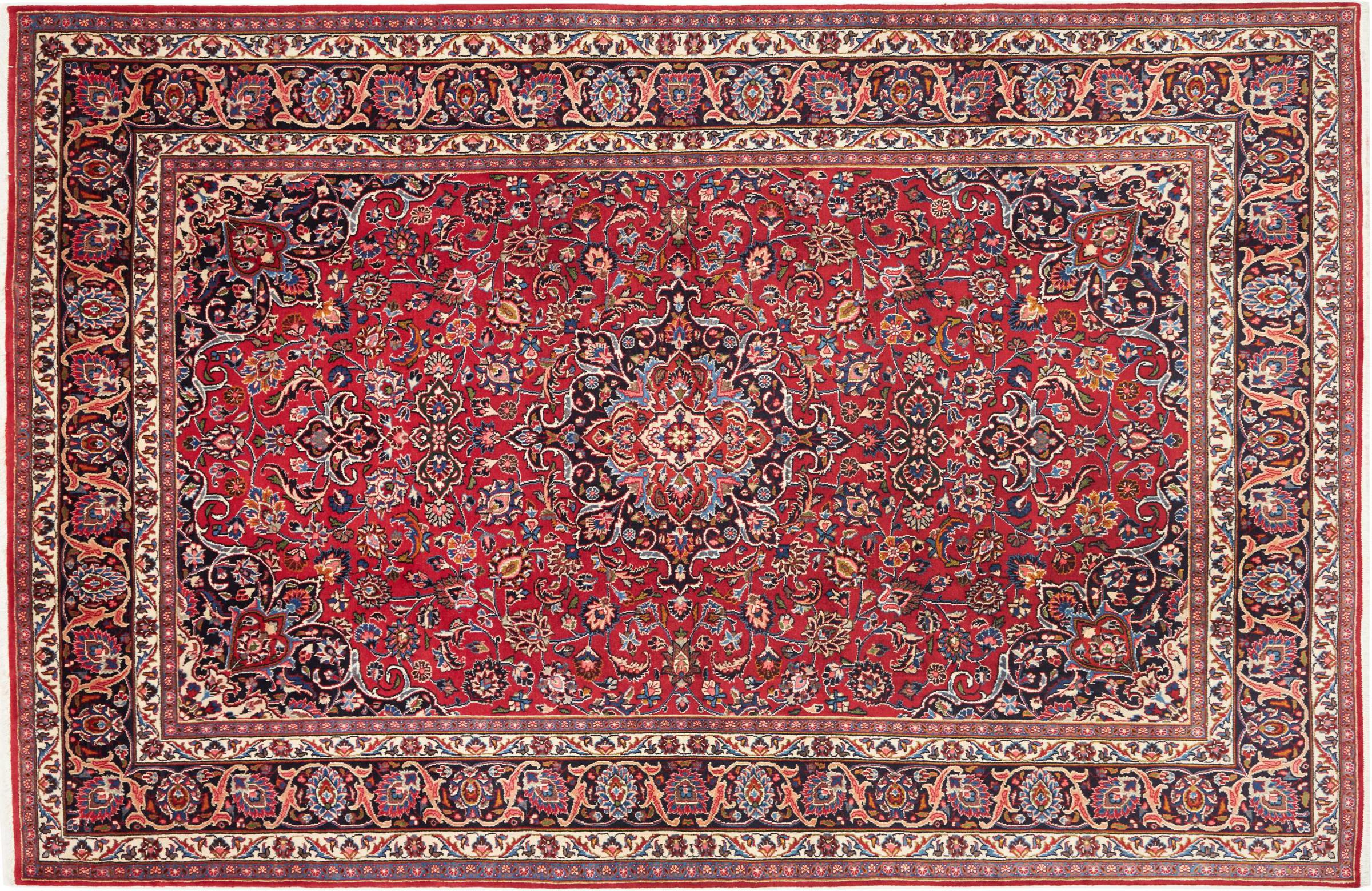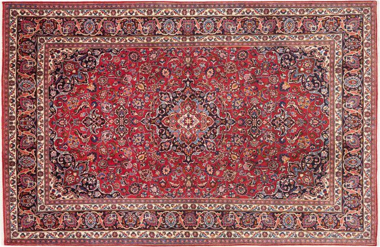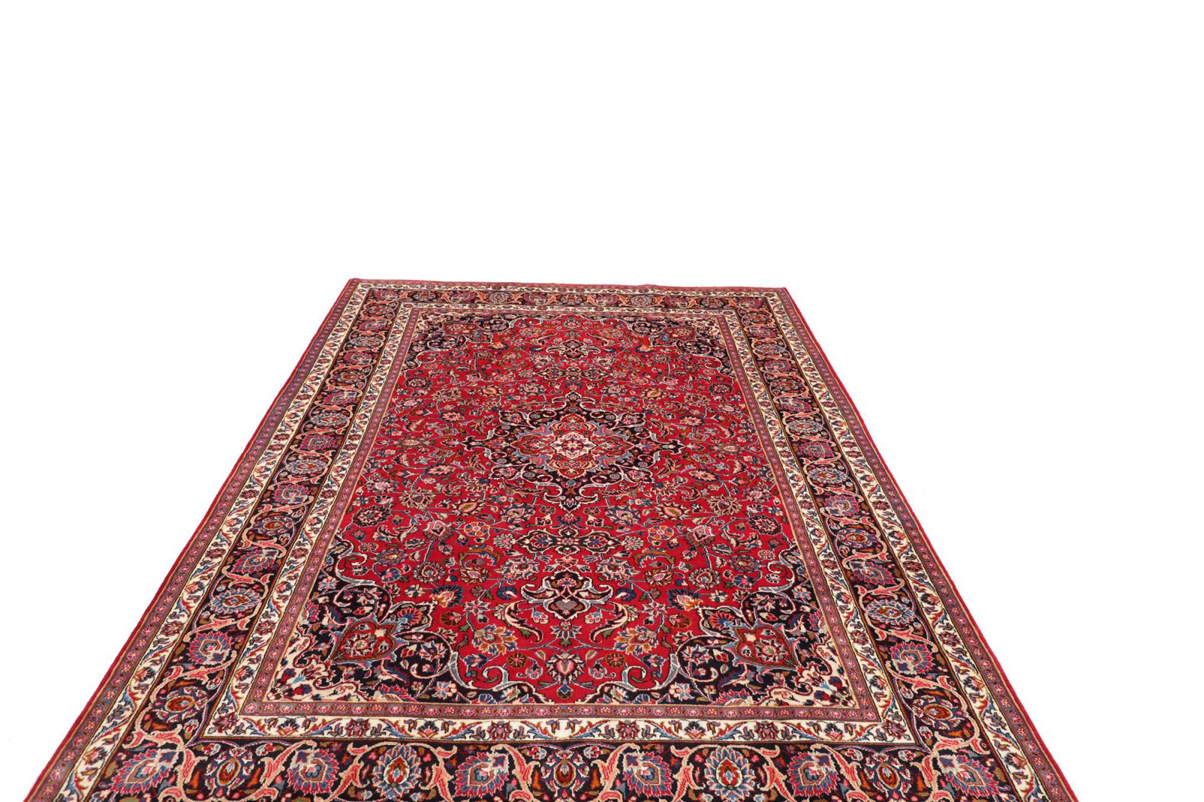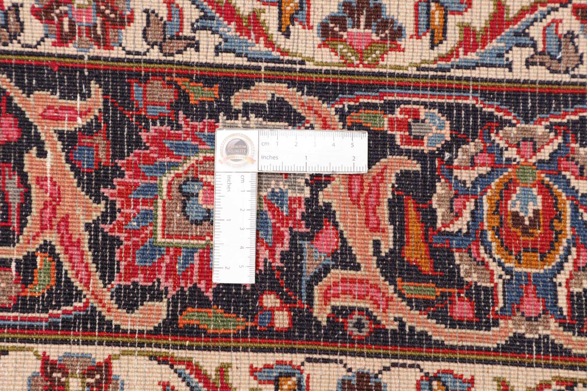 Nr.dywanu: 300759005771345 Wielkość: 301x192 cm Grubość: ok. 12 mm Gęstość tkania: 128 000 - 160 000 / m² Przetwarzanie: Ręcznie tkane Włosie: Wełna ręcznie przędzona Osnowa: Bawełna Pochodzenie: Persja / Iran Wiek: nowe Waga: ok. 20 kg Znany także jako Maschad, Meshed Ilość w magazynie: Unikalny - Tylko 1 na składzie