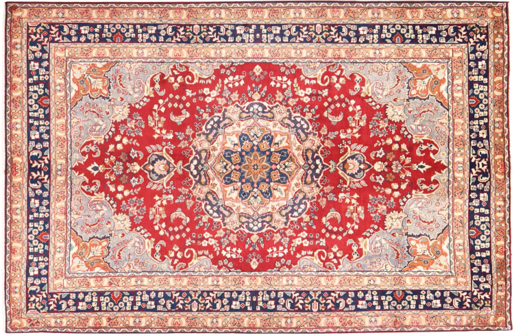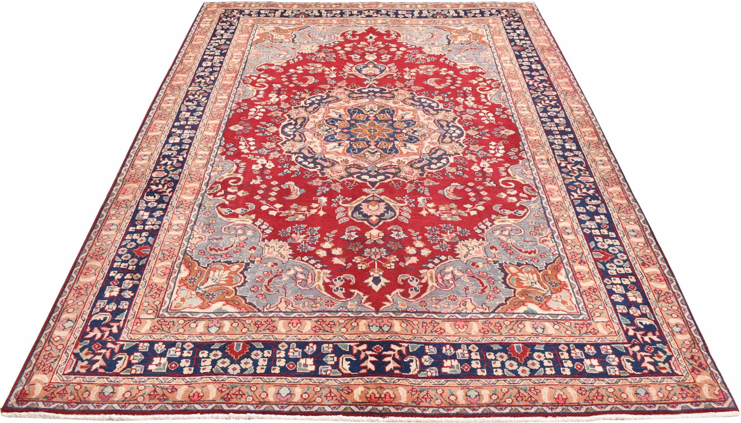 Nr.dywanu: 300803004974099 Wielkość: 301x198 cm Grubość: ok. 12 mm Gęstość tkania: 128 000 - 160 000 / m² Przetwarzanie: Ręcznie tkane Włosie: Wełna ręcznie przędzona Osnowa: Bawełna Pochodzenie: Persja / Iran Wiek: nowe Waga: ok. 21 kg Znany także jako Maschad, Meshed Ilość w magazynie: Unikalny - Tylko 1 na składzie