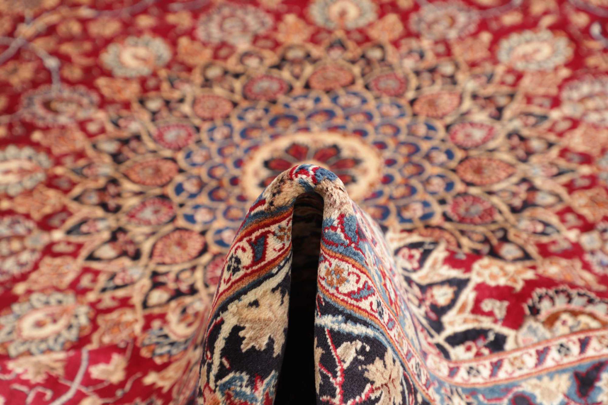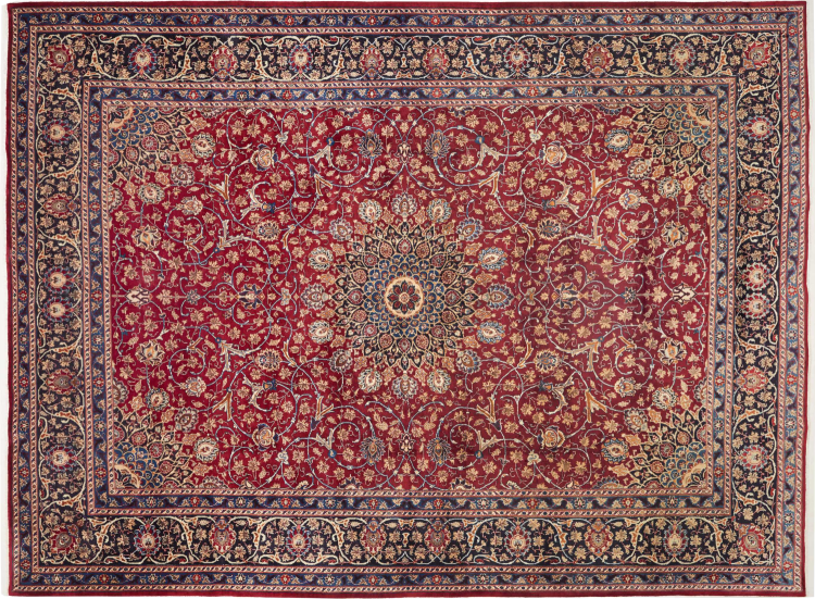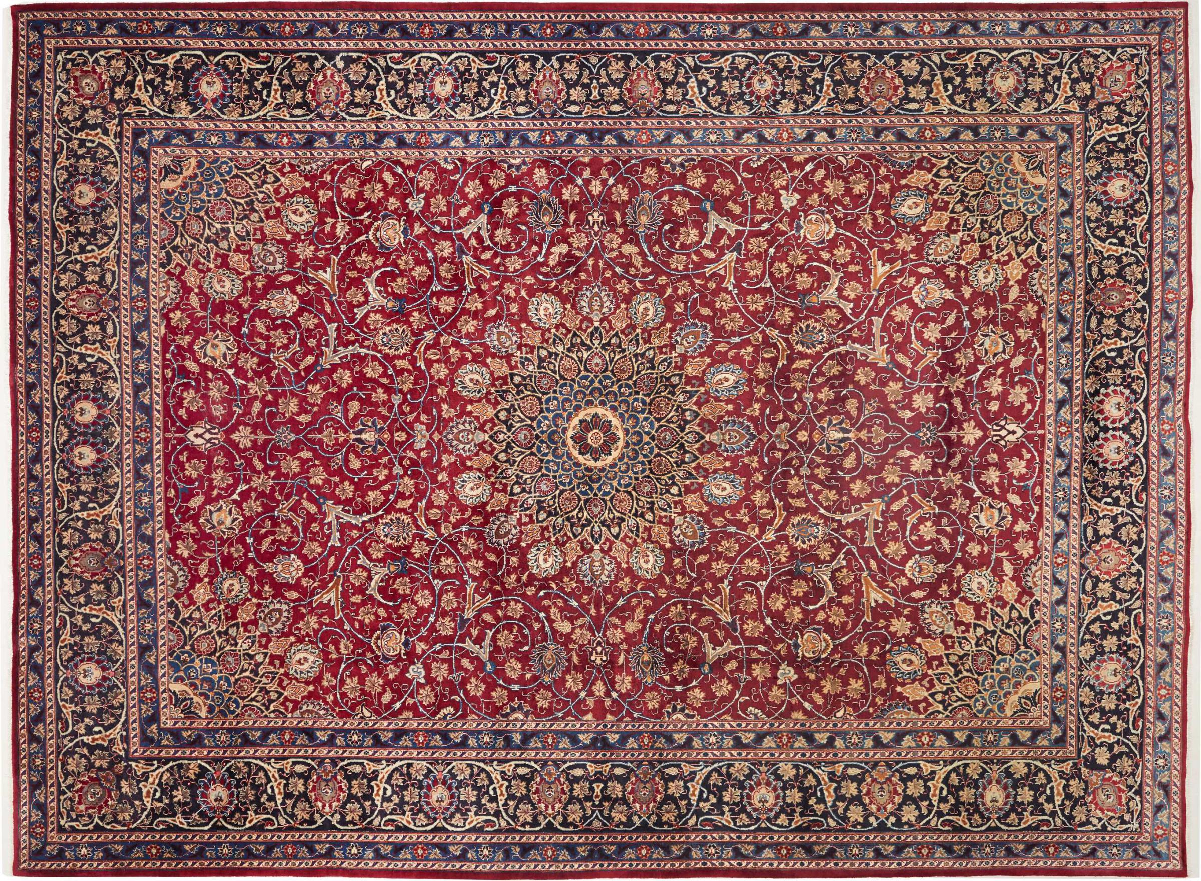 Nr.dywanu: 300649006353517 Wielkość: 404x297 cm Grubość: ok. 12 mm Gęstość tkania: 128 000 - 160 000 / m² Przetwarzanie: Ręcznie tkane Włosie: Wełna ręcznie przędzona Osnowa: Bawełna Pochodzenie: Persja / Iran Wiek: nowe Waga: ok. 42 kg Znany także jako Maschad, Meshed Ilość w magazynie: Unikalny - Tylko 1 na składzie
