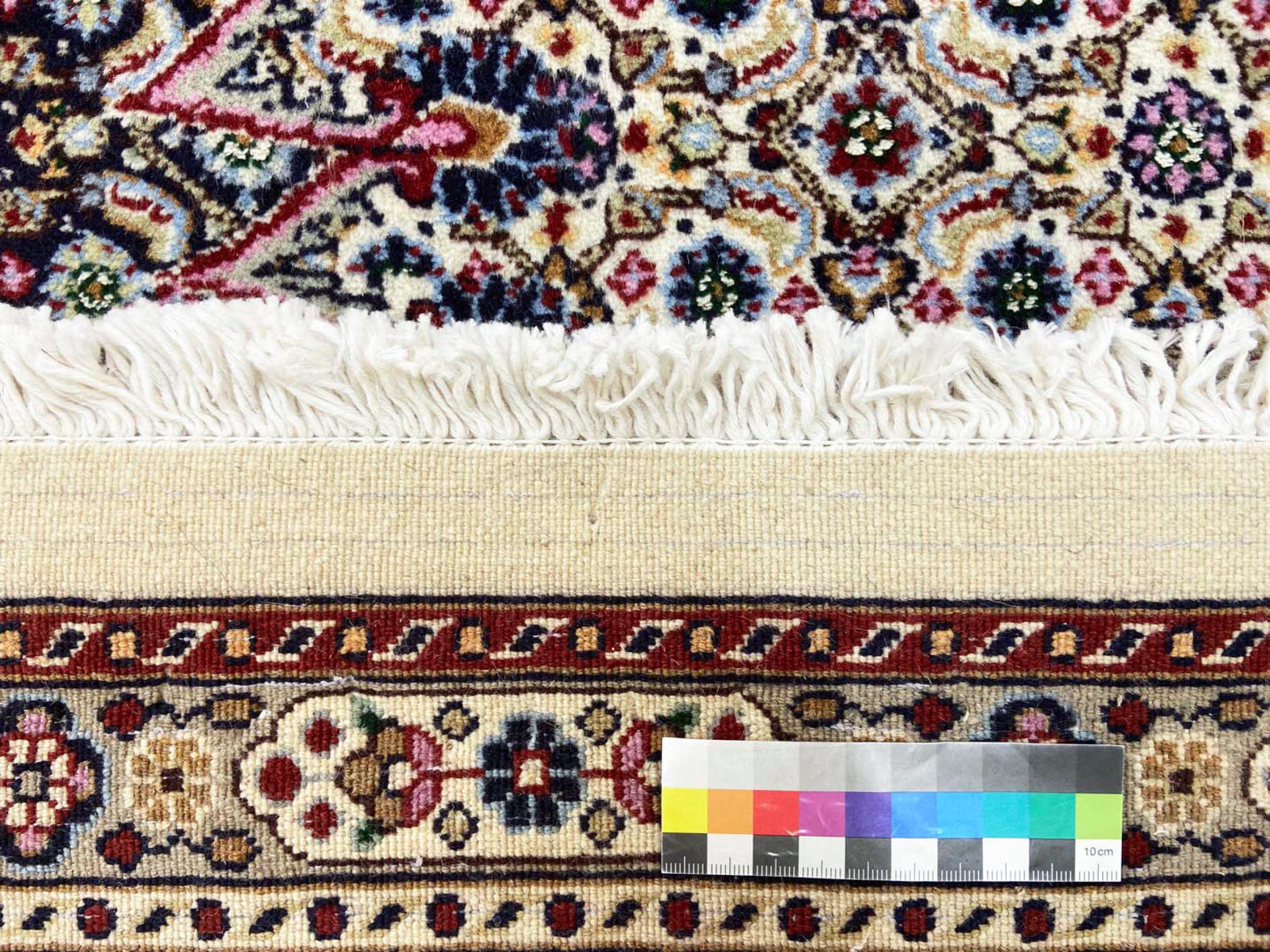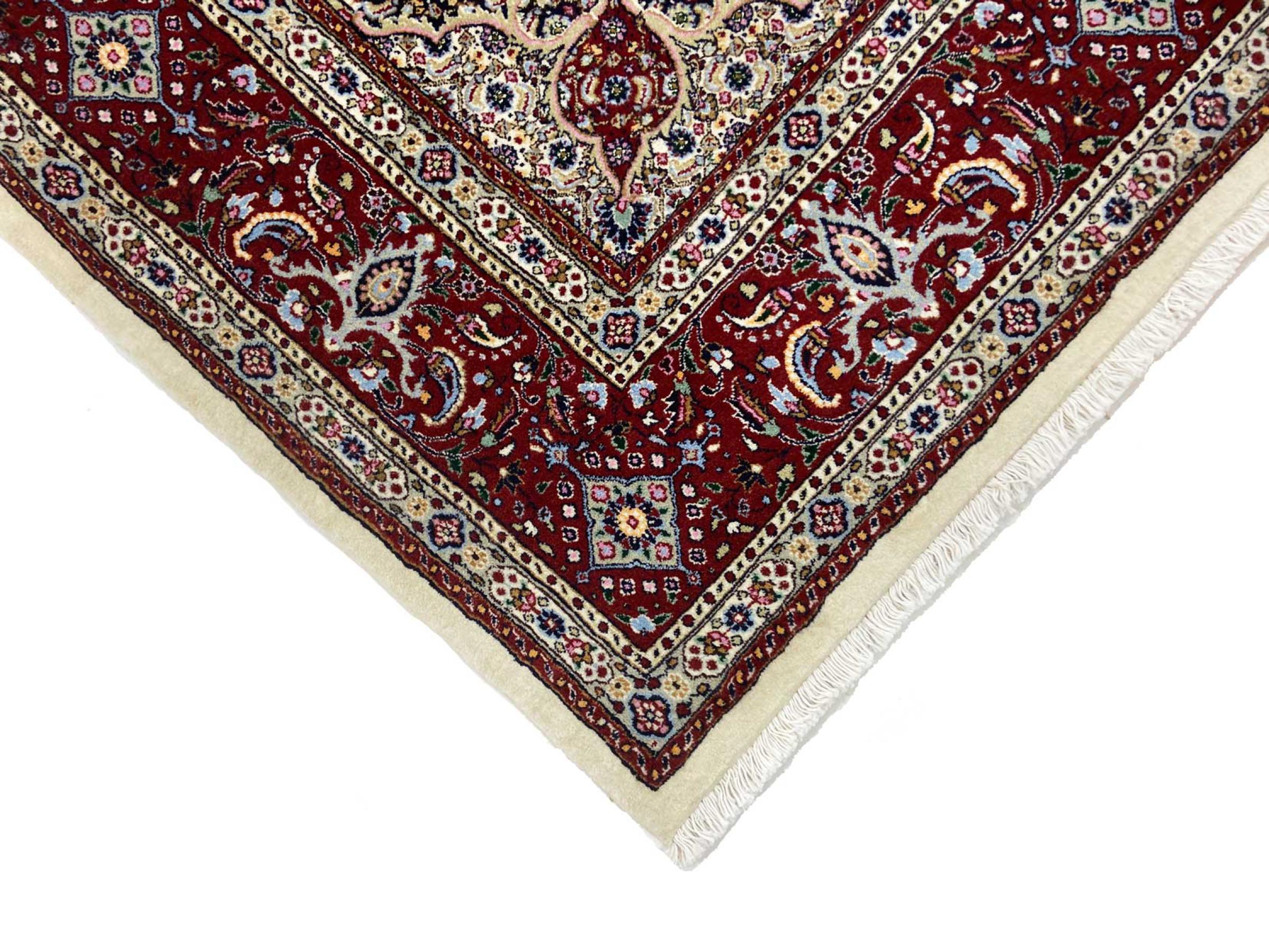 Nr.dywanu: 318854009040387 Wielkość: 244x182 cm Grubość: ok. 10 mm Gęstość tkania: 128 000 - 160 000 / m² Przetwarzanie: Ręcznie tkane Włosie: Wełna ręcznie przędzona Osnowa: Bawełna Pochodzenie: Persja / Iran Wiek: nowe Waga: ok. 16 kg Ilość w magazynie: Unikalny - Tylko 1 na składzie