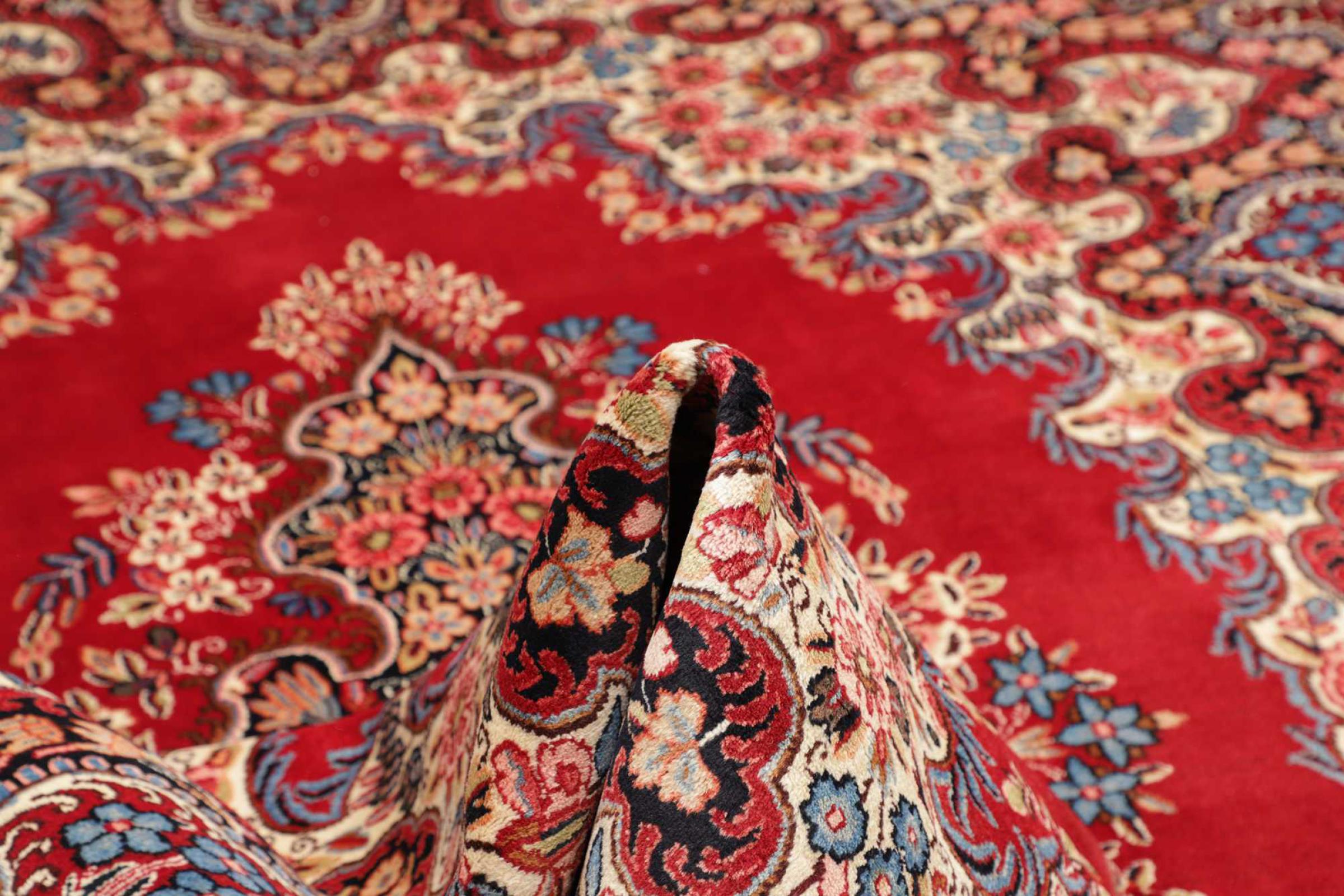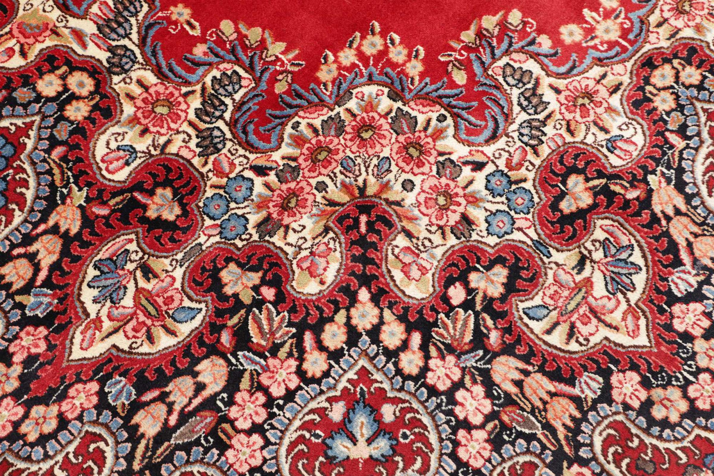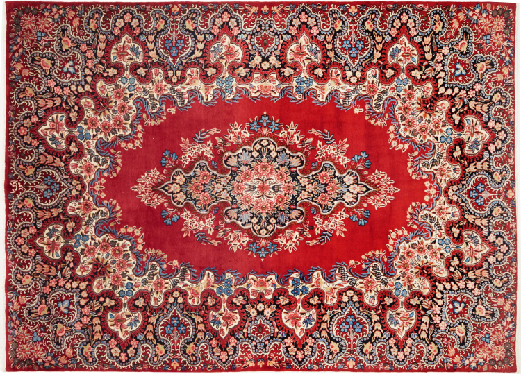 Nr.dywanu: 300710005996377 Wielkość: 308x221 cm Grubość: ok. 12 mm Gęstość tkania: 128 000 - 160 000 / m² Przetwarzanie: Ręcznie tkane Włosie: Wełna z jedwabiem Osnowa: Bawełna Pochodzenie: Persja / Iran Wiek: nowe Waga: ok. 24 kg Ilość w magazynie: Unikalny - Tylko 1 na składzie