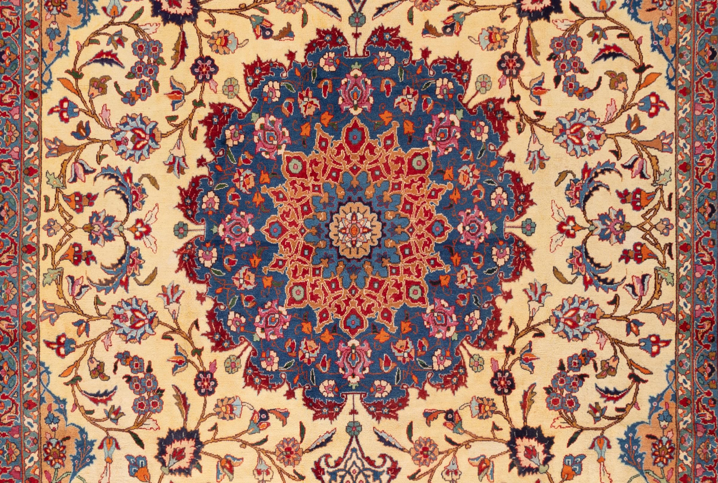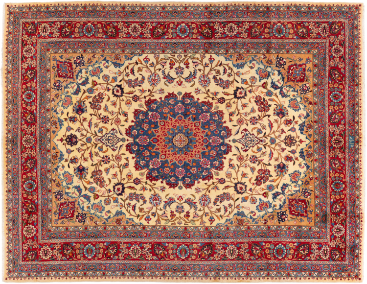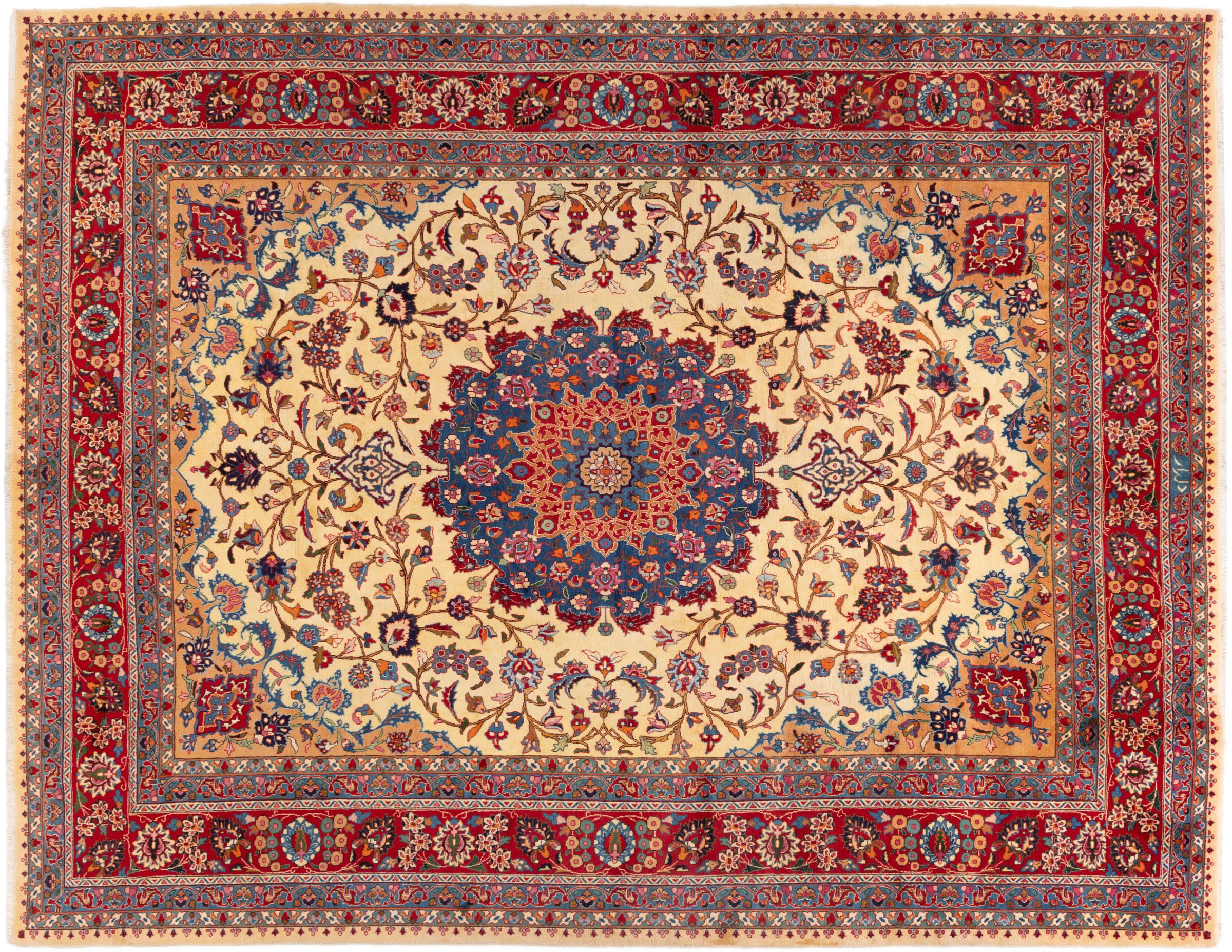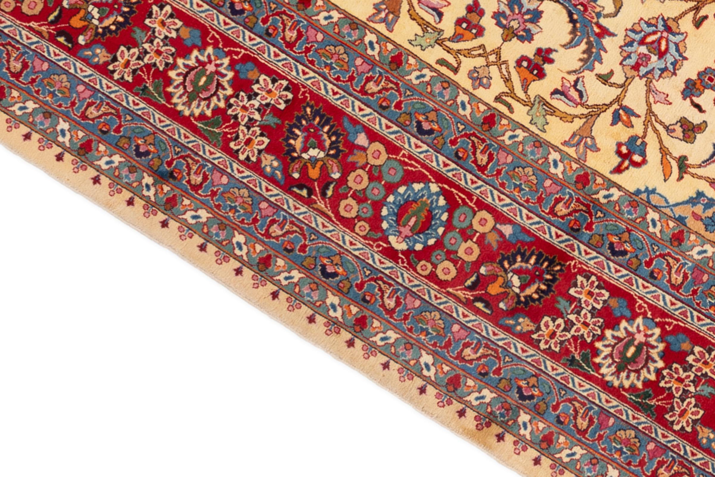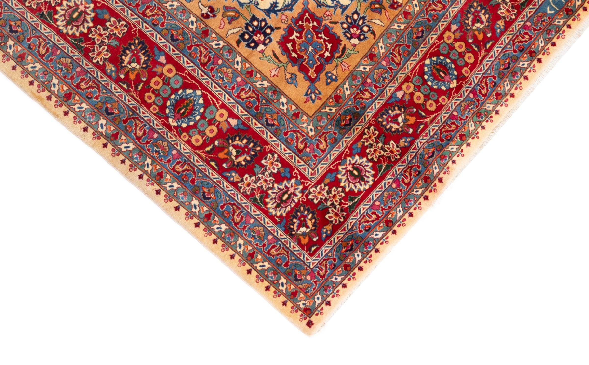 Nr.dywanu: 295117001821 Wielkość: 385x300 cm Grubość: ok. 12 mm Gęstość tkania: 200 000 - 250 000 / m² Przetwarzanie: Ręcznie tkane Włosie: Wełna ręcznie przędzona Osnowa: Bawełna Pochodzenie: Persja / Iran Wiek: nowe Waga: ok. 40 kg Ilość w magazynie: Unikalny - Tylko 1 na składzie