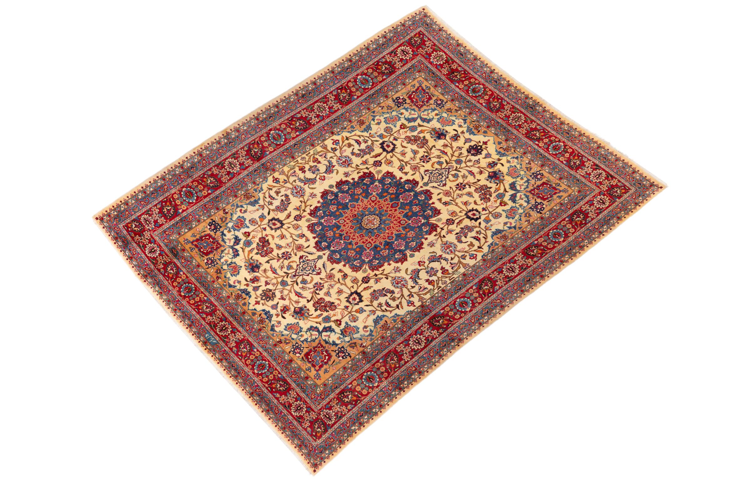 Dywan ten wykonany jest z ręcznie formowanej wełny owczej najwyższej jakości. Zwłaszcza w Iranie (była Persja), Afganistanie i Pakistanie wełna jest nadal ręcznie skręcana, zanim rozpocznie się faktyczne wiązanie dywanu. Wełna sprawdziła się jako naturalny i niezwykle wytrzymały materiał na przestrzeni wieków. Ma m.in. właściwości antybrudzące i termoizolacyjne. Jednocześnie wełna jest nieporównywalnie miękka i ma naturalny połysk.