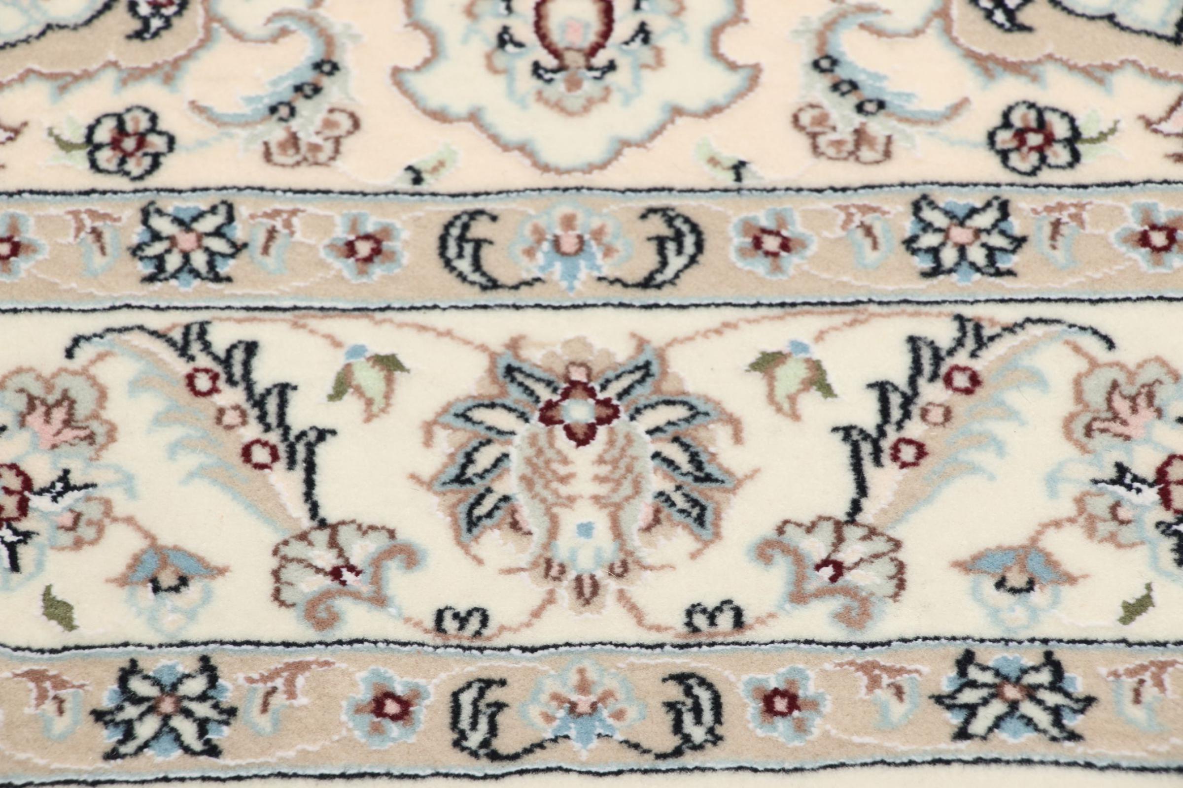 Nr.dywanu: 309340003498123 Wielkość: 161x109 cm Grubość: ok. 6 mm Gęstość tkania: 720 000 / m² Przetwarzanie: Ręcznie tkane Włosie: Wełna z jedwabiem Osnowa: Bawełna Pochodzenie: Persja / Iran Wiek: nowe Waga: ok. 4 kg Ilość w magazynie: Unikalny - Tylko 1 na składzie