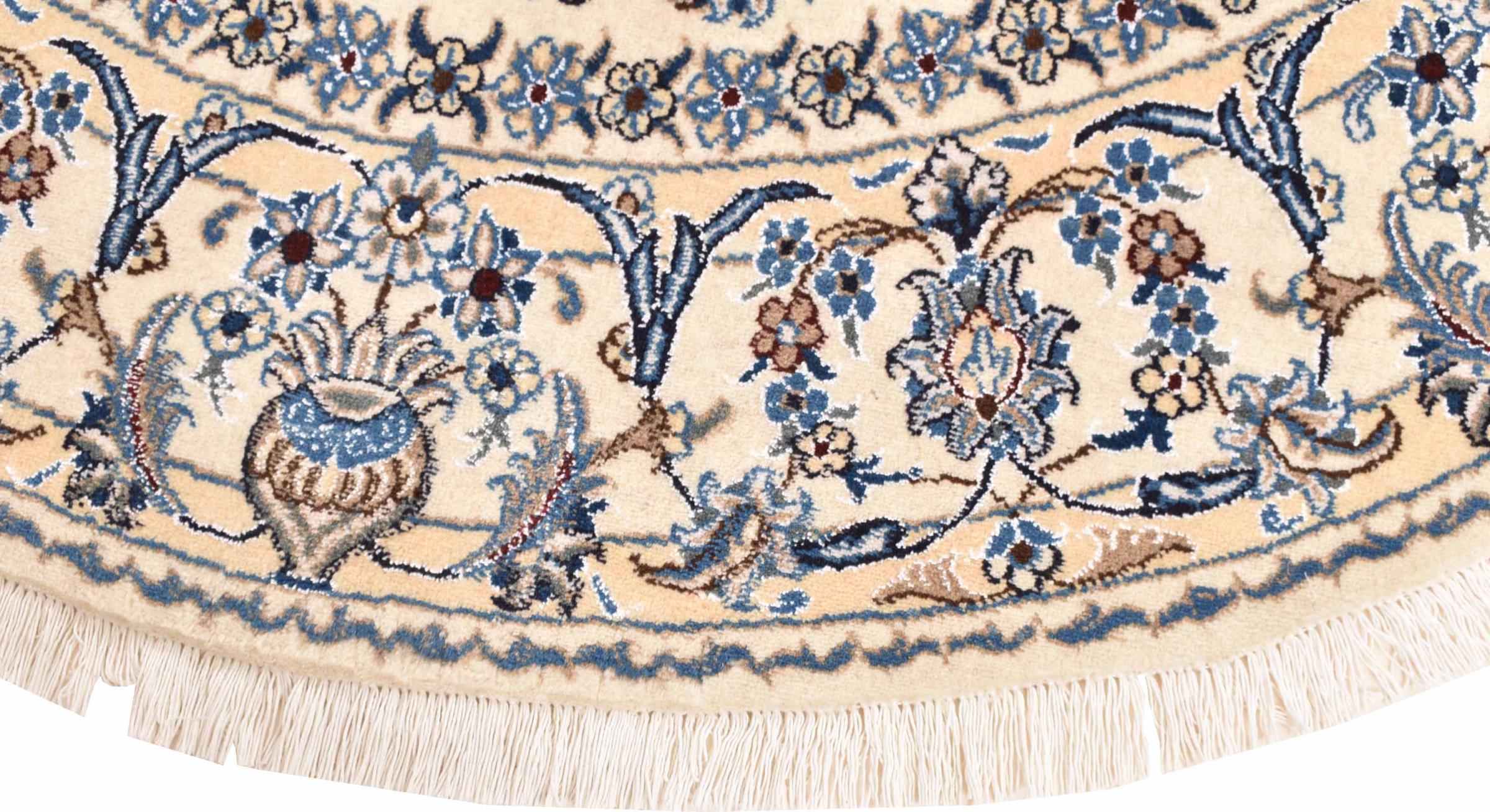 Nr.dywanu: 309841002277565 Wielkość: 199x199 cm Grubość: ok. 12 mm Gęstość tkania: 200 000 - 250 000 / m² Przetwarzanie: Ręcznie tkane Włosie: Wełna z jedwabiem Osnowa: Bawełna Pochodzenie: Persja / Iran Wiek: nowe Waga: ok. 14 kg Ilość w magazynie: Unikalny - Tylko 1 na składzie