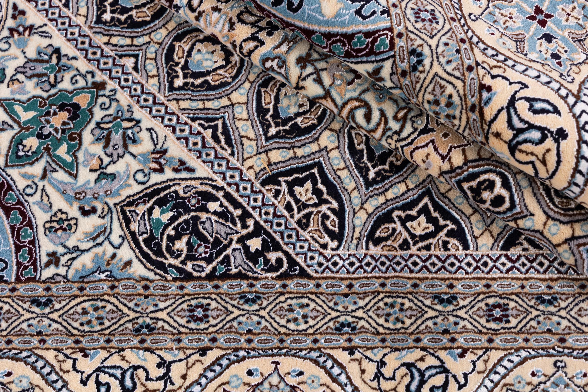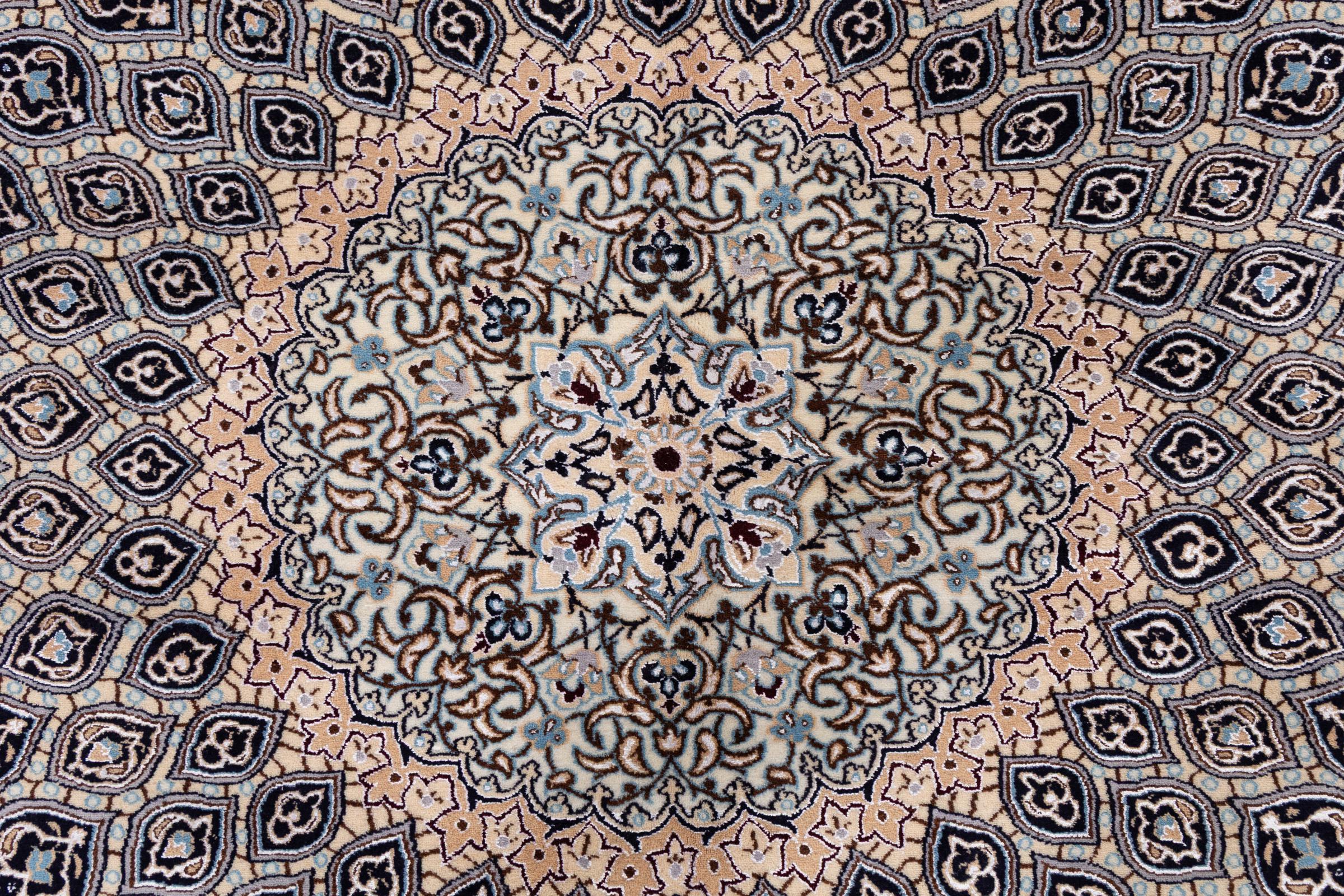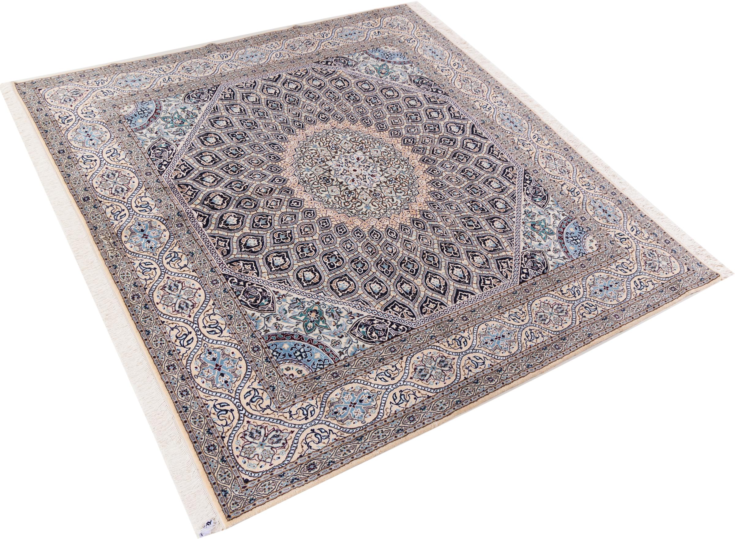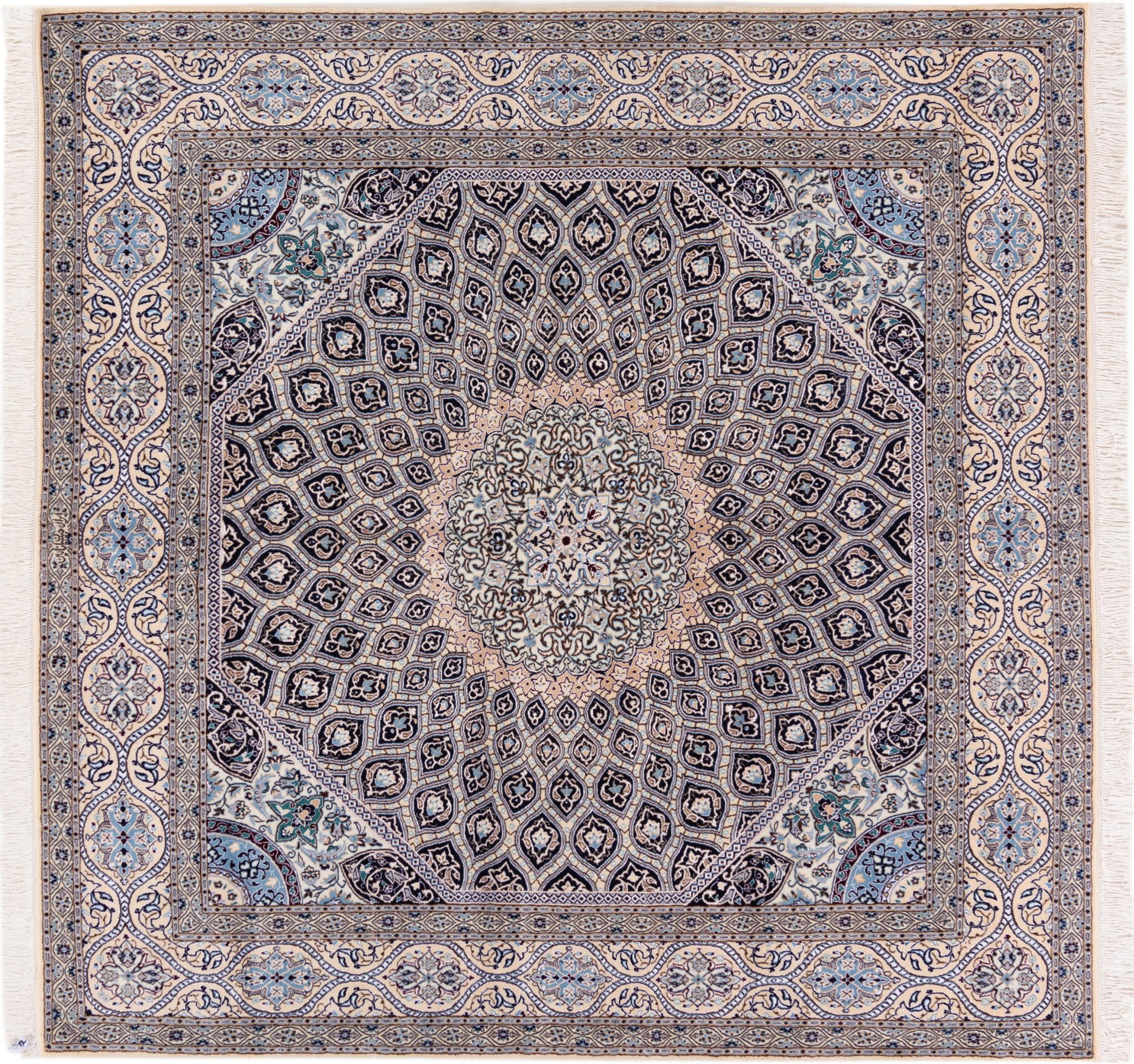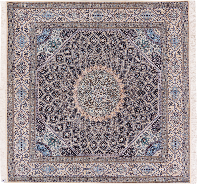 Nr.dywanu: 3069120021712 Wielkość: 200x200 cm Grubość: ok. 6 mm Gęstość tkania: 810 000 / m² Przetwarzanie: Ręcznie tkane Włosie: Wełna z jedwabiem Osnowa: Bawełna Pochodzenie: Persja / Iran Wiek: nowe Waga: ok. 10 kg Ilość w magazynie: Unikalny - Tylko 1 na składzie