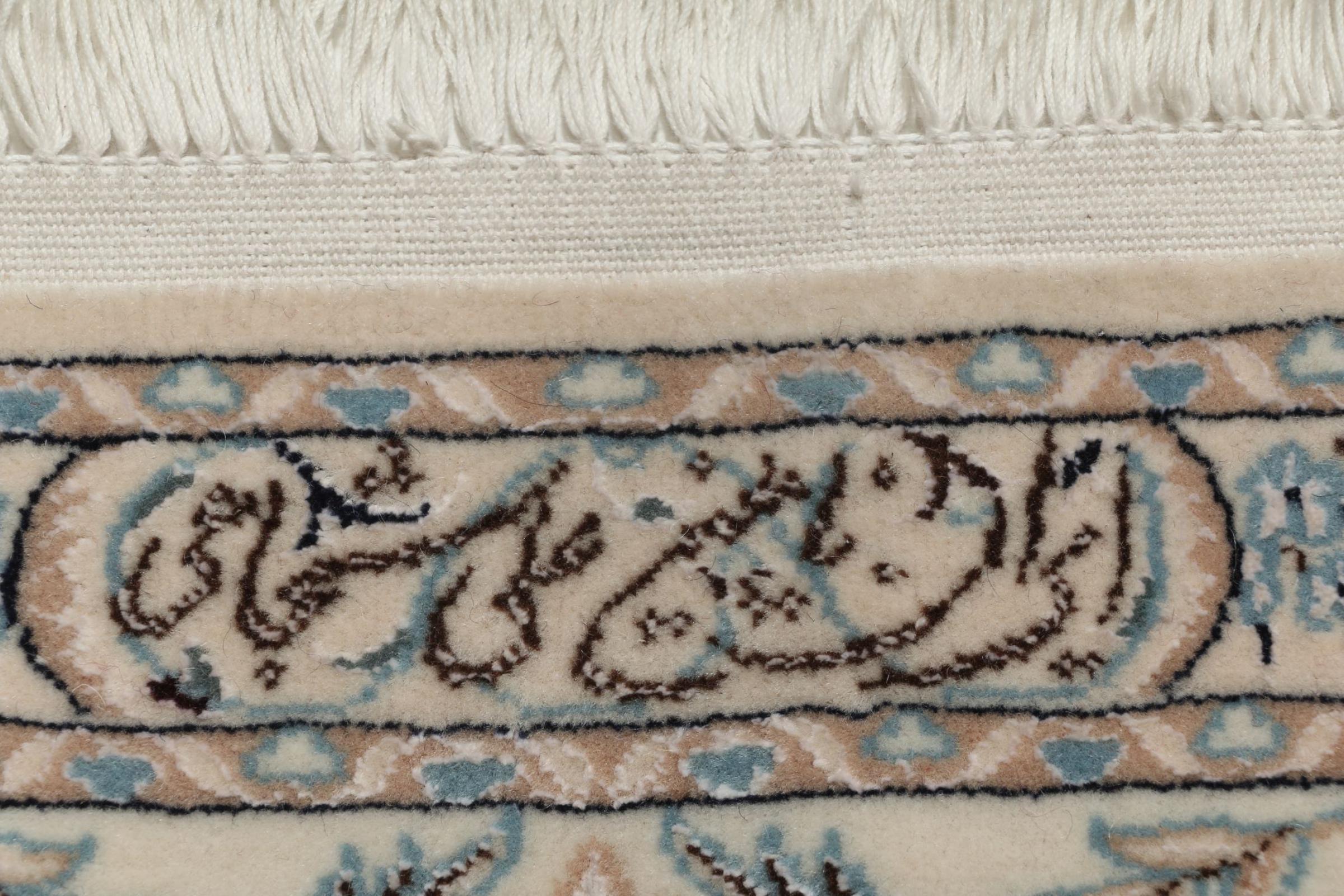 Nr.dywanu: 309114005214354 Wielkość: 224x152 cm Grubość: ok. 6 mm Gęstość tkania: 720 000 / m² Przetwarzanie: Ręcznie tkane Włosie: Wełna z jedwabiem Osnowa: Bawełna Pochodzenie: Persja / Iran Wiek: nowe Waga: ok. 9 kg Ilość w magazynie: Unikalny - Tylko 1 na składzie