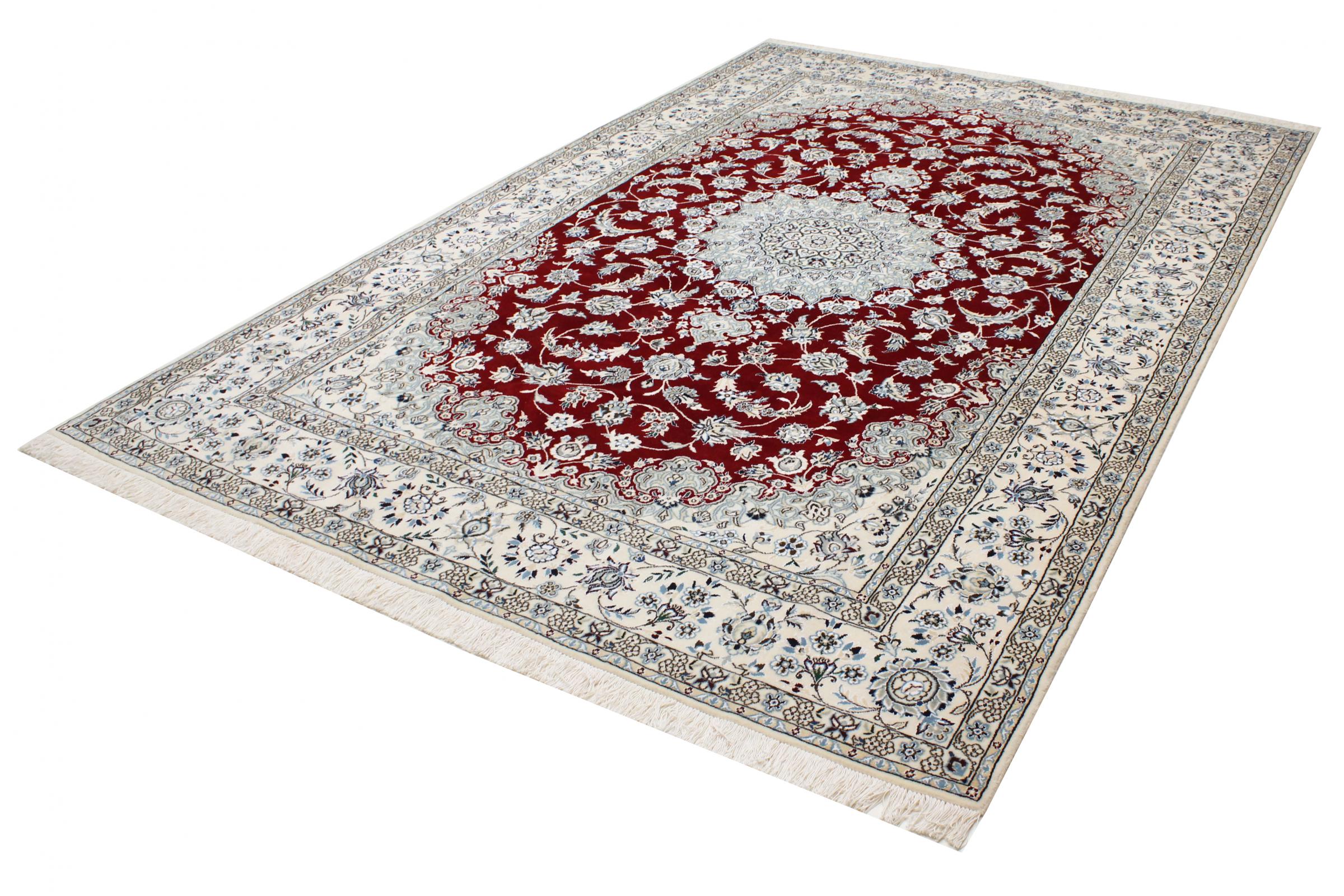 Nr.dywanu: 2817300202631 Wielkość: 297x200 cm Grubość: ok. 8 mm Gęstość tkania: 410 000 - 450 000 / m² Przetwarzanie: Ręcznie tkane Włosie: Wełna z jedwabiem Osnowa: Bawełna Pochodzenie: Persja / Iran Wiek: nowe Waga: ok. 21 kg Ilość w magazynie: Unikalny - Tylko 1 na składzie