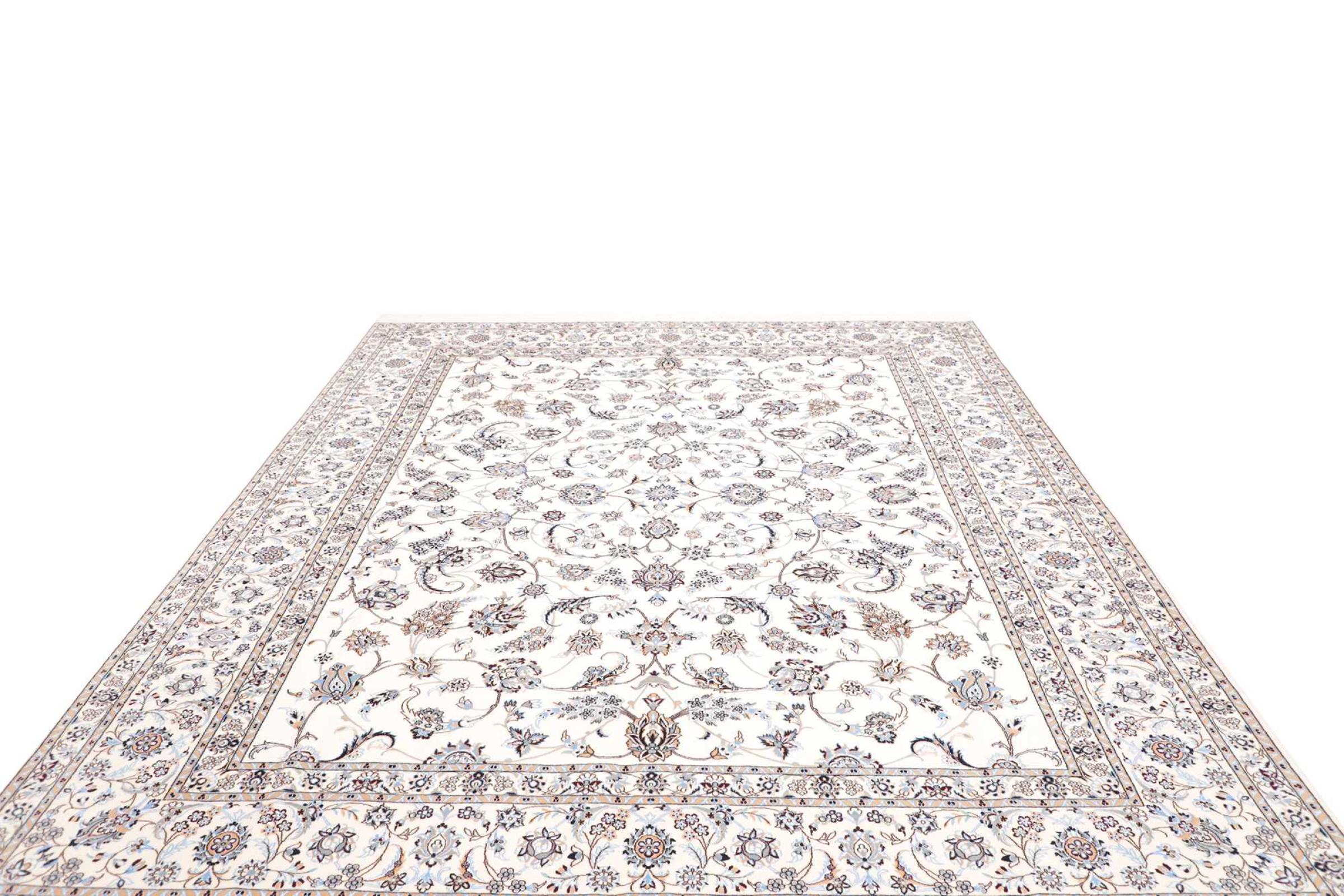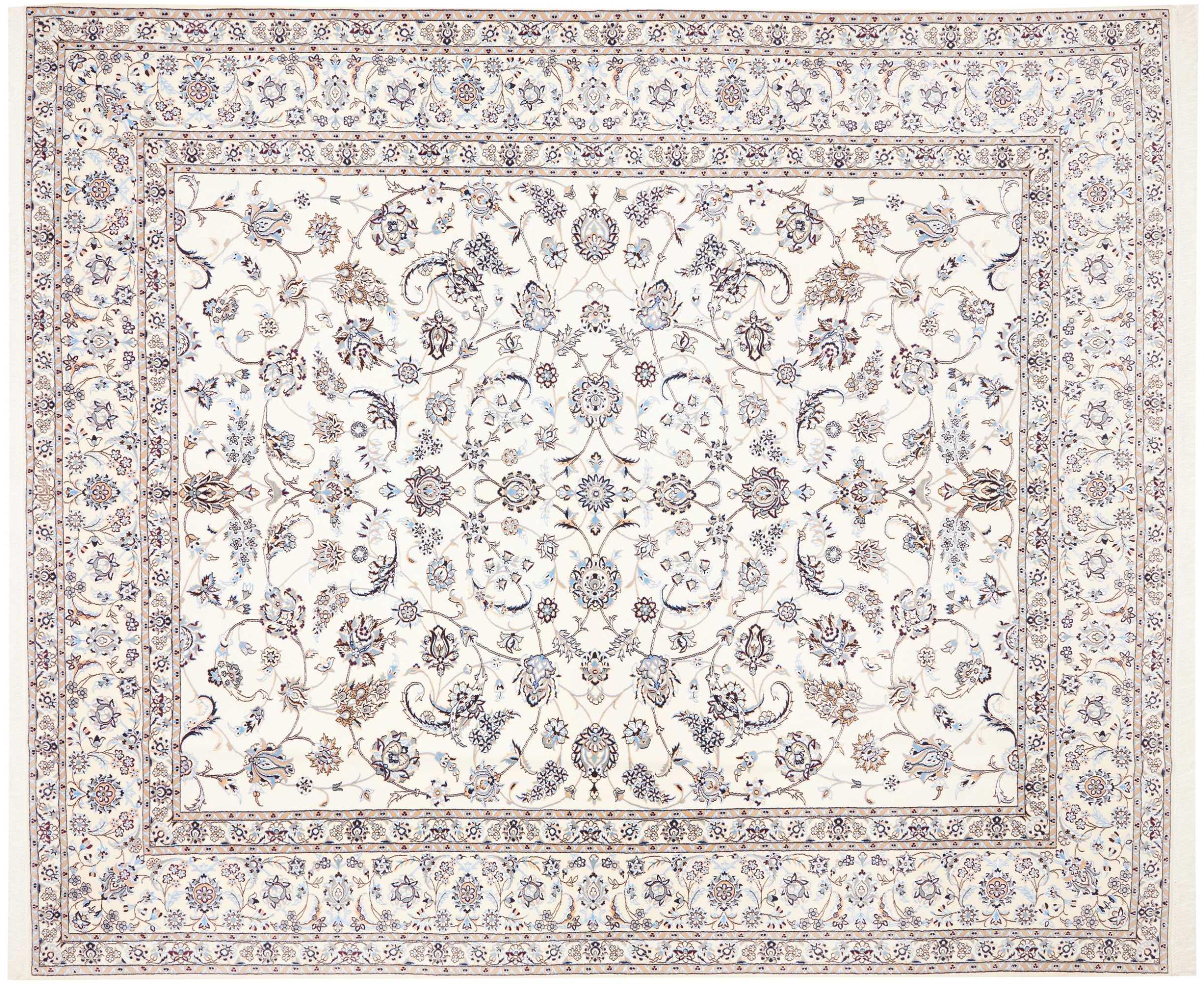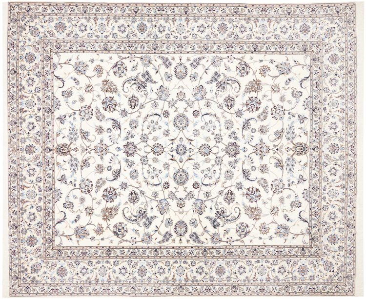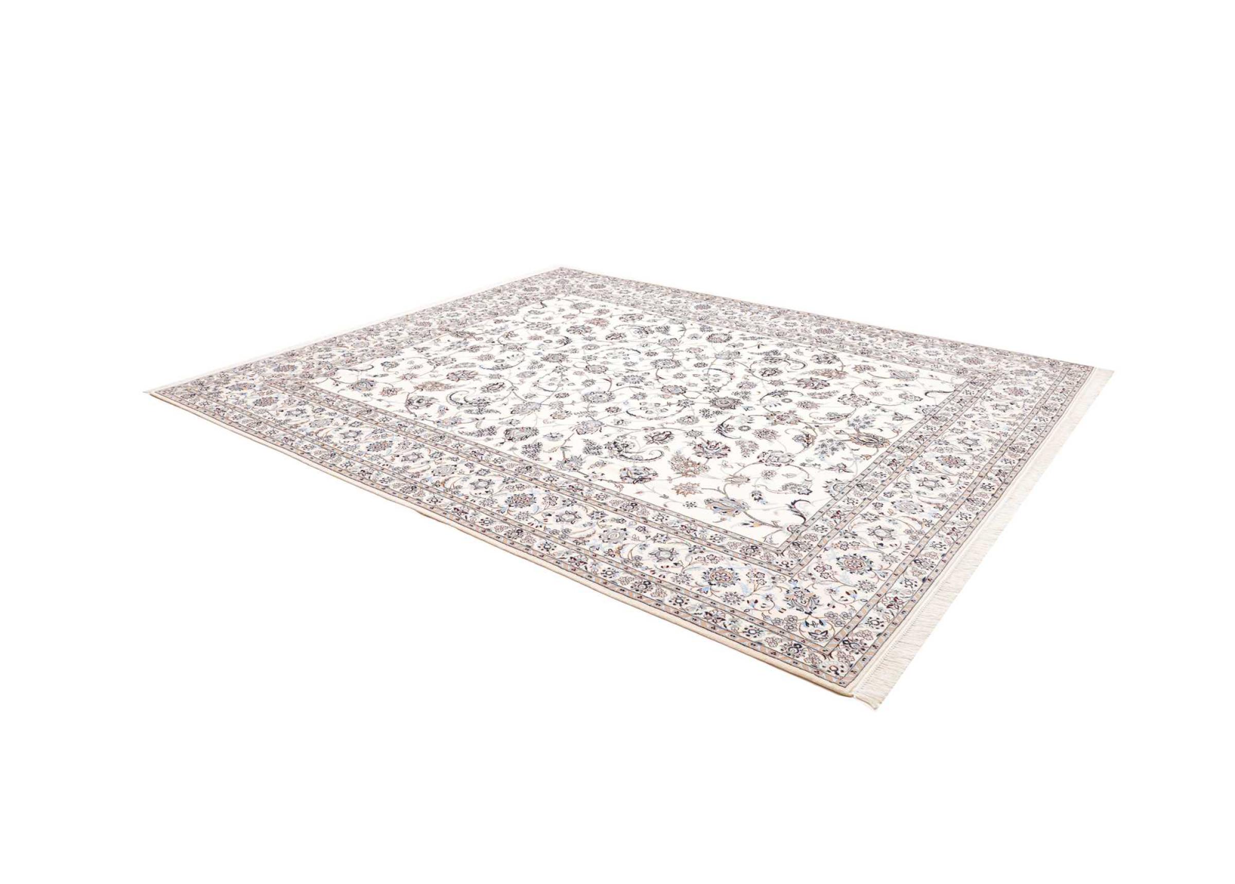 Nr.dywanu: 300785005060143 Wielkość: 308x256 cm Grubość: ok. 6 mm Gęstość tkania: 680 000 - 850 000 / m² Przetwarzanie: Ręcznie tkane Włosie: Wełna z jedwabiem Osnowa: Bawełna Pochodzenie: Persja / Iran Wiek: nowe Waga: ok. 20 kg Ilość w magazynie: Unikalny - Tylko 1 na składzie