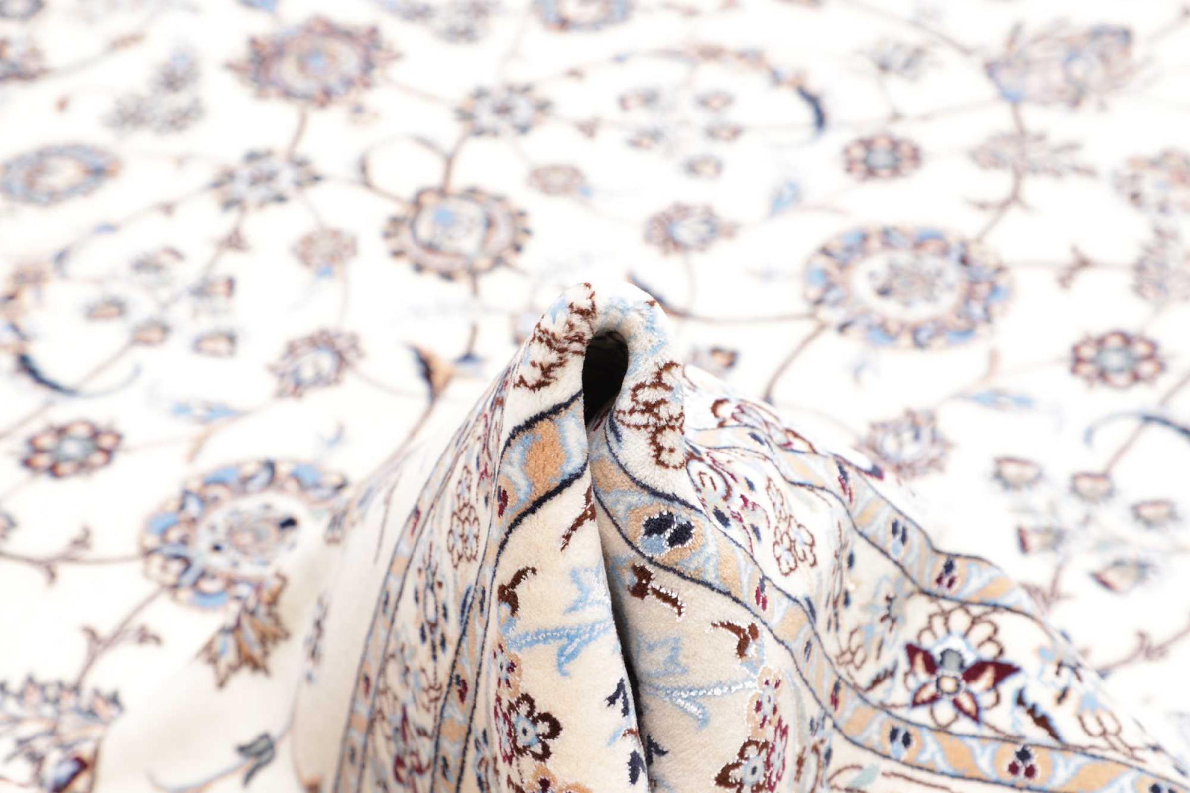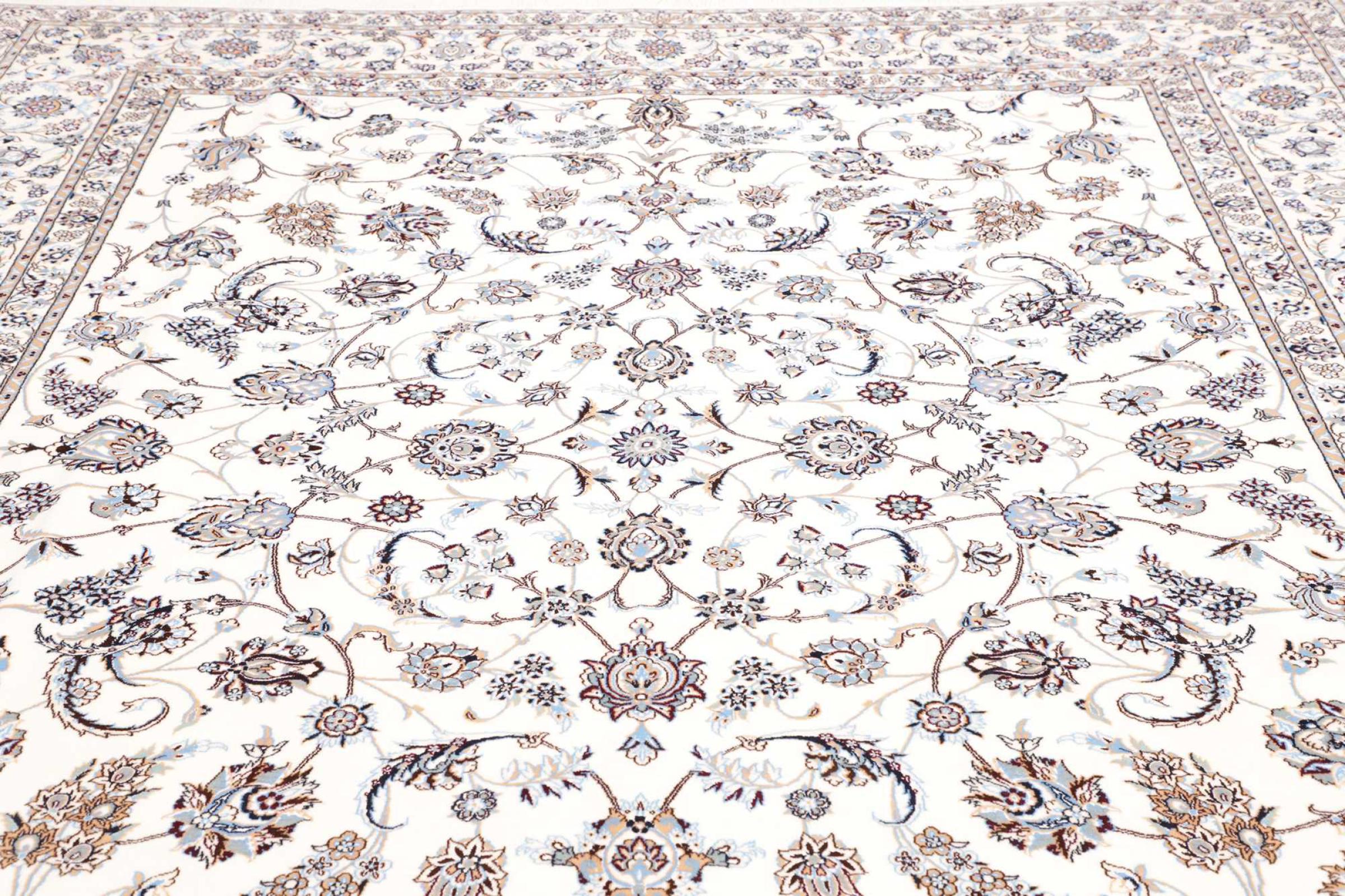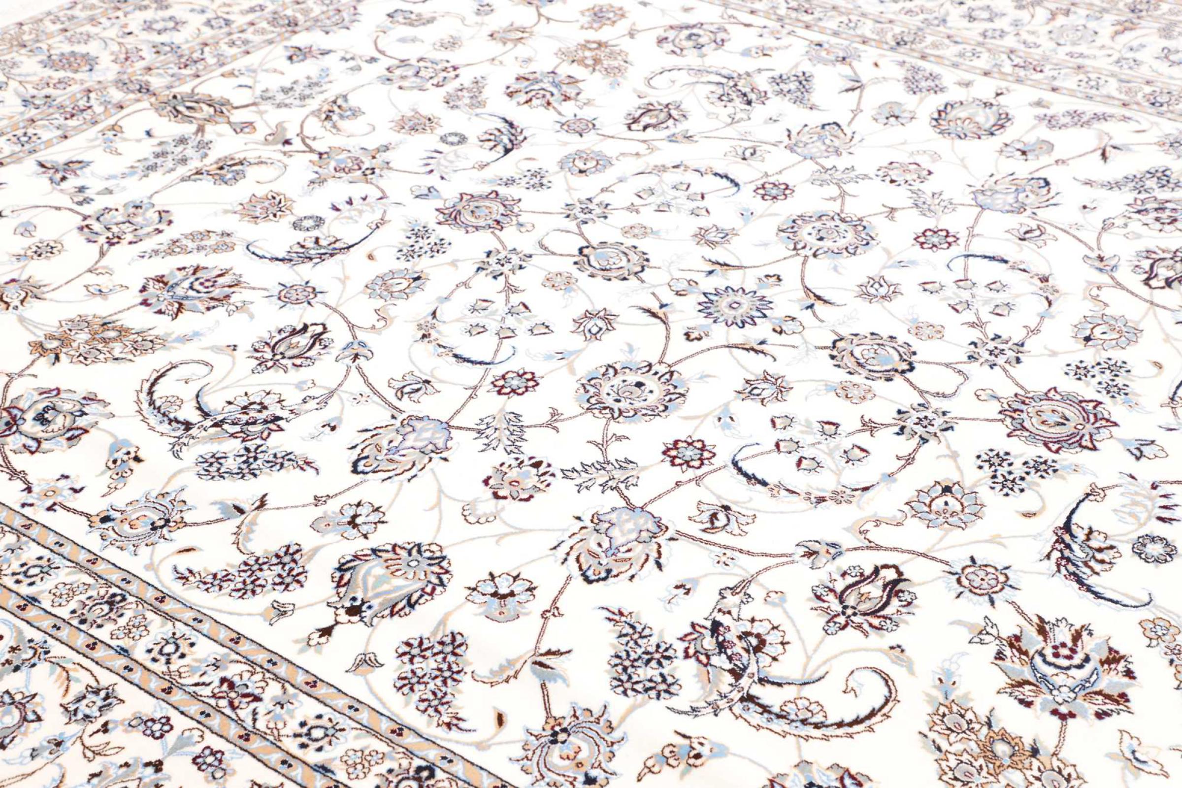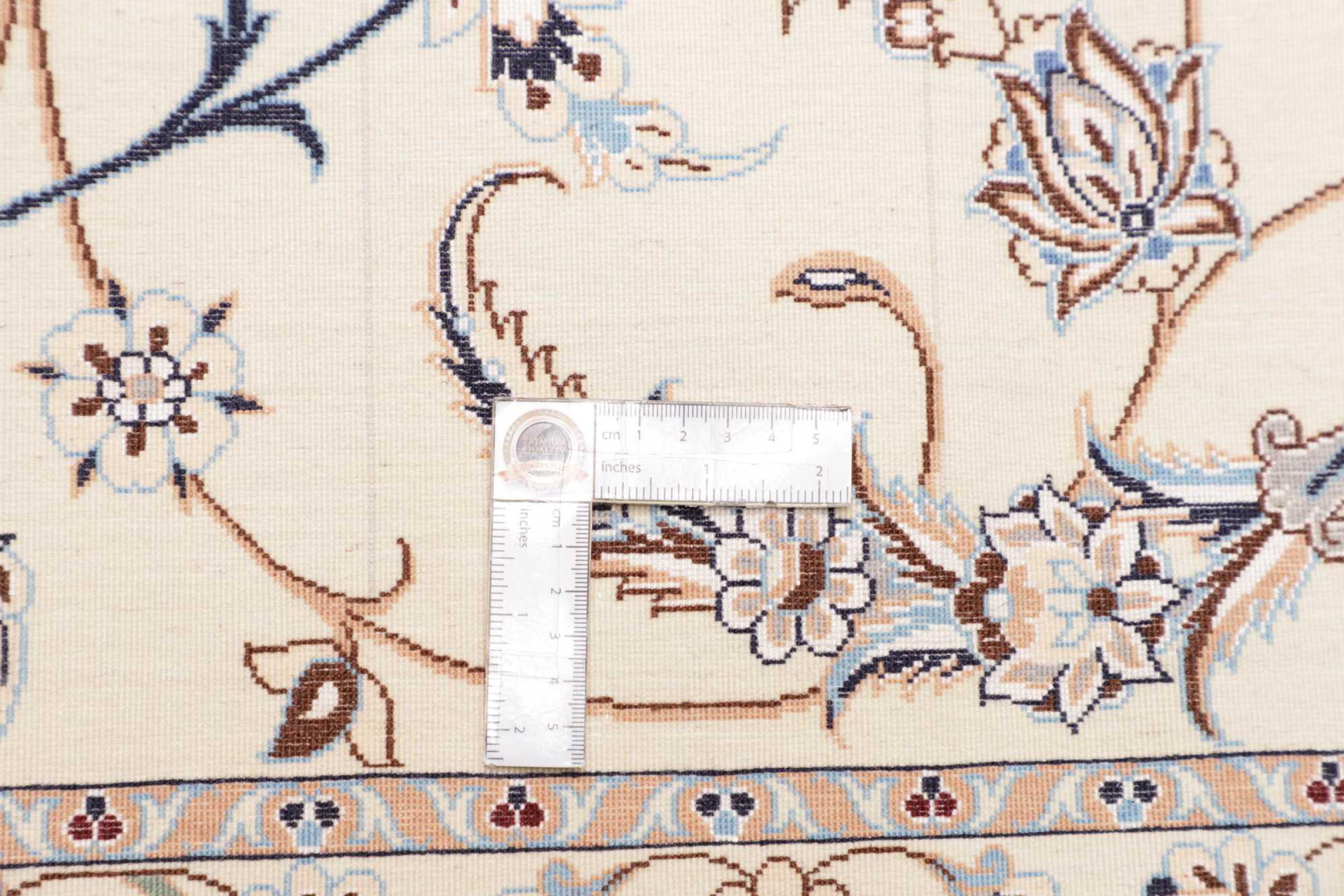 Nr.dywanu: 300785005060143 Wielkość: 308x256 cm Grubość: ok. 6 mm Gęstość tkania: 680 000 - 850 000 / m² Przetwarzanie: Ręcznie tkane Włosie: Wełna z jedwabiem Osnowa: Bawełna Pochodzenie: Persja / Iran Wiek: nowe Waga: ok. 20 kg Ilość w magazynie: Unikalny - Tylko 1 na składzie