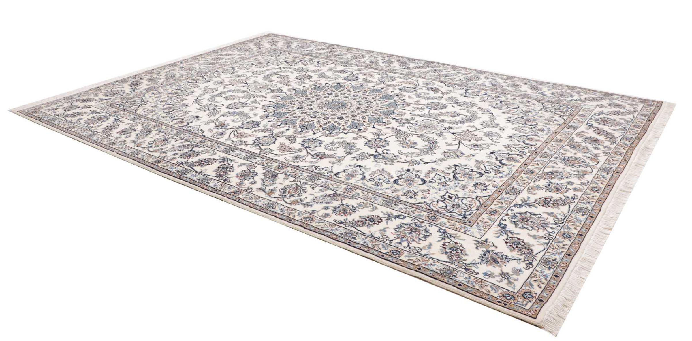Nr.dywanu: 284651007184548 Wielkość: 348x247 cm Grubość: ok. 12 mm Gęstość tkania: 200 000 - 250 000 / m² Przetwarzanie: Ręcznie tkane Włosie: Wełna ręcznie przędzona Osnowa: Bawełna Pochodzenie: Persja / Iran Wiek: nowe Waga: ok. 30 kg Ilość w magazynie: Unikalny - Tylko 1 na składzie
