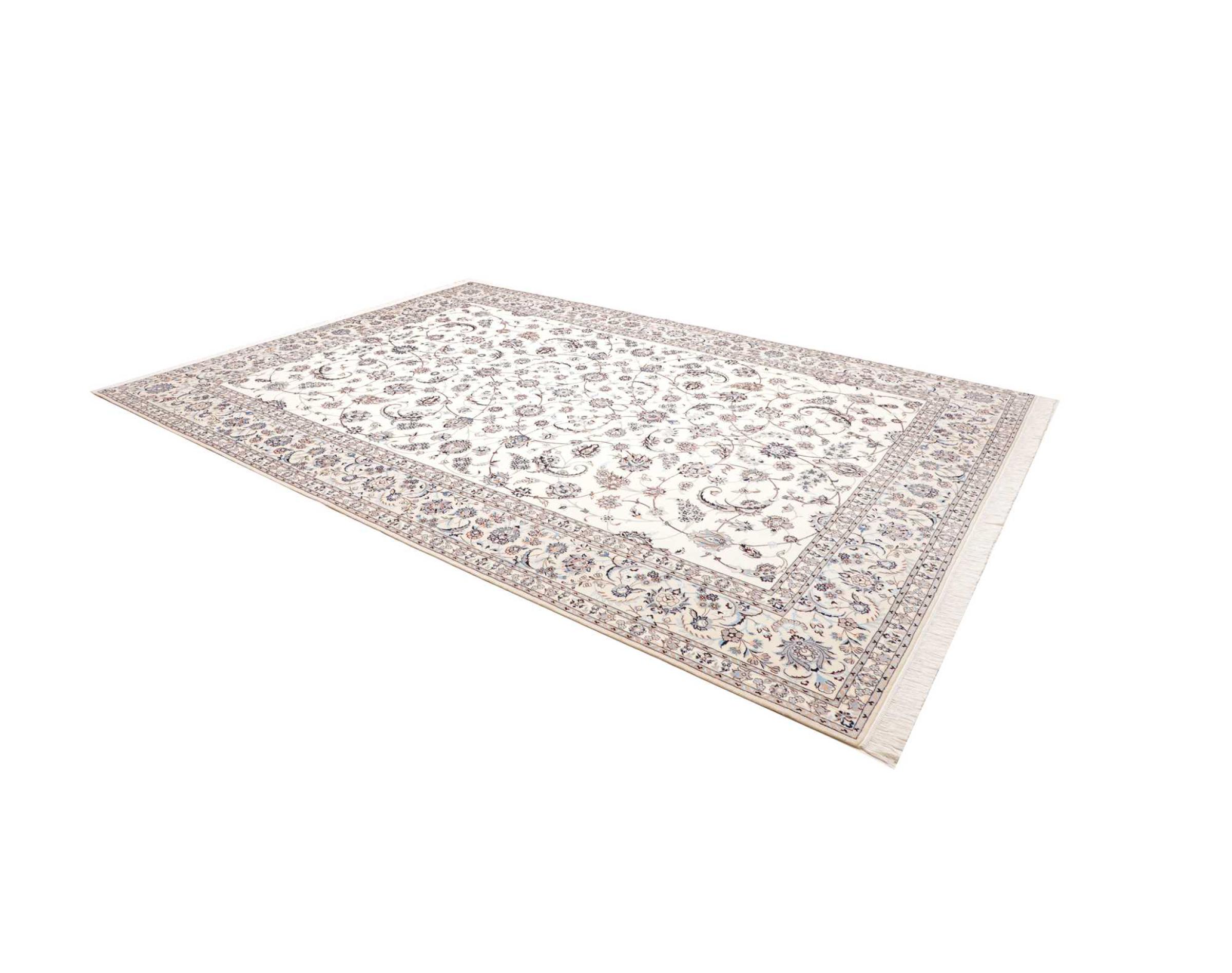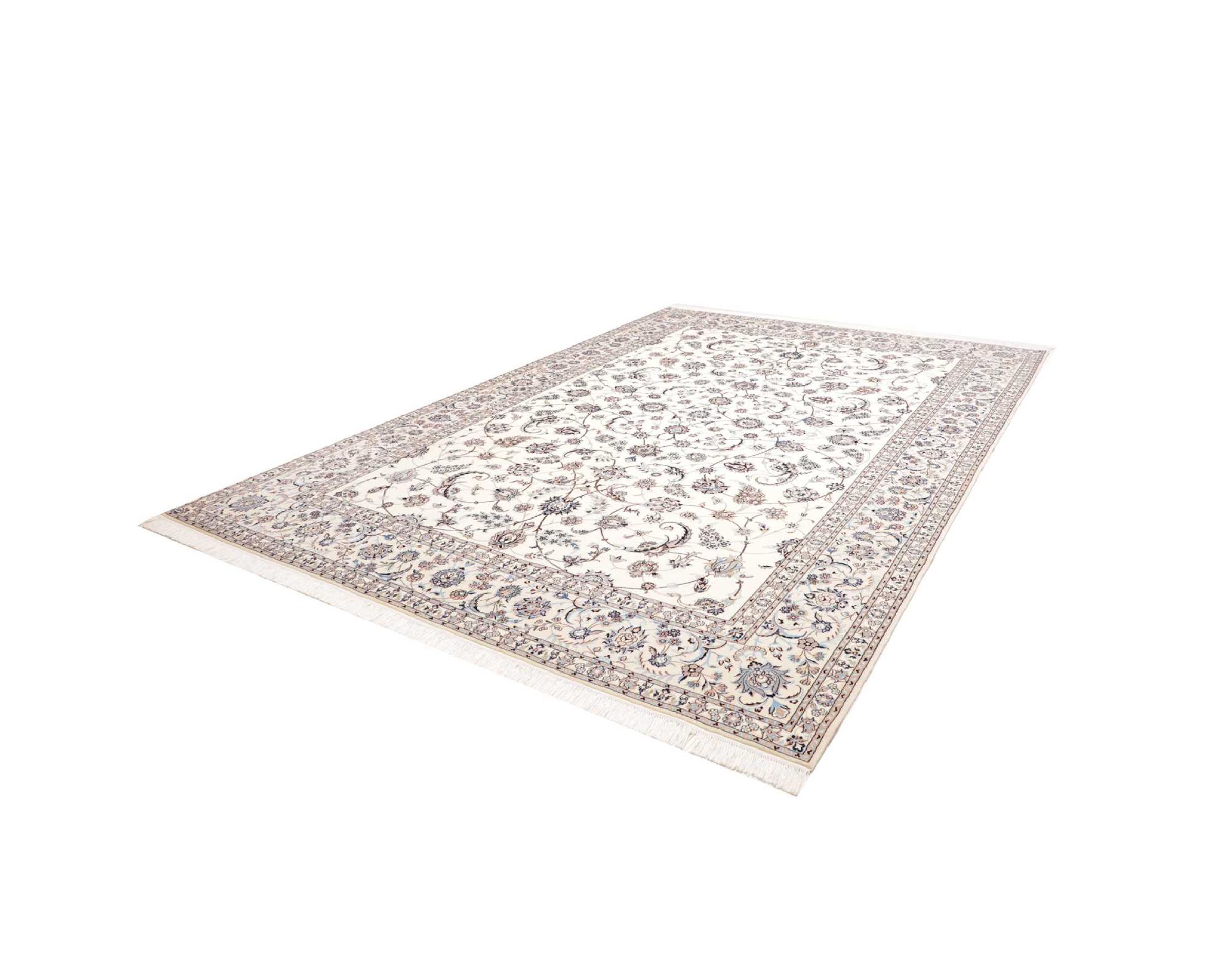Nr.dywanu: 300792005192028 Wielkość: 358x259 cm Grubość: ok. 6 mm Gęstość tkania: 680 000 - 850 000 / m² Przetwarzanie: Ręcznie tkane Włosie: Wełna z jedwabiem Osnowa: Bawełna Pochodzenie: Persja / Iran Wiek: nowe Waga: ok. 23 kg Ilość w magazynie: Unikalny - Tylko 1 na składzie
