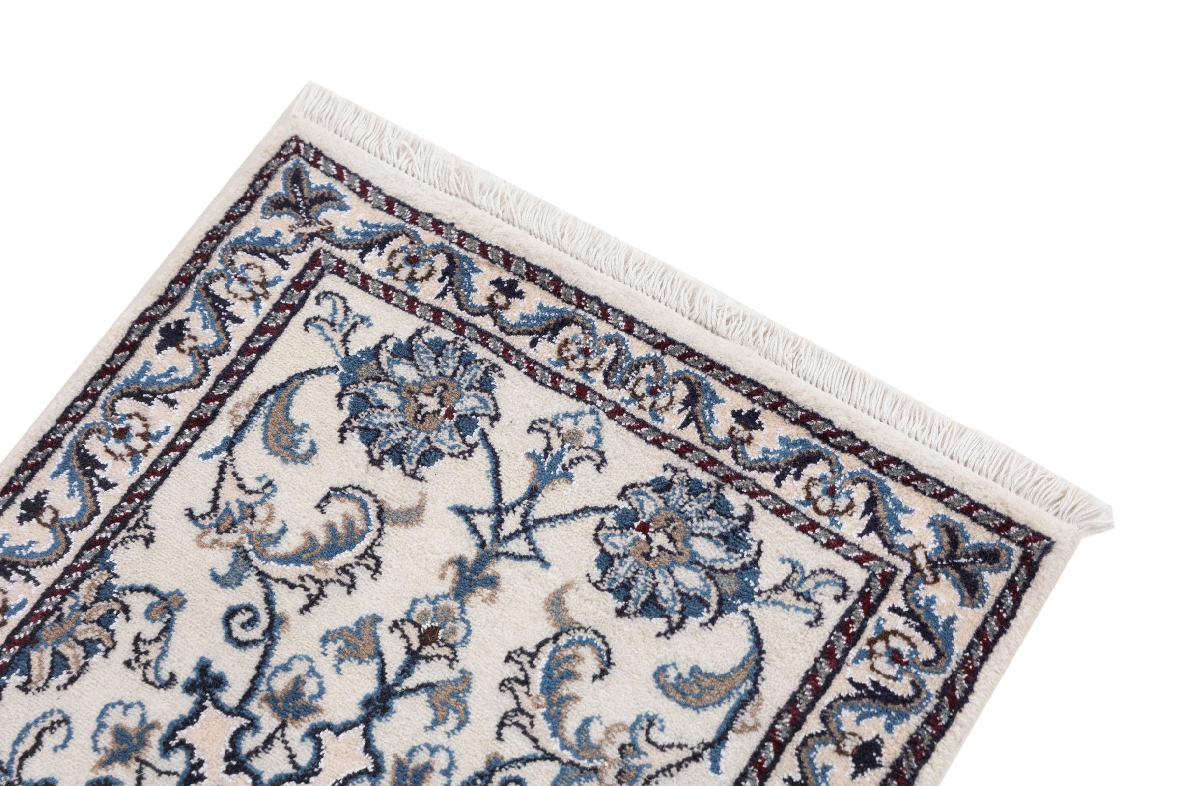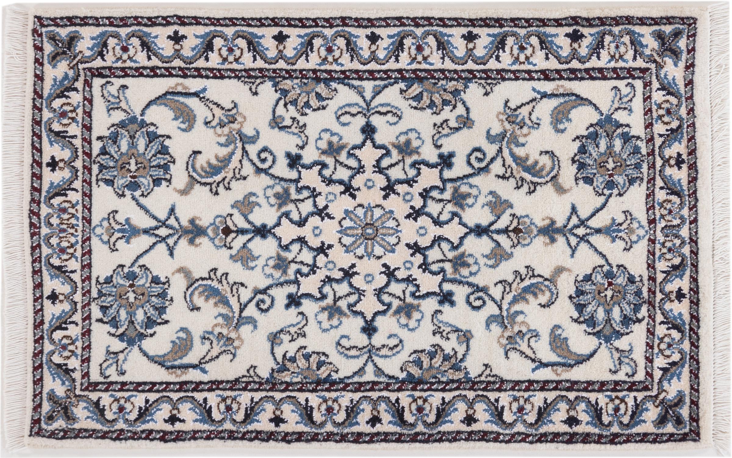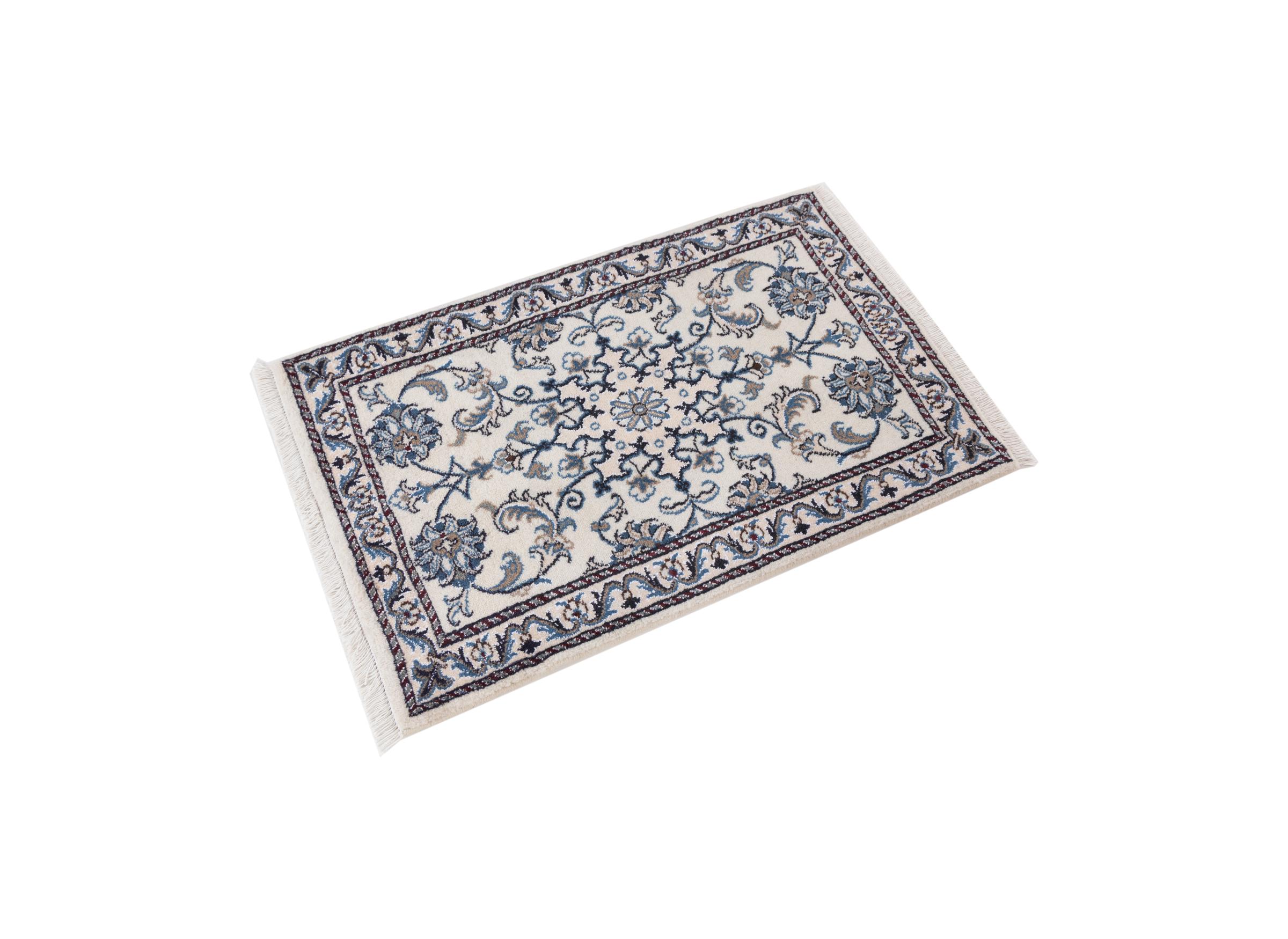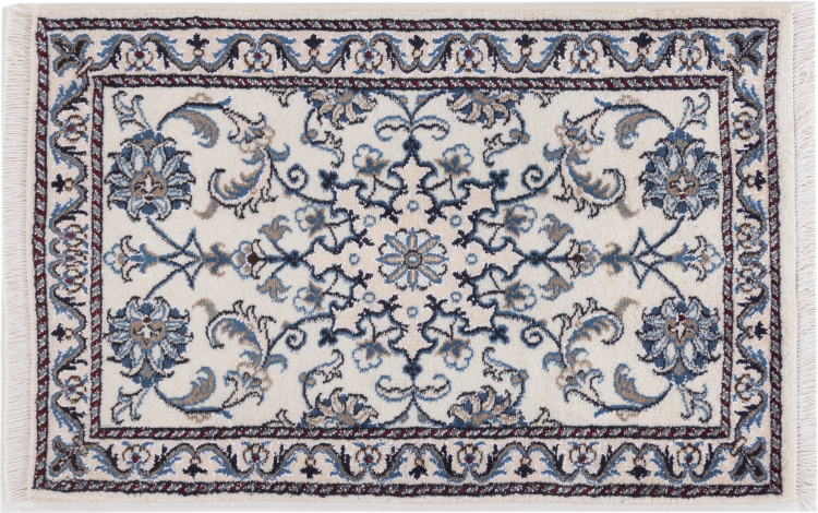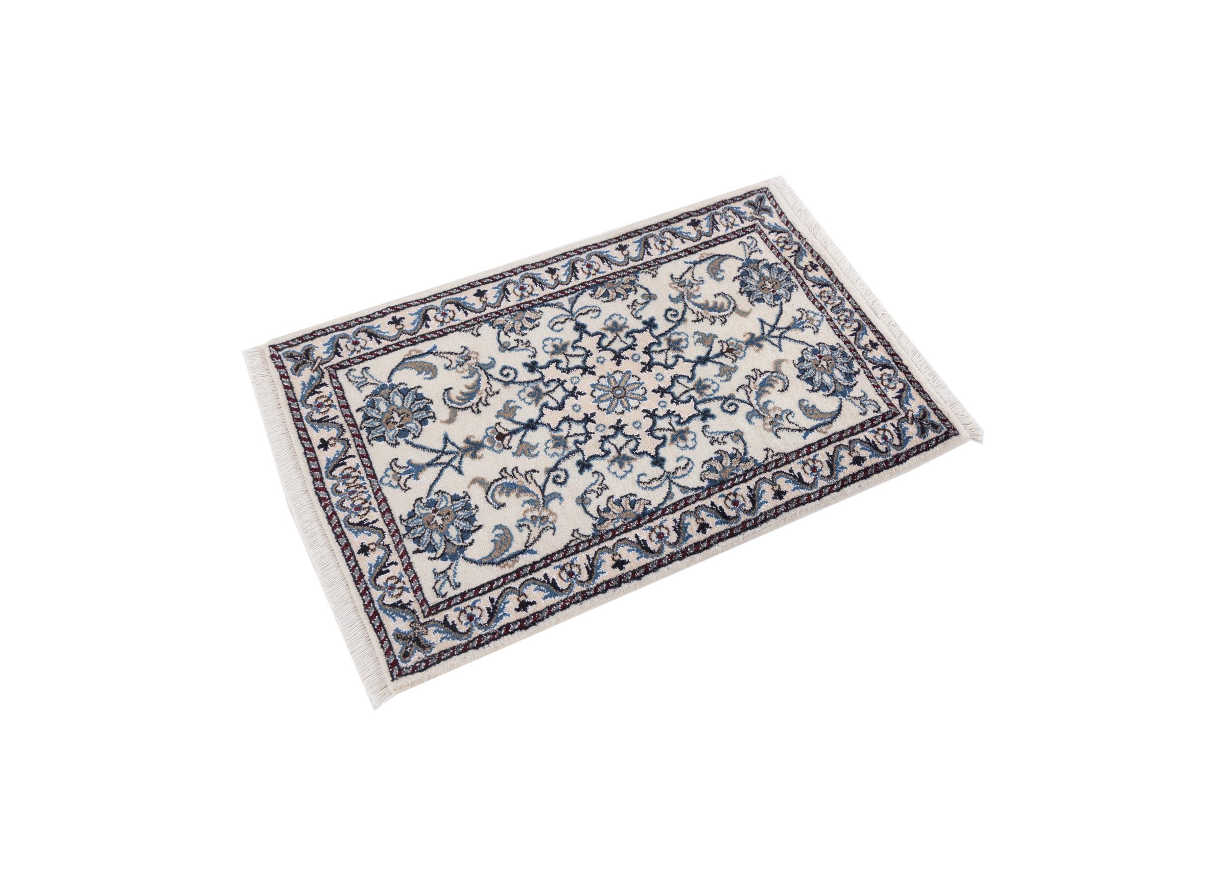 Nr.dywanu: 2939540021590 Wielkość: 90x60 cm Grubość: ok. 12 mm Gęstość tkania: 200 000 - 250 000 / m² Przetwarzanie: Ręcznie tkane Włosie: Wełna z jedwabiem Osnowa: Bawełna Pochodzenie: Persja / Iran Wiek: nowe Waga: ok. 2 kg Ilość w magazynie: Unikalny - Tylko 1 na składzie