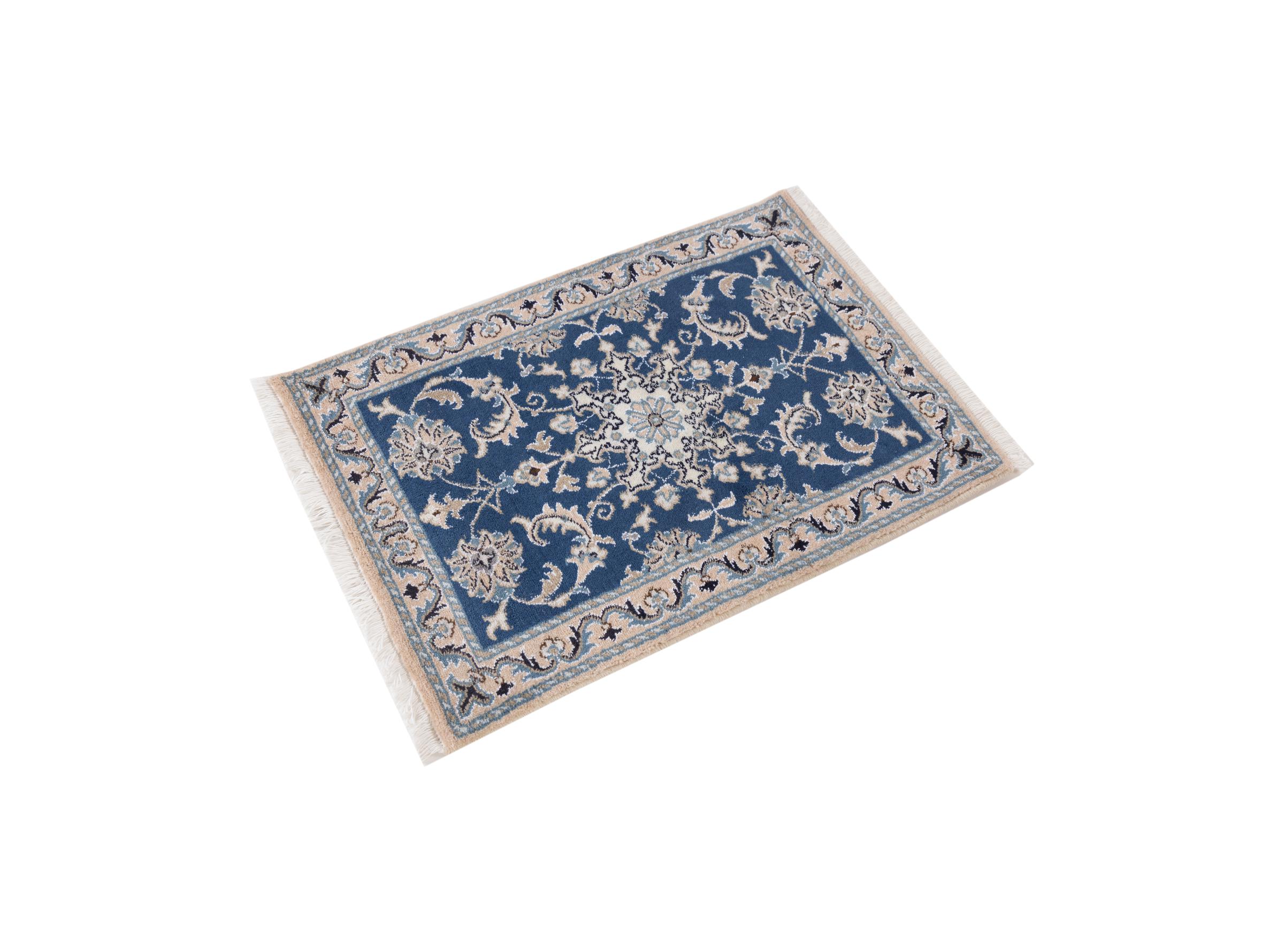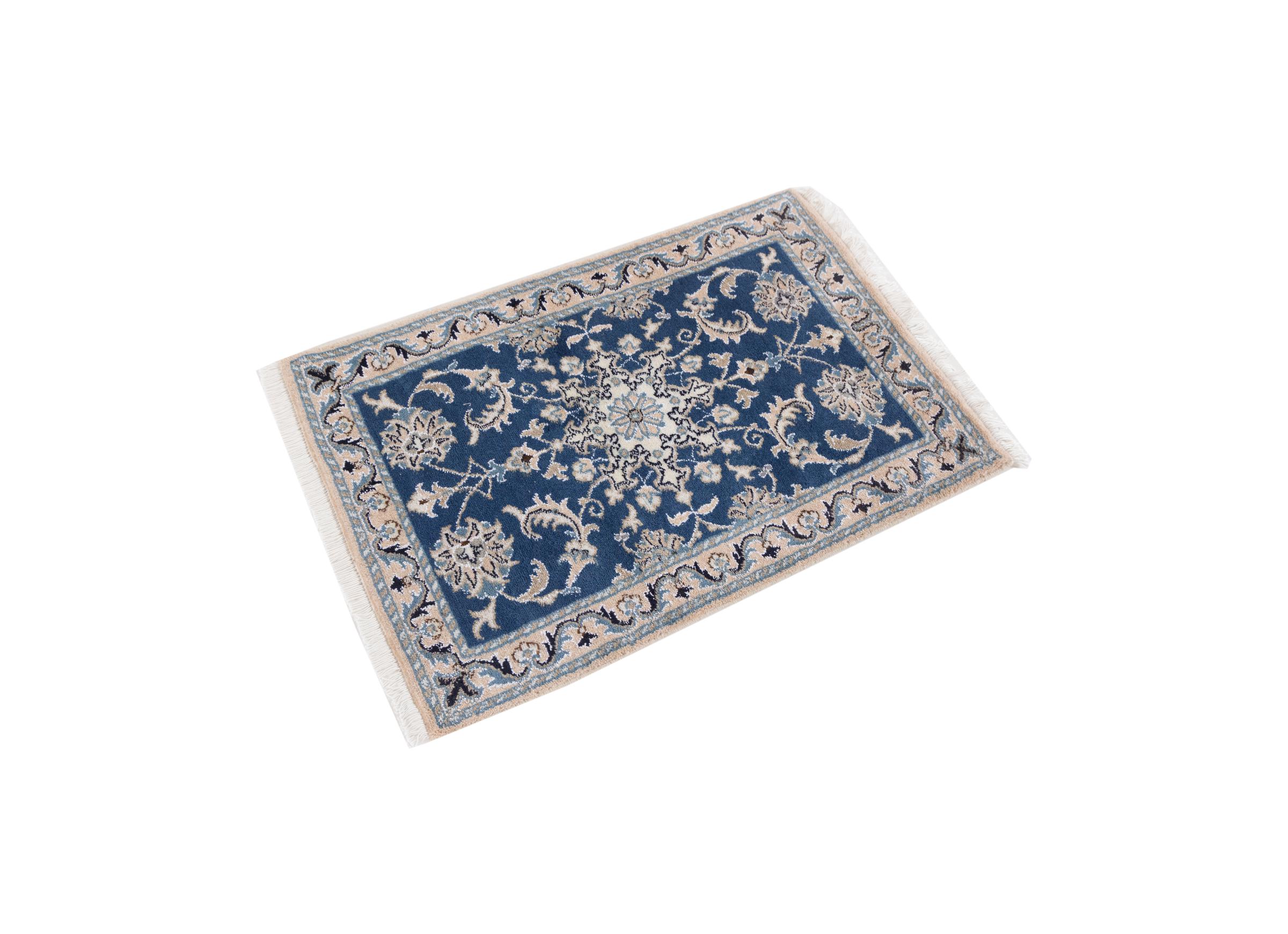 Nr.dywanu: 2939580021658 Wielkość: 90x60 cm Grubość: ok. 12 mm Gęstość tkania: 200 000 - 250 000 / m² Przetwarzanie: Ręcznie tkane Włosie: Wełna z jedwabiem Osnowa: Bawełna Pochodzenie: Persja / Iran Wiek: nowe Waga: ok. 2 kg Ilość w magazynie: Unikalny - Tylko 1 na składzie