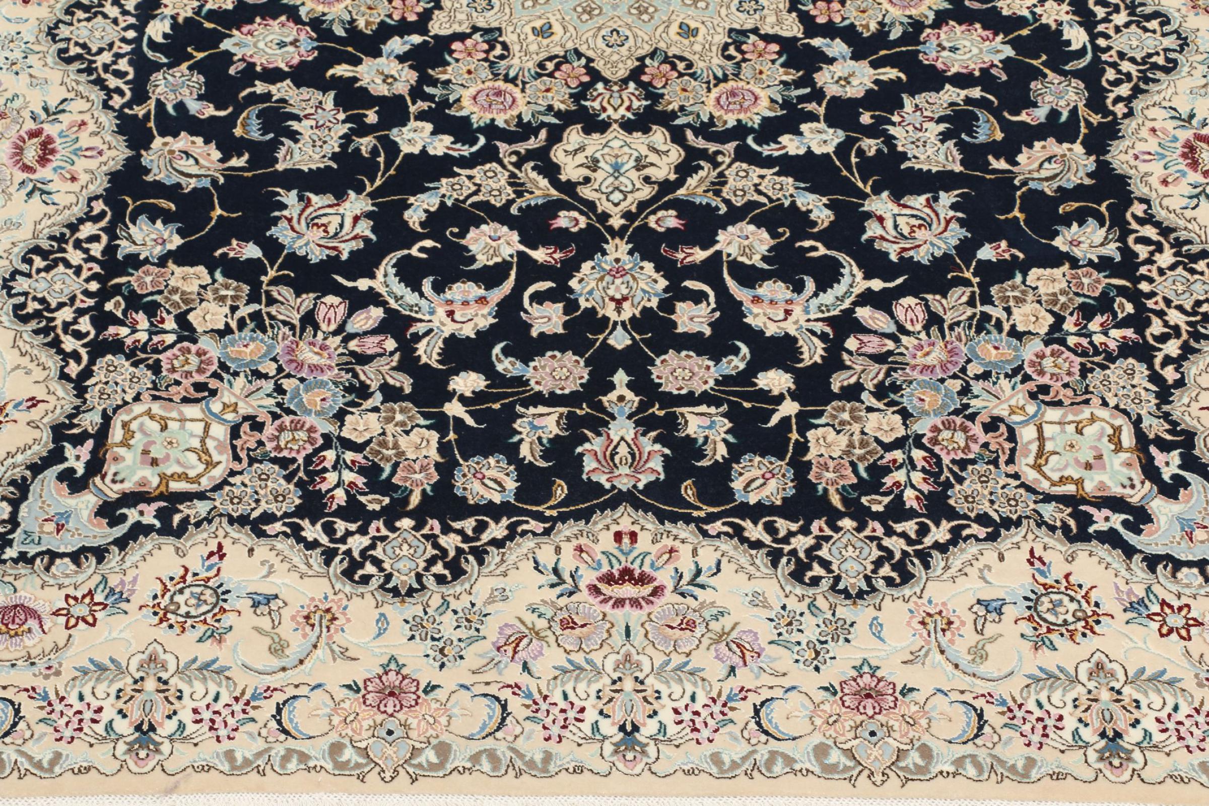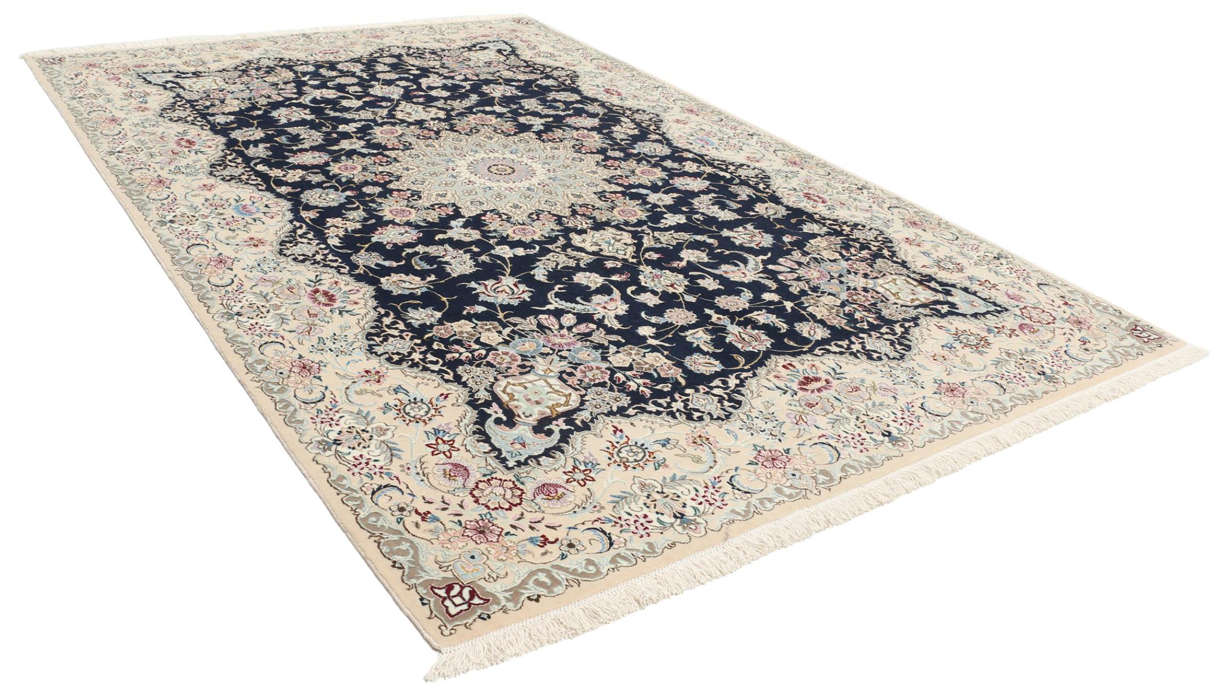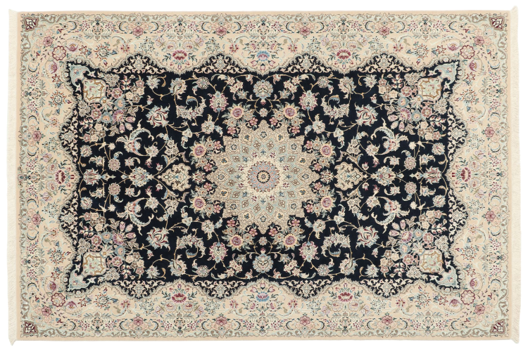Nr.dywanu: 309441004286971 Wielkość: 209x137 cm Grubość: ok. 6 mm Gęstość tkania: 810 000 / m² Przetwarzanie: Ręcznie tkane Włosie: Wełna z jedwabiem Osnowa: Bawełna Pochodzenie: Persja / Iran Wiek: nowe Waga: ok. 7 kg Ilość w magazynie: Unikalny - Tylko 1 na składzie
