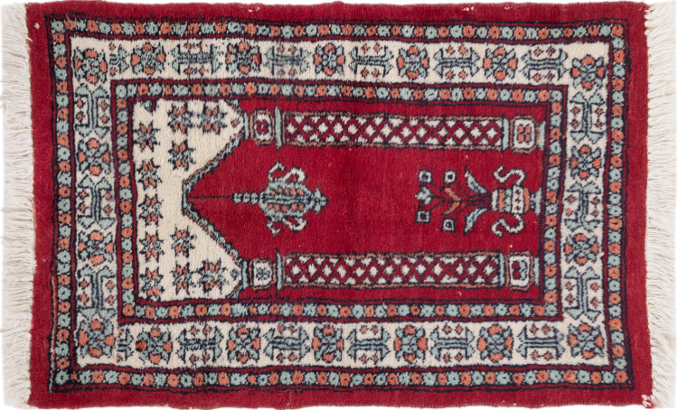 Nr.dywanu: 298969007349 Wielkość: 93x62 cm Grubość: ok. 8 mm Gęstość tkania: 200 000 - 250 000 / m² Przetwarzanie: Ręcznie tkane Włosie: Wełna ręcznie przędzona Osnowa: Bawełna Pochodzenie: Pakistan Wiek: nowe Waga: ok. 1 kg Ilość w magazynie: Unikalny - Tylko 1 na składzie