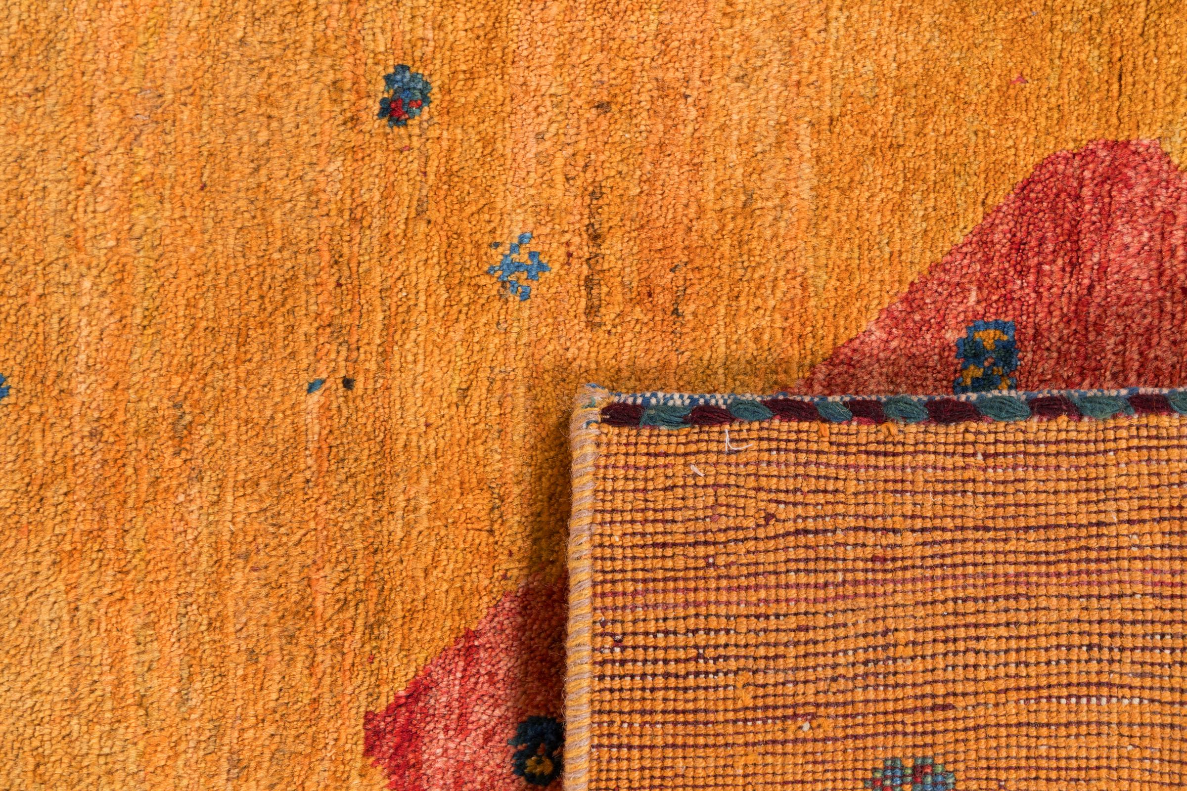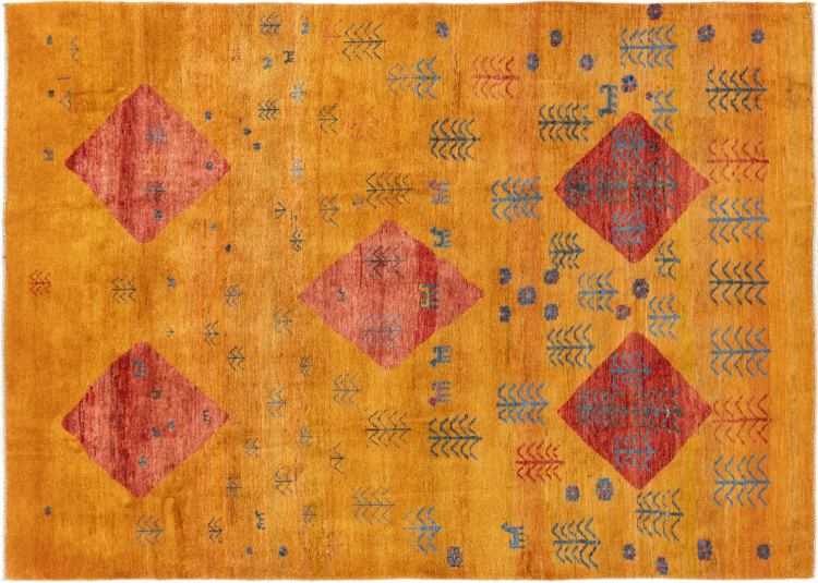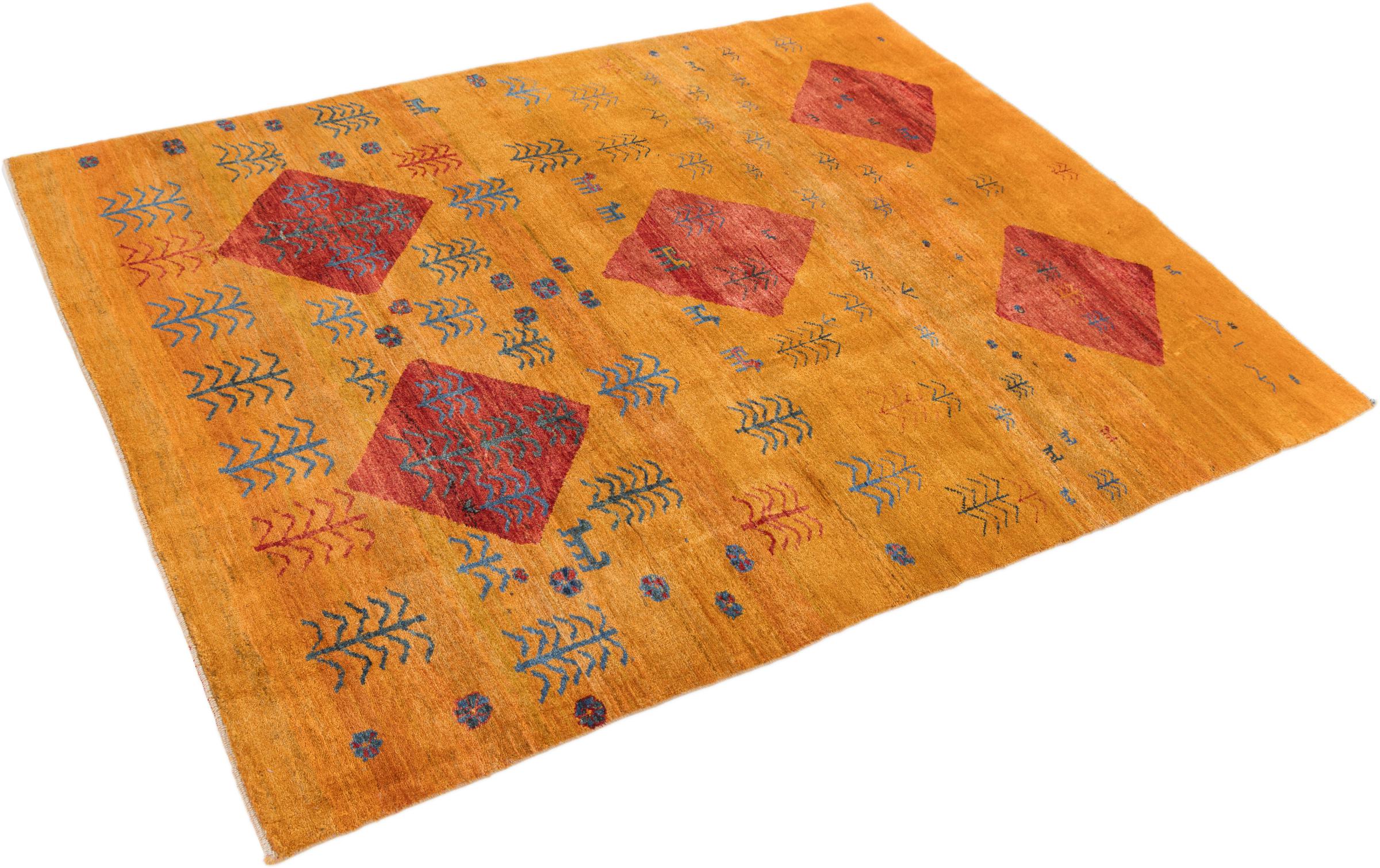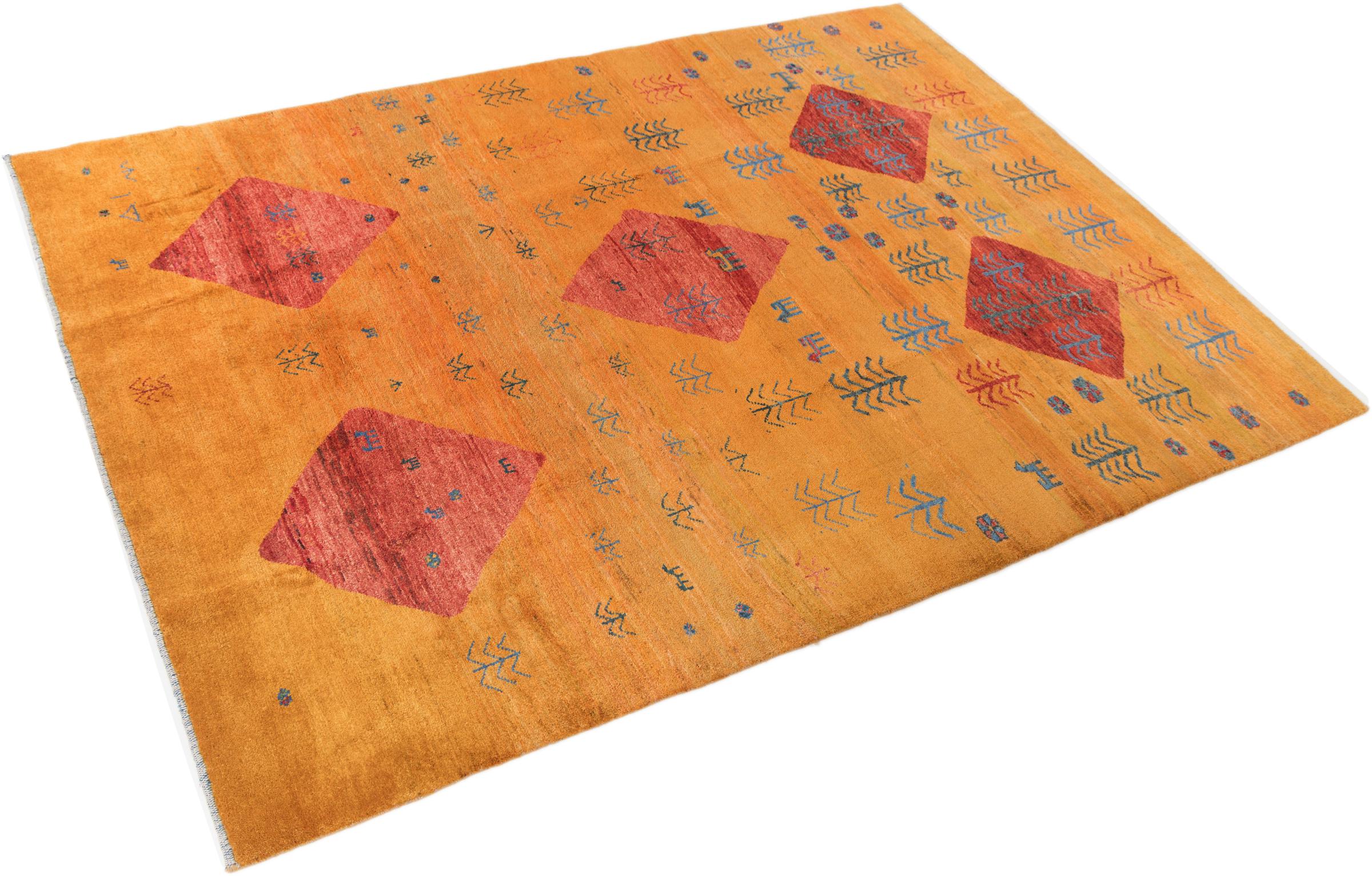 Ten piękny dywan jest perskim Gabbeh i dlatego należy do najwyższej jakości dywanów Gabbeh. Dywany są wiązane przez nomadów lub pół-nomadzi w Iranie zgodnie z tradycyjnym rzemiosłem. Proste motywy i wzory są w większości inspirowane bezpośrednim otoczeniem nomadów. Na przykład wielbłądy, drzewa lub krzewy można znaleźć na tradycyjnych dywanach. Perskie dywany Gabbeh wykonane są z wełny pochodzącej z lokalnie hodowanych stad owiec. Wełna jest więc w większości przypadków nadal obracana ręcznie. Tak więc każdy z tych orientalnych dywanów uosabia unikalny charakter wielowiekowej kultury.