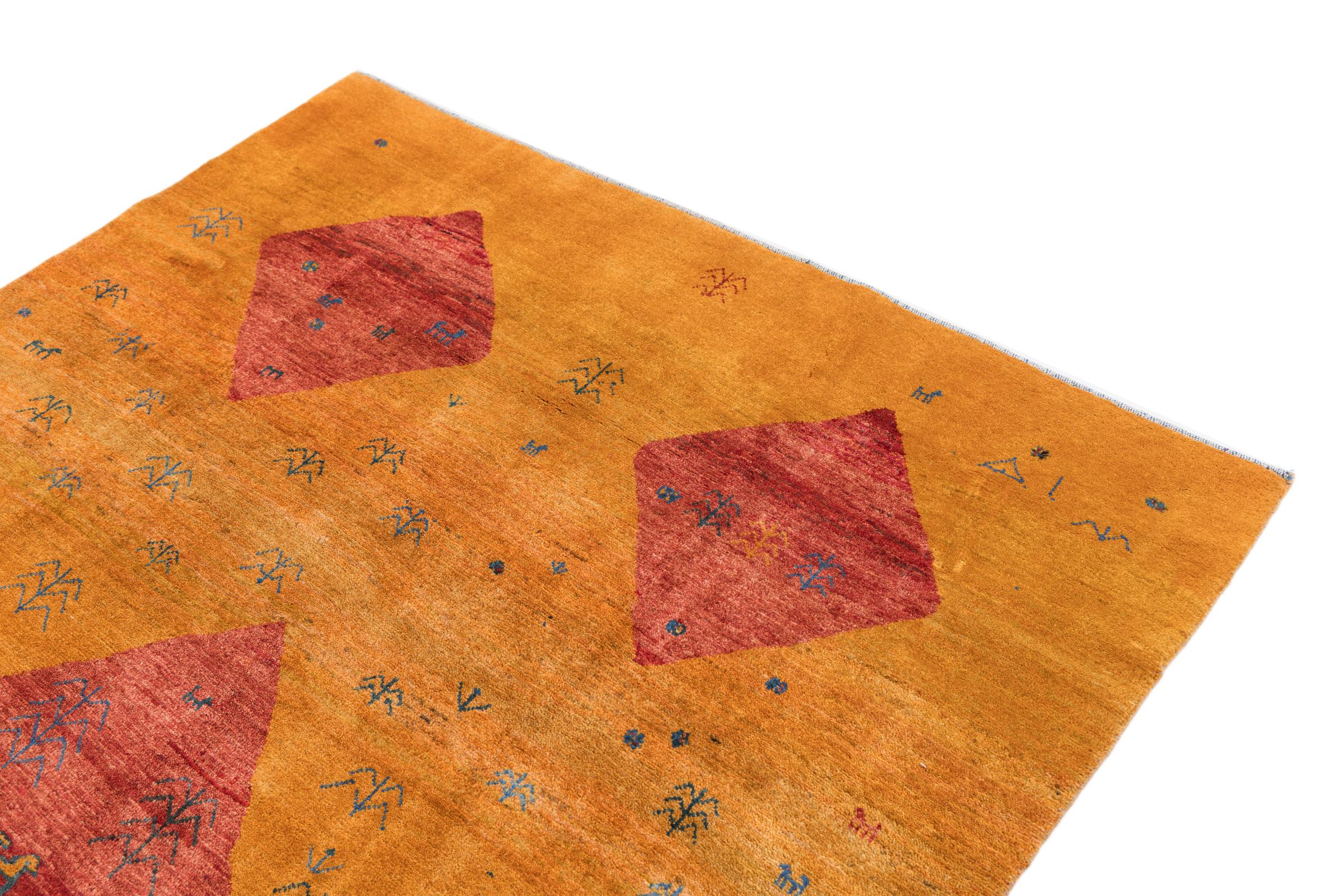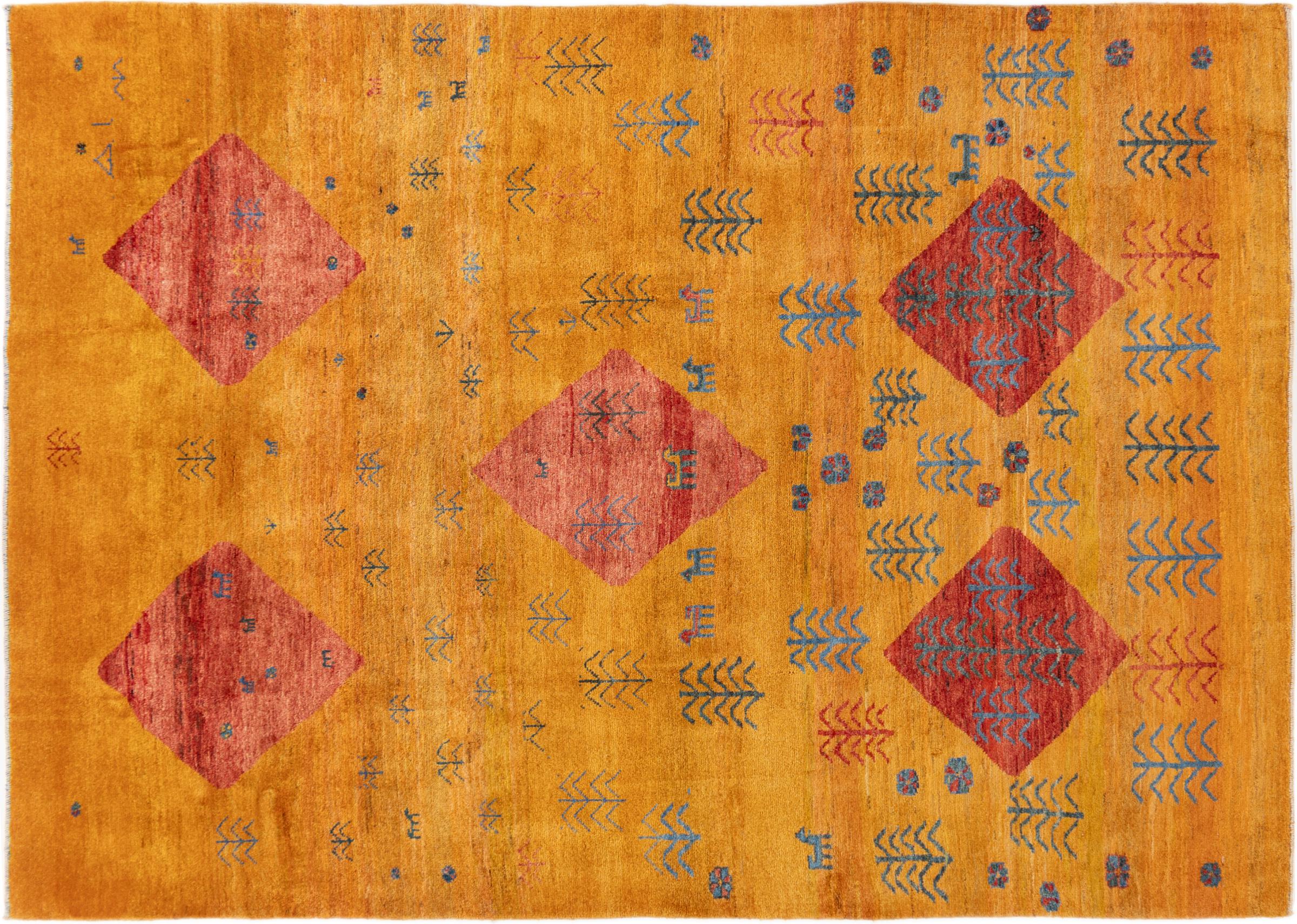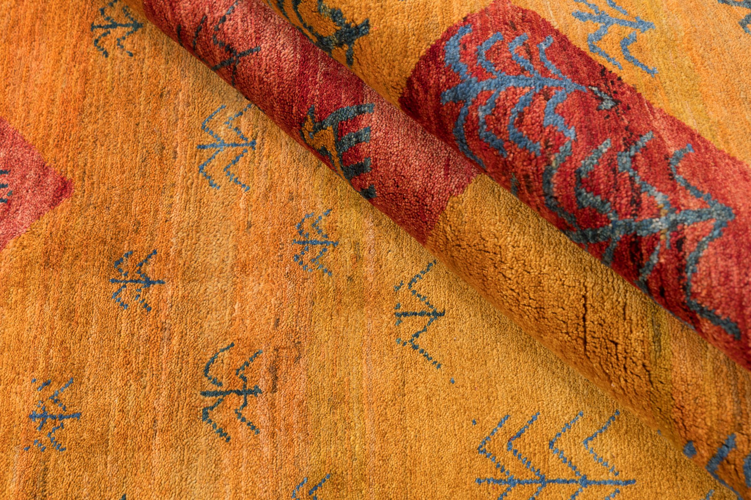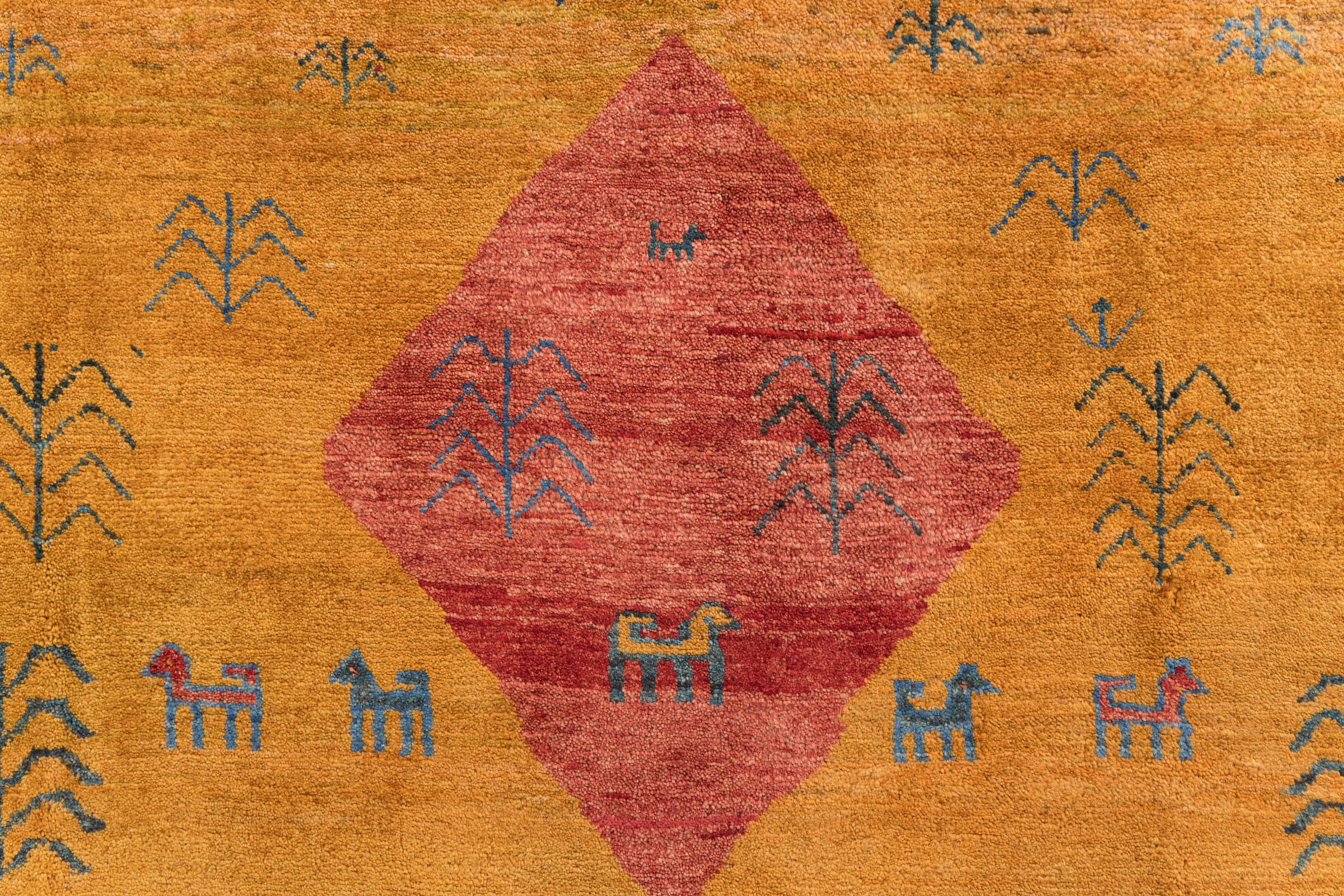 Ten piękny dywan jest perskim Gabbeh i dlatego należy do najwyższej jakości dywanów Gabbeh. Dywany są wiązane przez nomadów lub pół-nomadzi w Iranie zgodnie z tradycyjnym rzemiosłem. Proste motywy i wzory są w większości inspirowane bezpośrednim otoczeniem nomadów. Na przykład wielbłądy, drzewa lub krzewy można znaleźć na tradycyjnych dywanach. Perskie dywany Gabbeh wykonane są z wełny pochodzącej z lokalnie hodowanych stad owiec. Wełna jest więc w większości przypadków nadal obracana ręcznie. Tak więc każdy z tych orientalnych dywanów uosabia unikalny charakter wielowiekowej kultury.