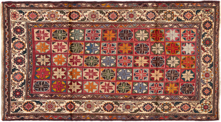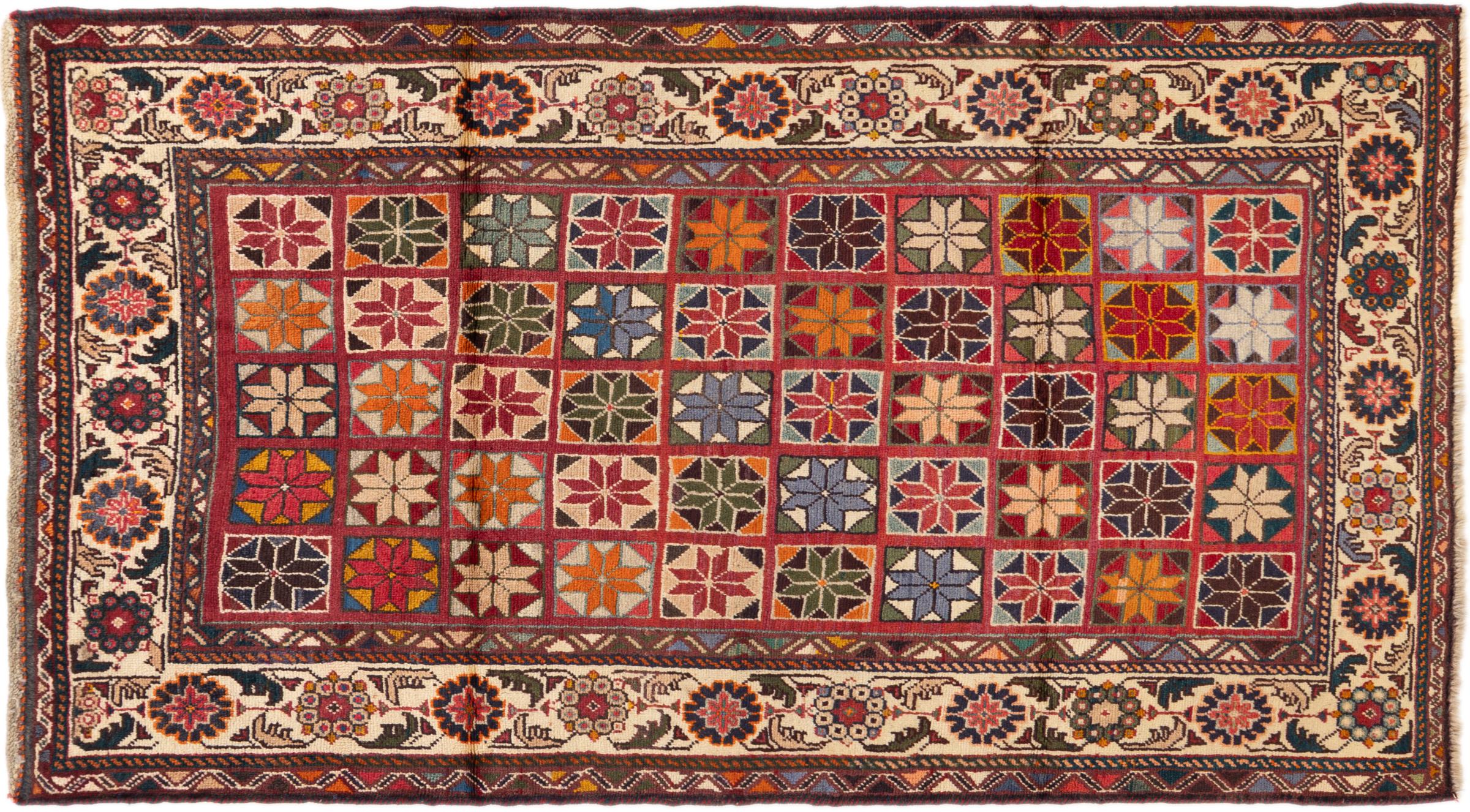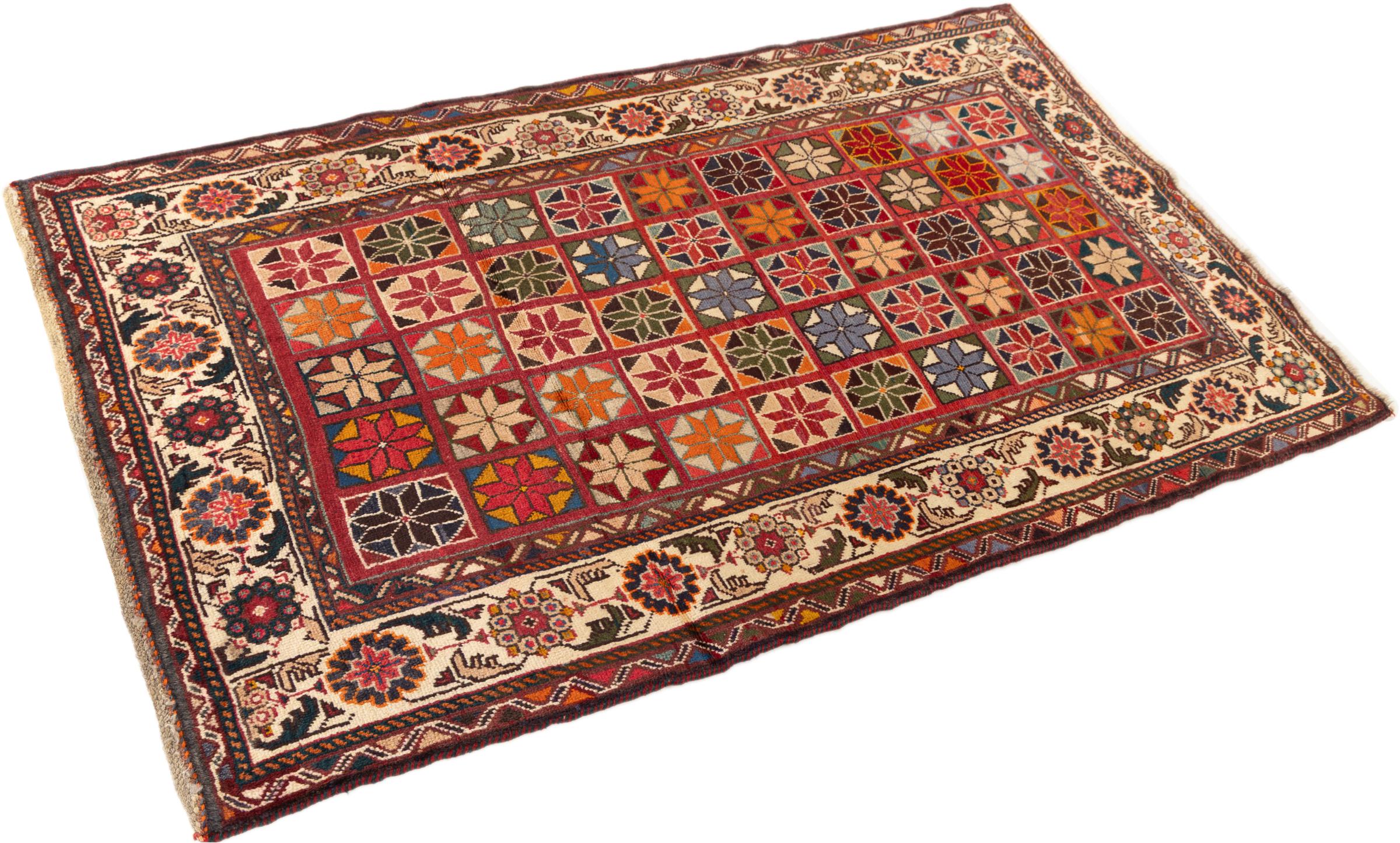 Nr.dywanu: 295172004707 Wielkość: 187x105 cm Grubość: ok. 15 mm Gęstość tkania: 96 000 - 120 000 / m² Przetwarzanie: Ręcznie tkane Włosie: Wełna ręcznie przędzona Osnowa: Wełna Pochodzenie: Persja / Iran Wiek: stary, ca. 30-50 lat Waga: ok. 6 kg Znany także jako Gabbe, Ghabbeh Ilość w magazynie: Unikalny - Tylko 1 na składzie