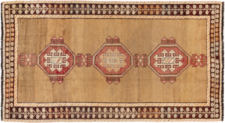 Nr.dywanu: 295563004515 Wielkość: 224x120 cm Grubość: ok. 15 mm Gęstość tkania: 72 000 - 90 000 / m² Przetwarzanie: Ręcznie tkane Włosie: Wełna ręcznie przędzona Osnowa: Wełna Pochodzenie: Persja / Iran Wiek: stare/antyczne, starsze niż 50 lat Waga: ok. 11 kg Znany także jako Gabbe, Ghabbeh Ilość w magazynie: Unikalny - Tylko 1 na składzie