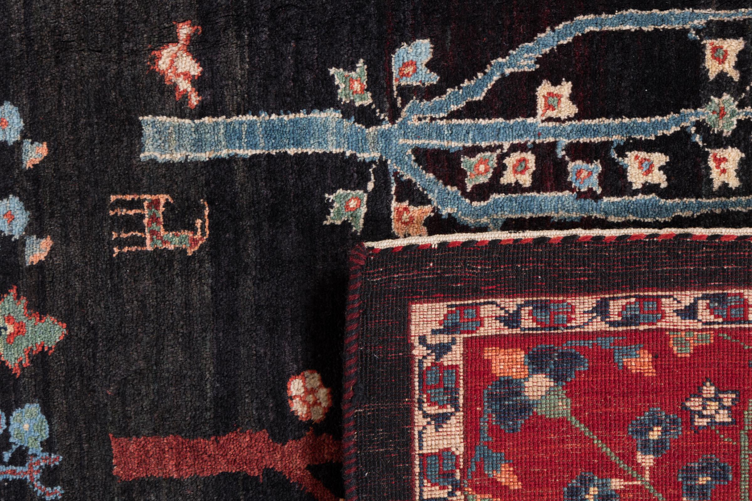 Ten piękny dywan jest perskim Gabbeh i dlatego należy do najwyższej jakości dywanów Gabbeh. Dywany są wiązane przez nomadów lub pół-nomadzi w Iranie zgodnie z tradycyjnym rzemiosłem. Proste motywy i wzory są w większości inspirowane bezpośrednim otoczeniem nomadów. Na przykład wielbłądy, drzewa lub krzewy można znaleźć na tradycyjnych dywanach. Perskie dywany Gabbeh wykonane są z wełny pochodzącej z lokalnie hodowanych stad owiec. Wełna jest więc w większości przypadków nadal obracana ręcznie. Tak więc każdy z tych orientalnych dywanów uosabia unikalny charakter wielowiekowej kultury.