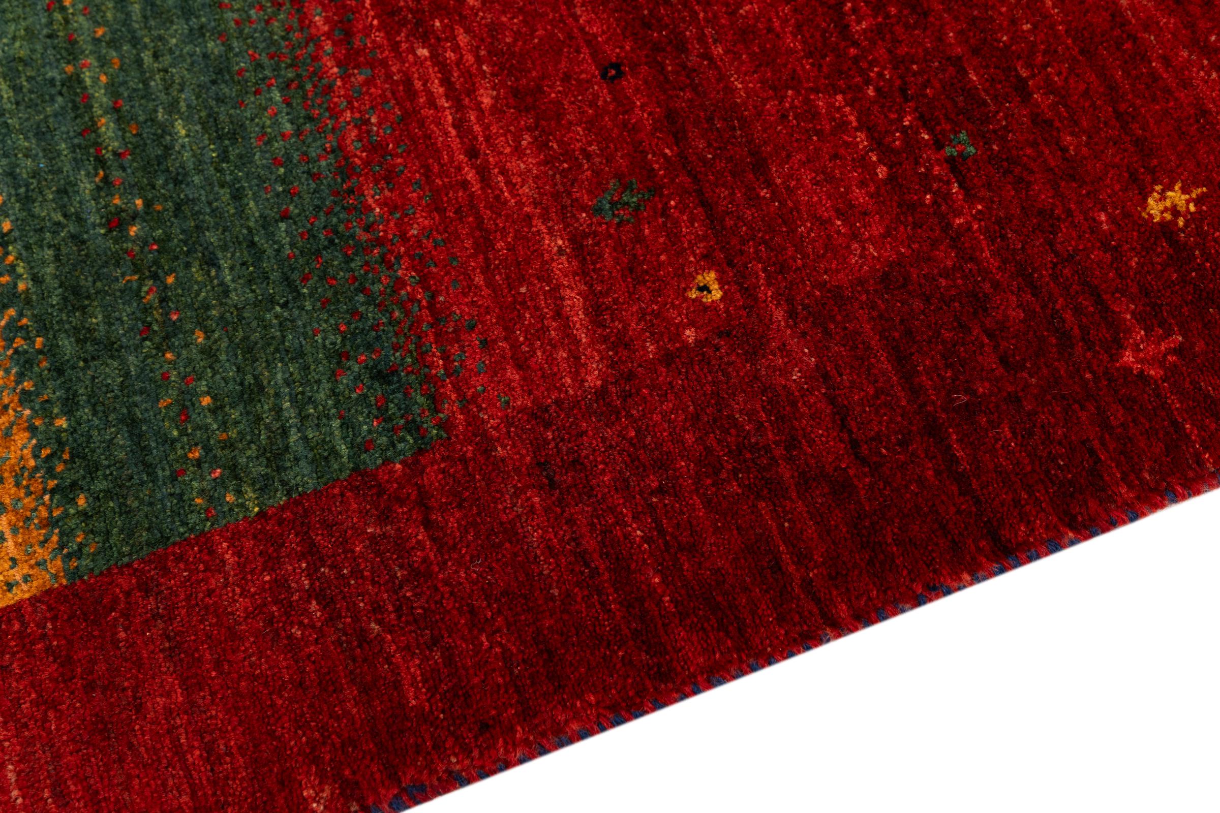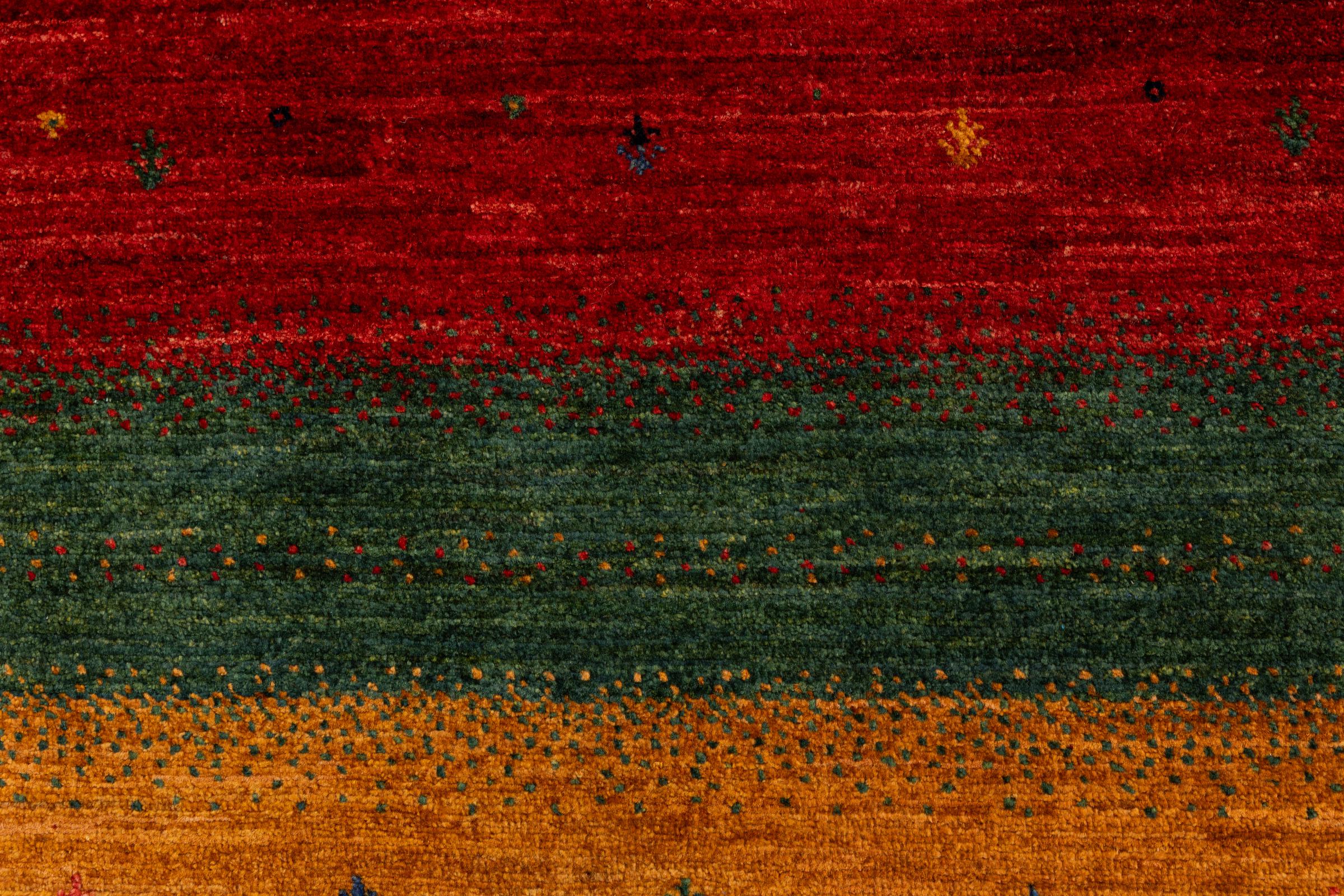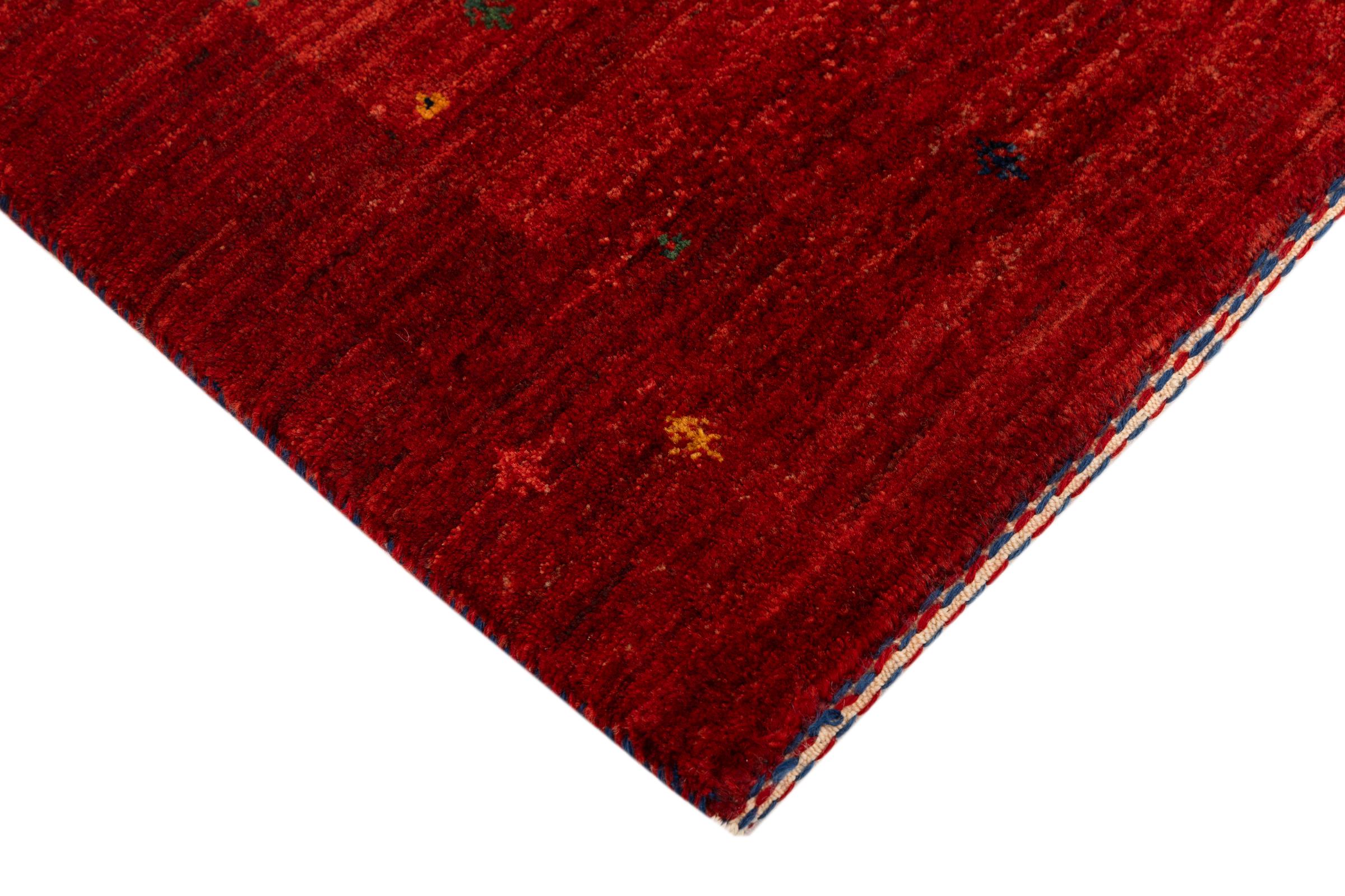 Ten piękny dywan jest perskim Gabbeh i dlatego należy do najwyższej jakości dywanów Gabbeh. Dywany są wiązane przez nomadów lub pół-nomadzi w Iranie zgodnie z tradycyjnym rzemiosłem. Proste motywy i wzory są w większości inspirowane bezpośrednim otoczeniem nomadów. Na przykład wielbłądy, drzewa lub krzewy można znaleźć na tradycyjnych dywanach. Perskie dywany Gabbeh wykonane są z wełny pochodzącej z lokalnie hodowanych stad owiec. Wełna jest więc w większości przypadków nadal obracana ręcznie. Tak więc każdy z tych orientalnych dywanów uosabia unikalny charakter wielowiekowej kultury.