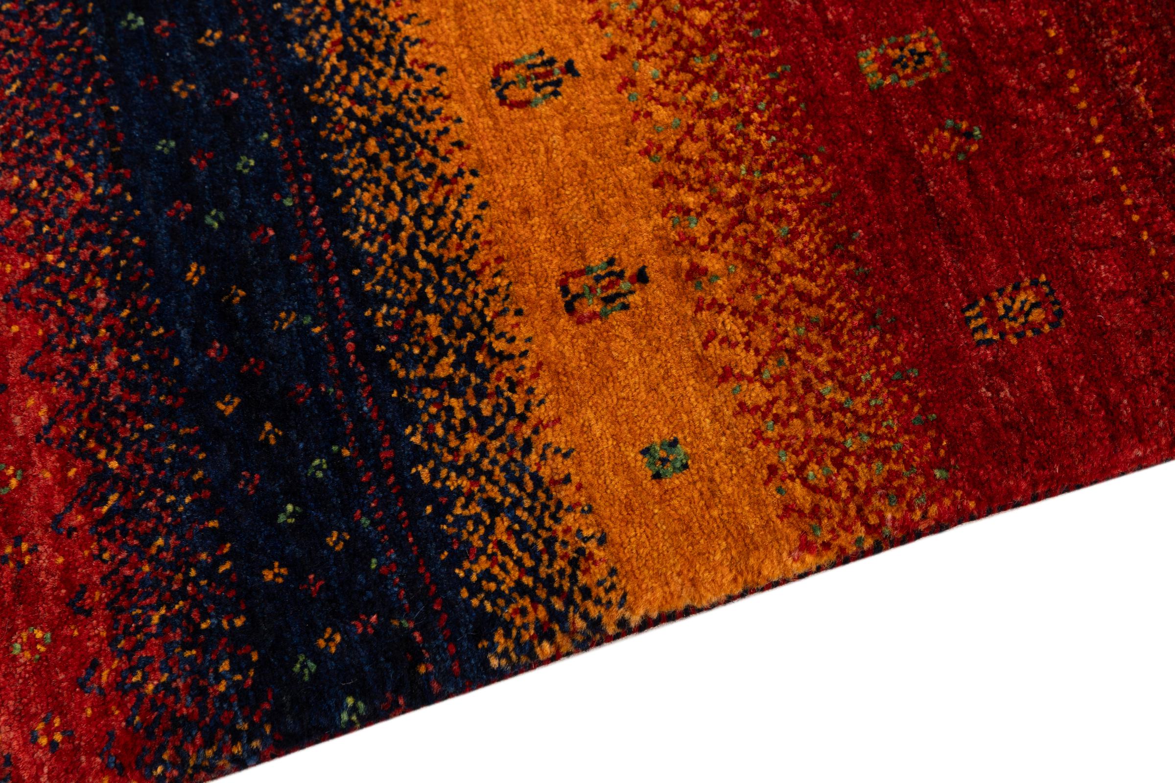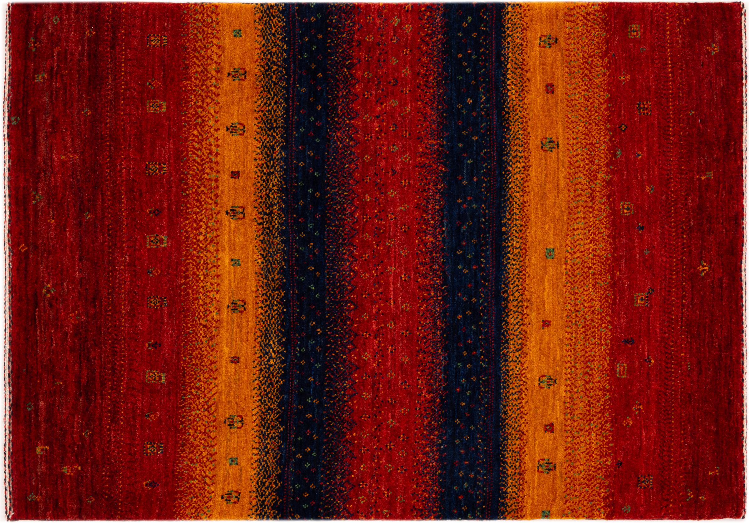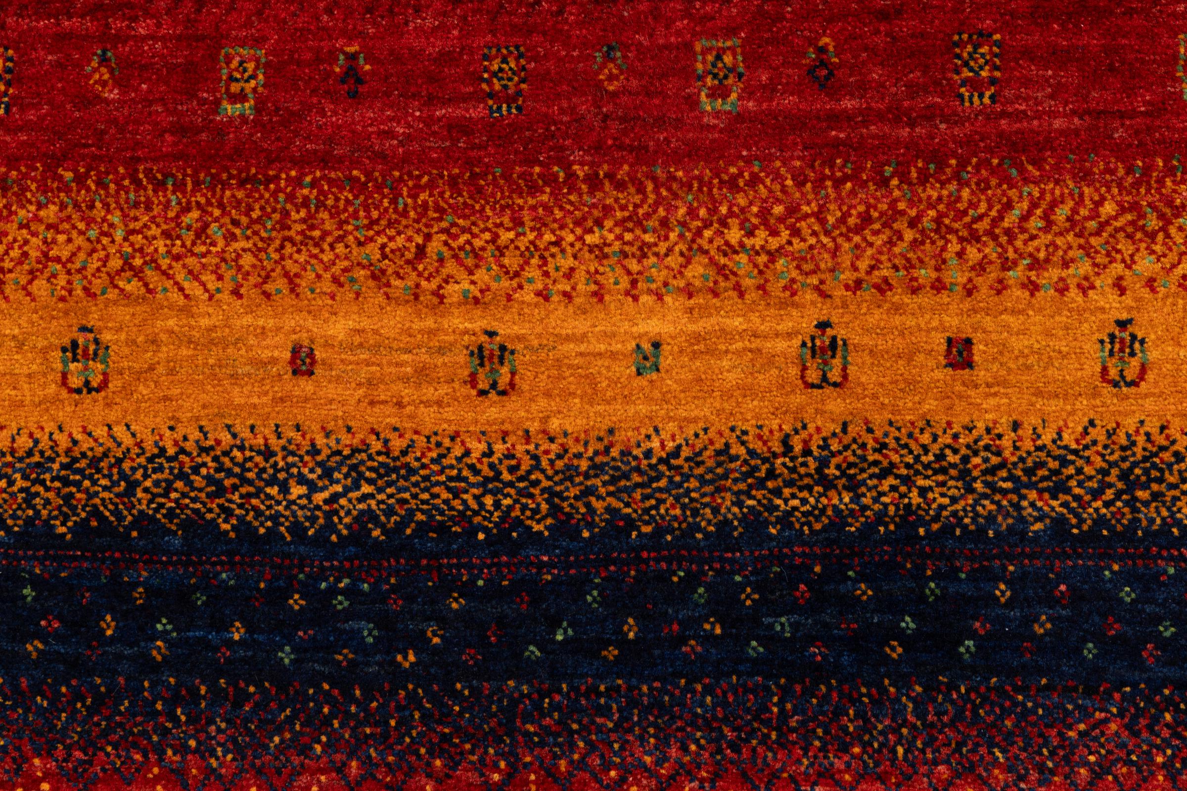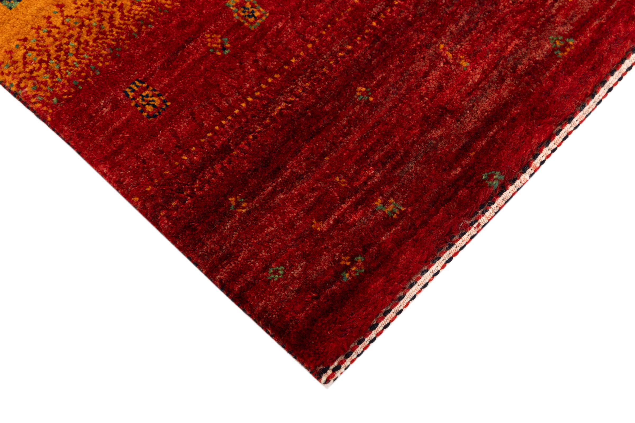 Ten piękny dywan jest perskim Gabbeh i dlatego należy do najwyższej jakości dywanów Gabbeh. Dywany są wiązane przez nomadów lub pół-nomadzi w Iranie zgodnie z tradycyjnym rzemiosłem. Proste motywy i wzory są w większości inspirowane bezpośrednim otoczeniem nomadów. Na przykład wielbłądy, drzewa lub krzewy można znaleźć na tradycyjnych dywanach. Perskie dywany Gabbeh wykonane są z wełny pochodzącej z lokalnie hodowanych stad owiec. Wełna jest więc w większości przypadków nadal obracana ręcznie. Tak więc każdy z tych orientalnych dywanów uosabia unikalny charakter wielowiekowej kultury.