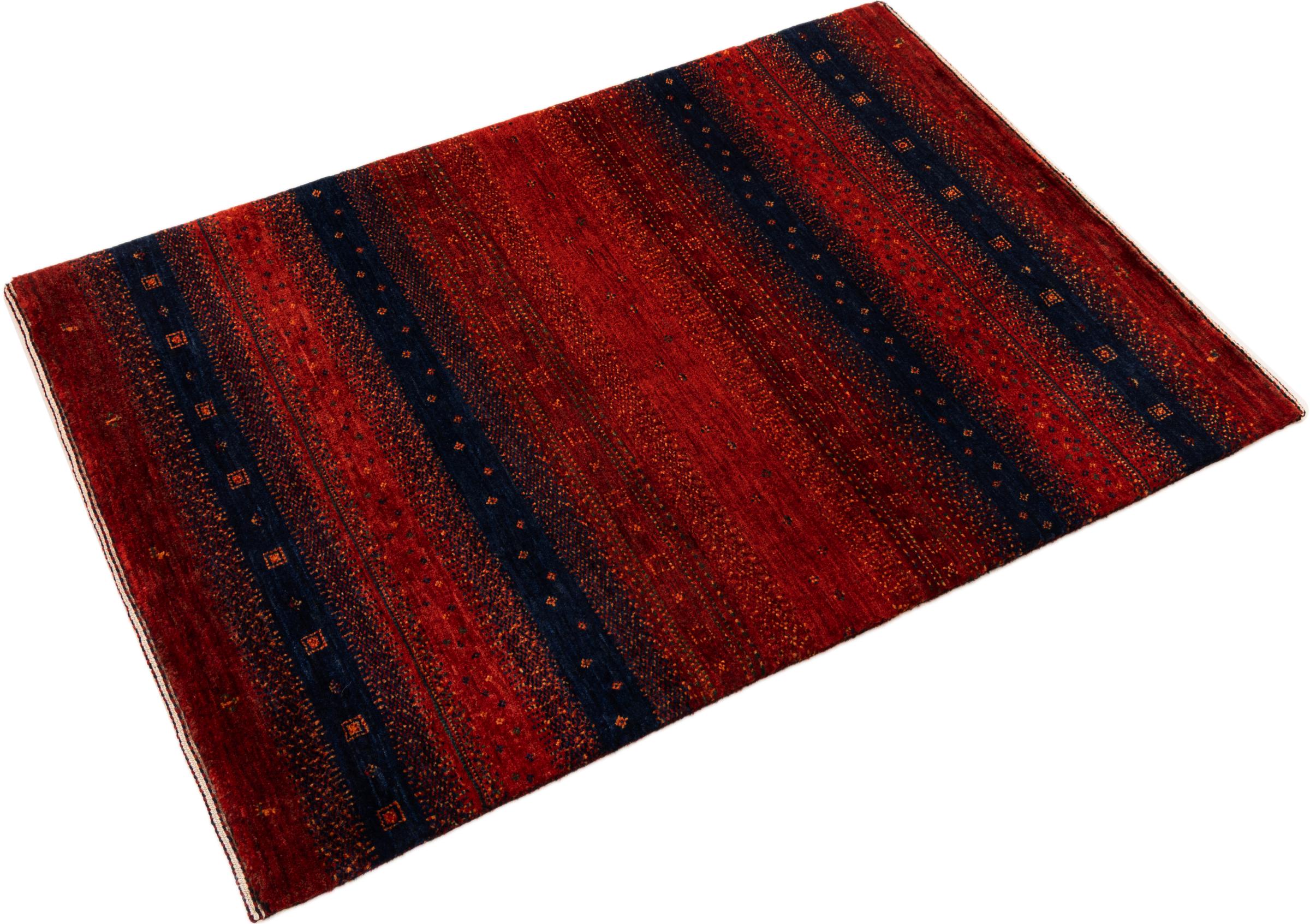 Ten piękny dywan jest perskim Gabbeh i dlatego należy do najwyższej jakości dywanów Gabbeh. Dywany są wiązane przez nomadów lub pół-nomadzi w Iranie zgodnie z tradycyjnym rzemiosłem. Proste motywy i wzory są w większości inspirowane bezpośrednim otoczeniem nomadów. Na przykład wielbłądy, drzewa lub krzewy można znaleźć na tradycyjnych dywanach. Perskie dywany Gabbeh wykonane są z wełny pochodzącej z lokalnie hodowanych stad owiec. Wełna jest więc w większości przypadków nadal obracana ręcznie. Tak więc każdy z tych orientalnych dywanów uosabia unikalny charakter wielowiekowej kultury.