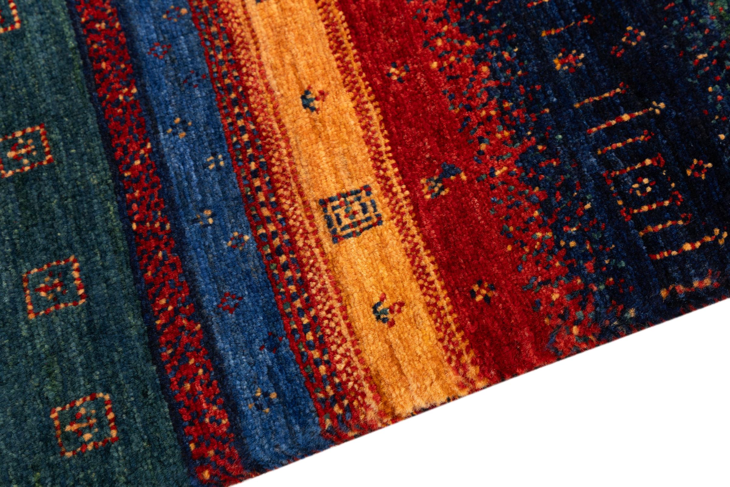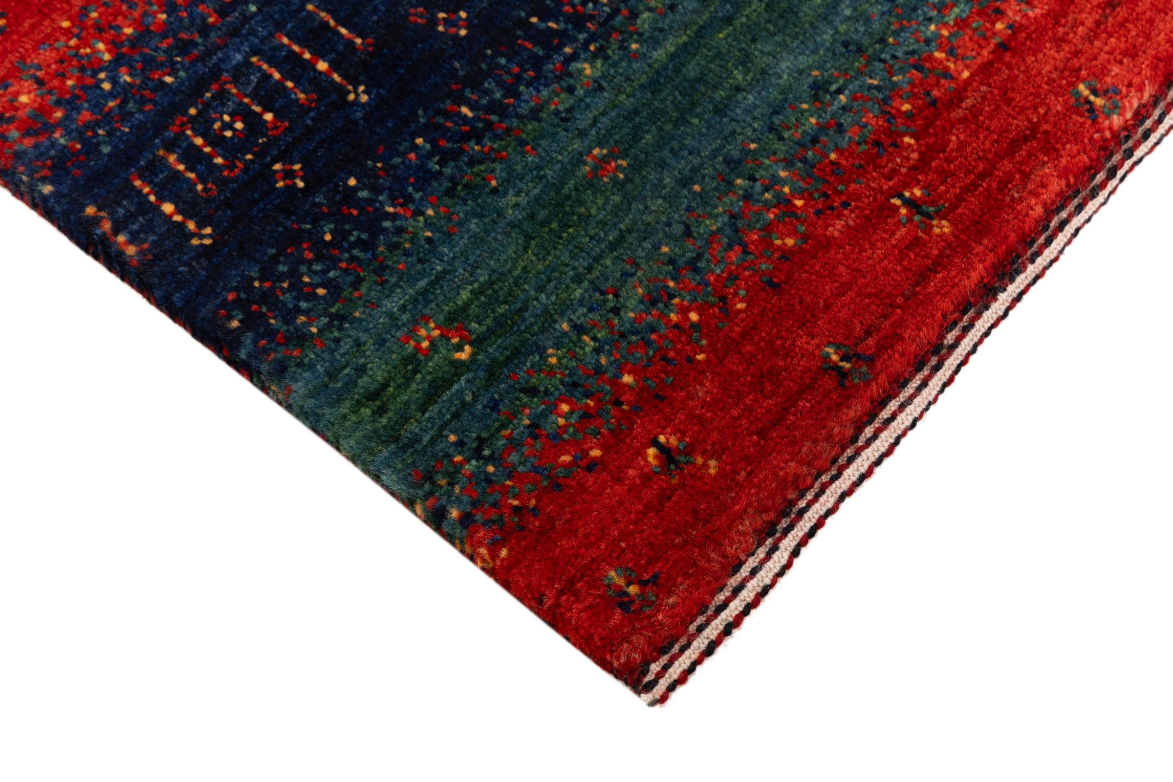 Ten piękny dywan jest perskim Gabbeh i dlatego należy do najwyższej jakości dywanów Gabbeh. Dywany są wiązane przez nomadów lub pół-nomadzi w Iranie zgodnie z tradycyjnym rzemiosłem. Proste motywy i wzory są w większości inspirowane bezpośrednim otoczeniem nomadów. Na przykład wielbłądy, drzewa lub krzewy można znaleźć na tradycyjnych dywanach. Perskie dywany Gabbeh wykonane są z wełny pochodzącej z lokalnie hodowanych stad owiec. Wełna jest więc w większości przypadków nadal obracana ręcznie. Tak więc każdy z tych orientalnych dywanów uosabia unikalny charakter wielowiekowej kultury.
