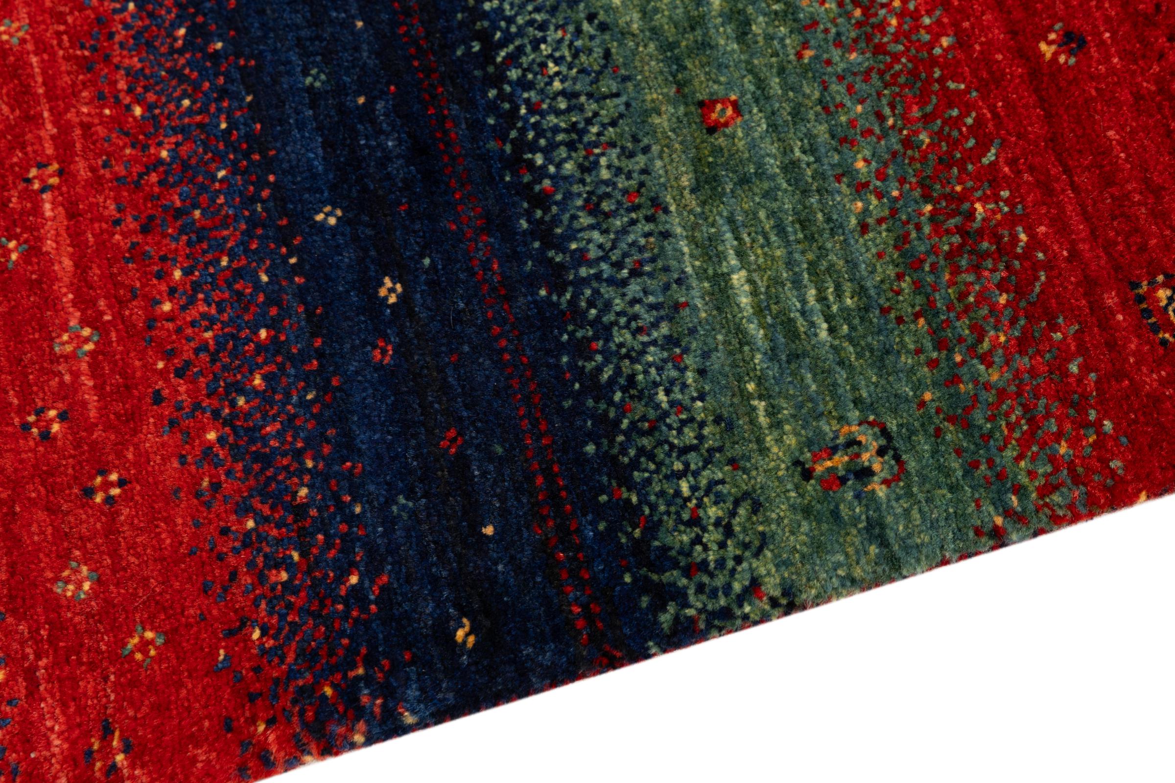 Ten piękny dywan jest perskim Gabbeh i dlatego należy do najwyższej jakości dywanów Gabbeh. Dywany są wiązane przez nomadów lub pół-nomadzi w Iranie zgodnie z tradycyjnym rzemiosłem. Proste motywy i wzory są w większości inspirowane bezpośrednim otoczeniem nomadów. Na przykład wielbłądy, drzewa lub krzewy można znaleźć na tradycyjnych dywanach. Perskie dywany Gabbeh wykonane są z wełny pochodzącej z lokalnie hodowanych stad owiec. Wełna jest więc w większości przypadków nadal obracana ręcznie. Tak więc każdy z tych orientalnych dywanów uosabia unikalny charakter wielowiekowej kultury.