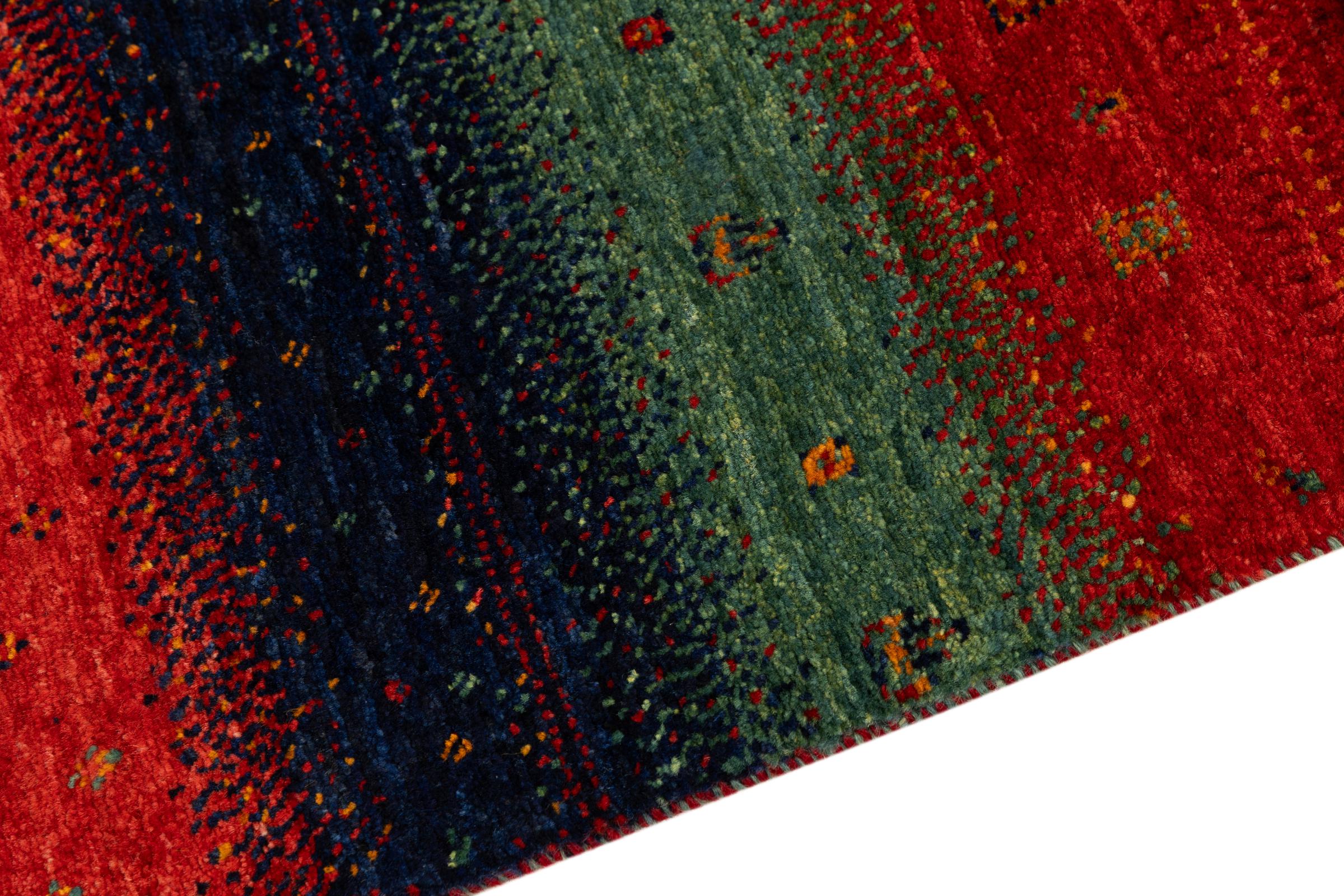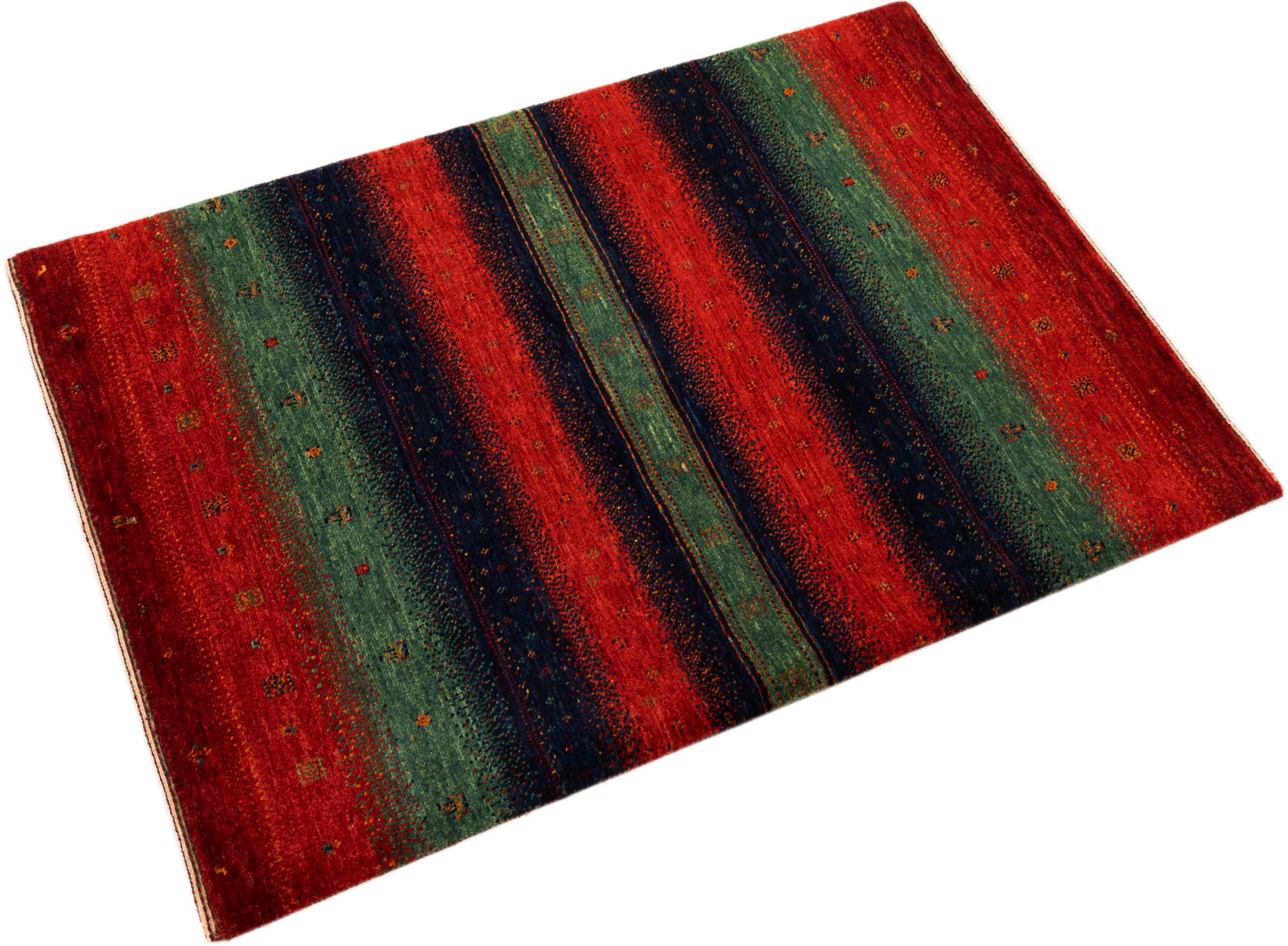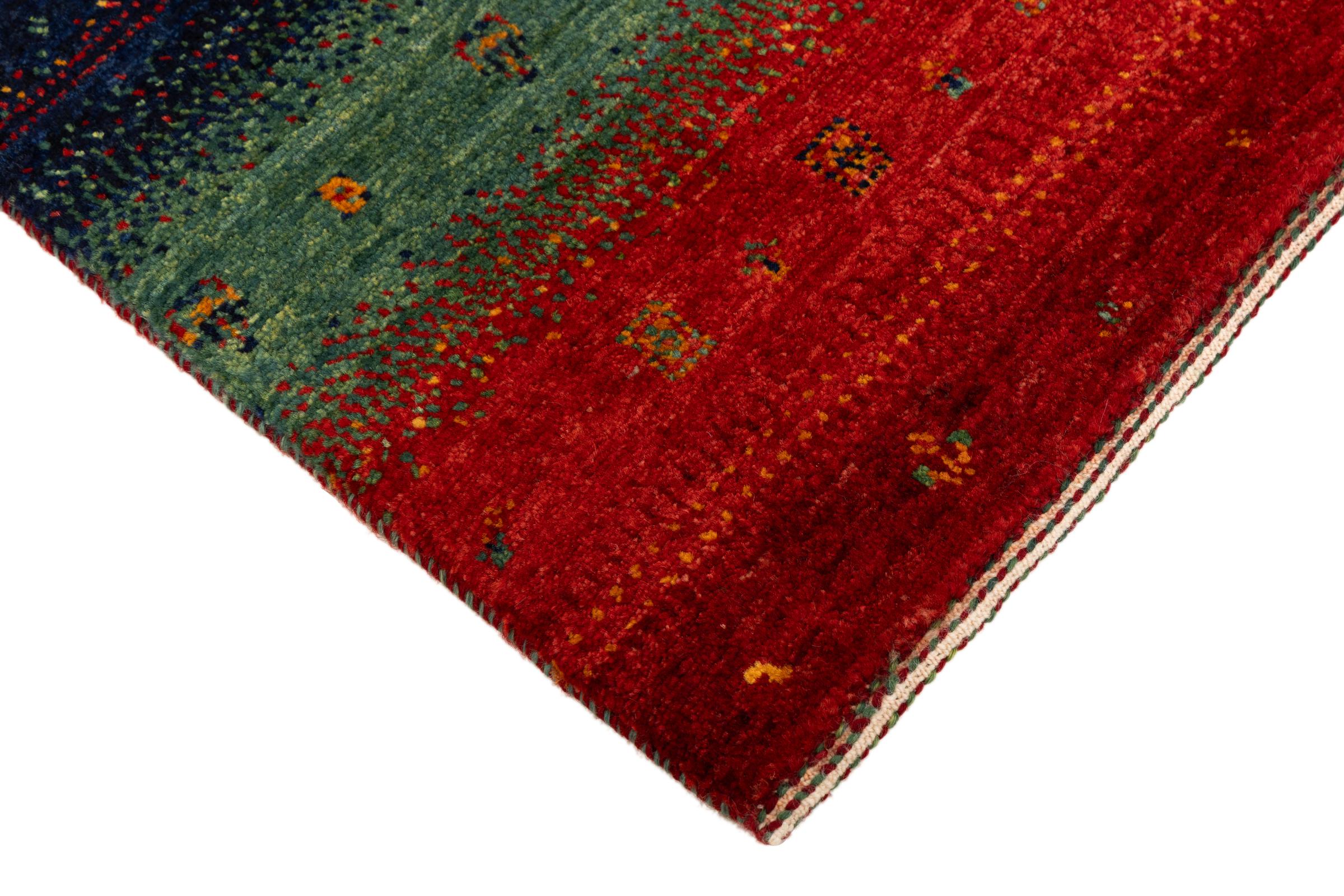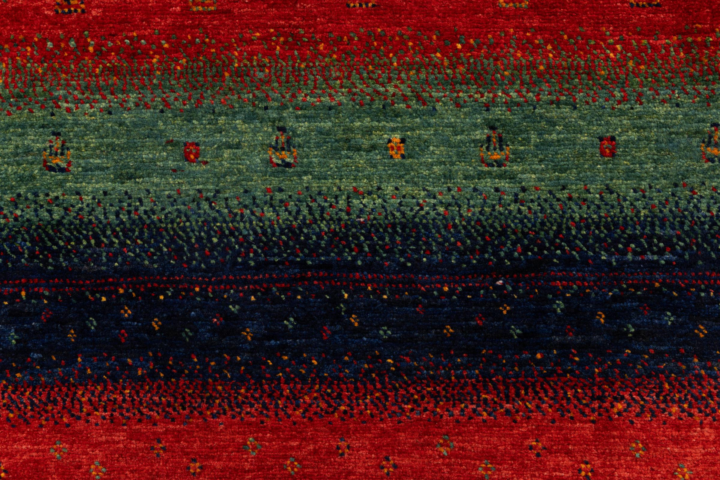 Ten piękny dywan jest perskim Gabbeh i dlatego należy do najwyższej jakości dywanów Gabbeh. Dywany są wiązane przez nomadów lub pół-nomadzi w Iranie zgodnie z tradycyjnym rzemiosłem. Proste motywy i wzory są w większości inspirowane bezpośrednim otoczeniem nomadów. Na przykład wielbłądy, drzewa lub krzewy można znaleźć na tradycyjnych dywanach. Perskie dywany Gabbeh wykonane są z wełny pochodzącej z lokalnie hodowanych stad owiec. Wełna jest więc w większości przypadków nadal obracana ręcznie. Tak więc każdy z tych orientalnych dywanów uosabia unikalny charakter wielowiekowej kultury.