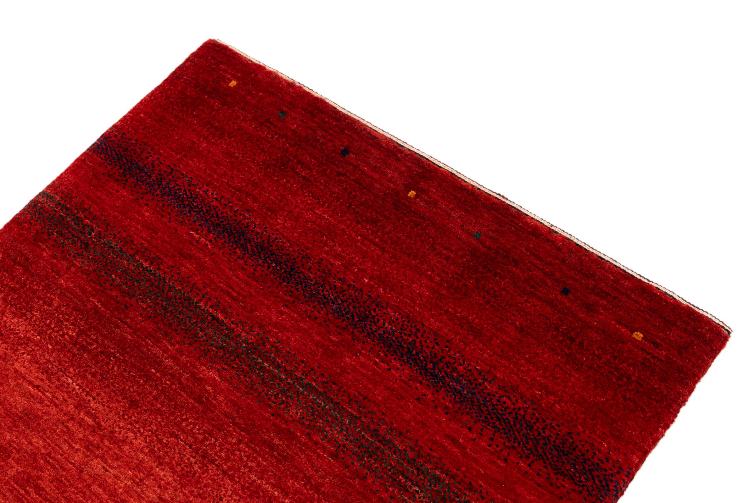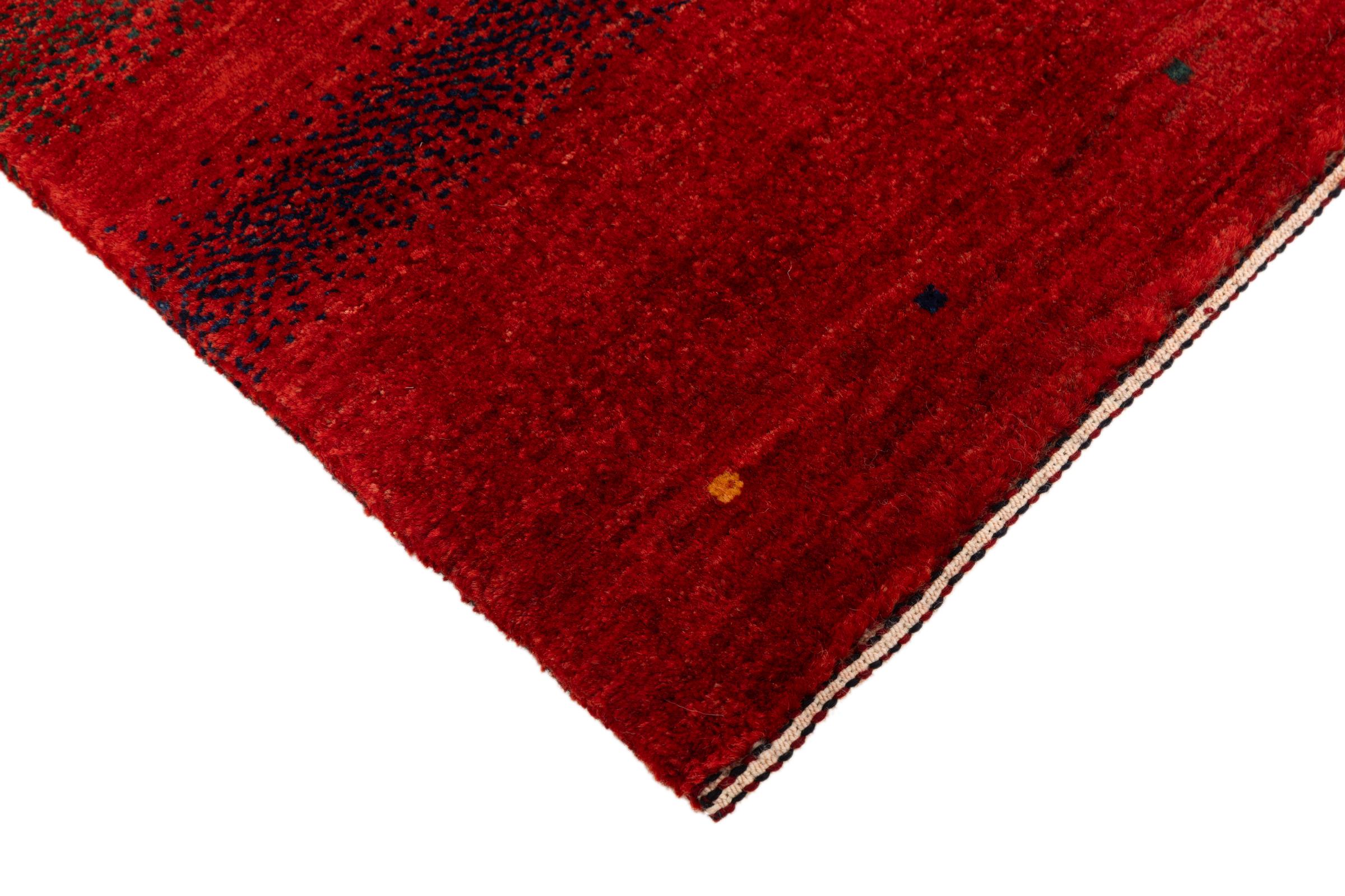 Ten piękny dywan jest perskim Gabbeh i dlatego należy do najwyższej jakości dywanów Gabbeh. Dywany są wiązane przez nomadów lub pół-nomadzi w Iranie zgodnie z tradycyjnym rzemiosłem. Proste motywy i wzory są w większości inspirowane bezpośrednim otoczeniem nomadów. Na przykład wielbłądy, drzewa lub krzewy można znaleźć na tradycyjnych dywanach. Perskie dywany Gabbeh wykonane są z wełny pochodzącej z lokalnie hodowanych stad owiec. Wełna jest więc w większości przypadków nadal obracana ręcznie. Tak więc każdy z tych orientalnych dywanów uosabia unikalny charakter wielowiekowej kultury.