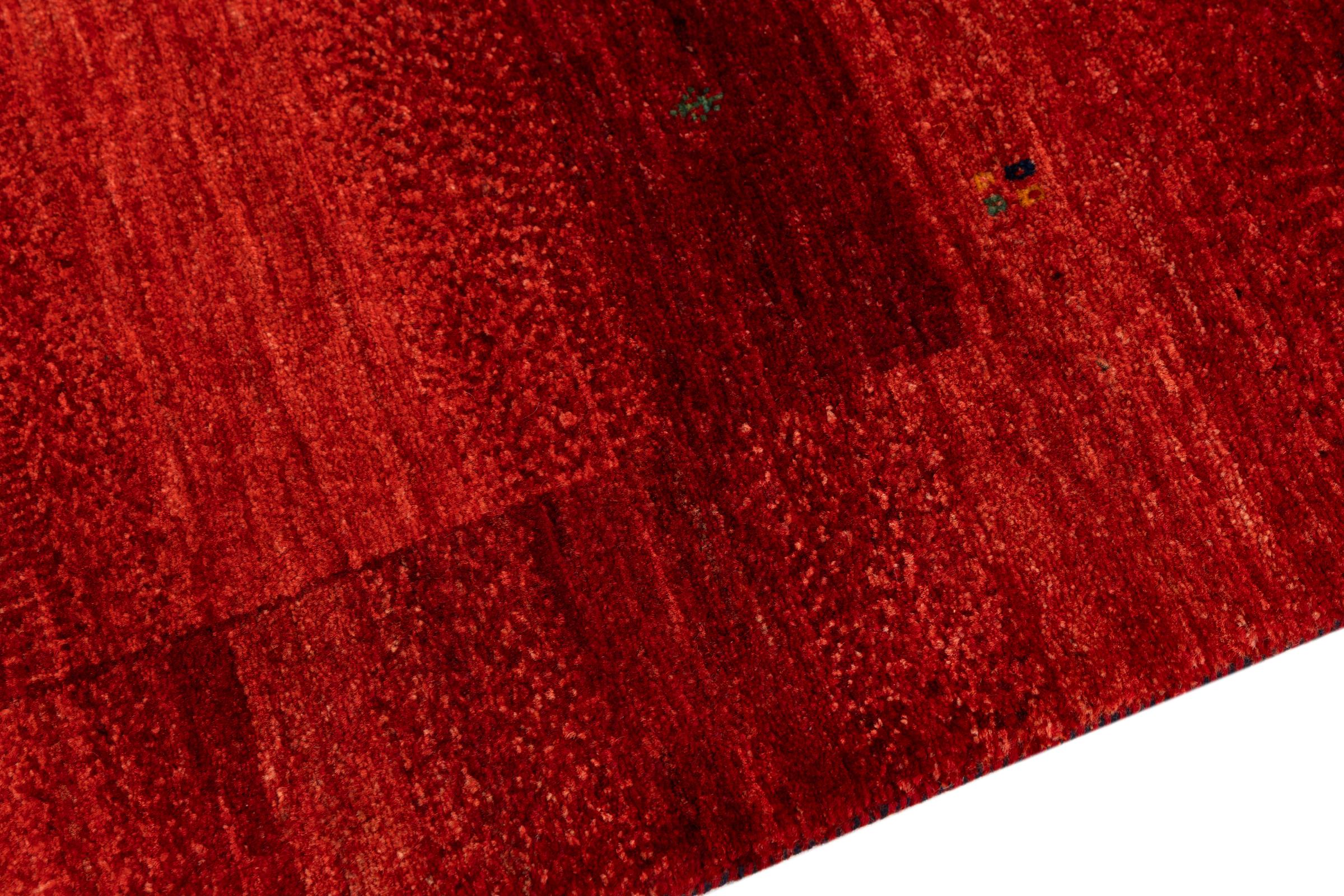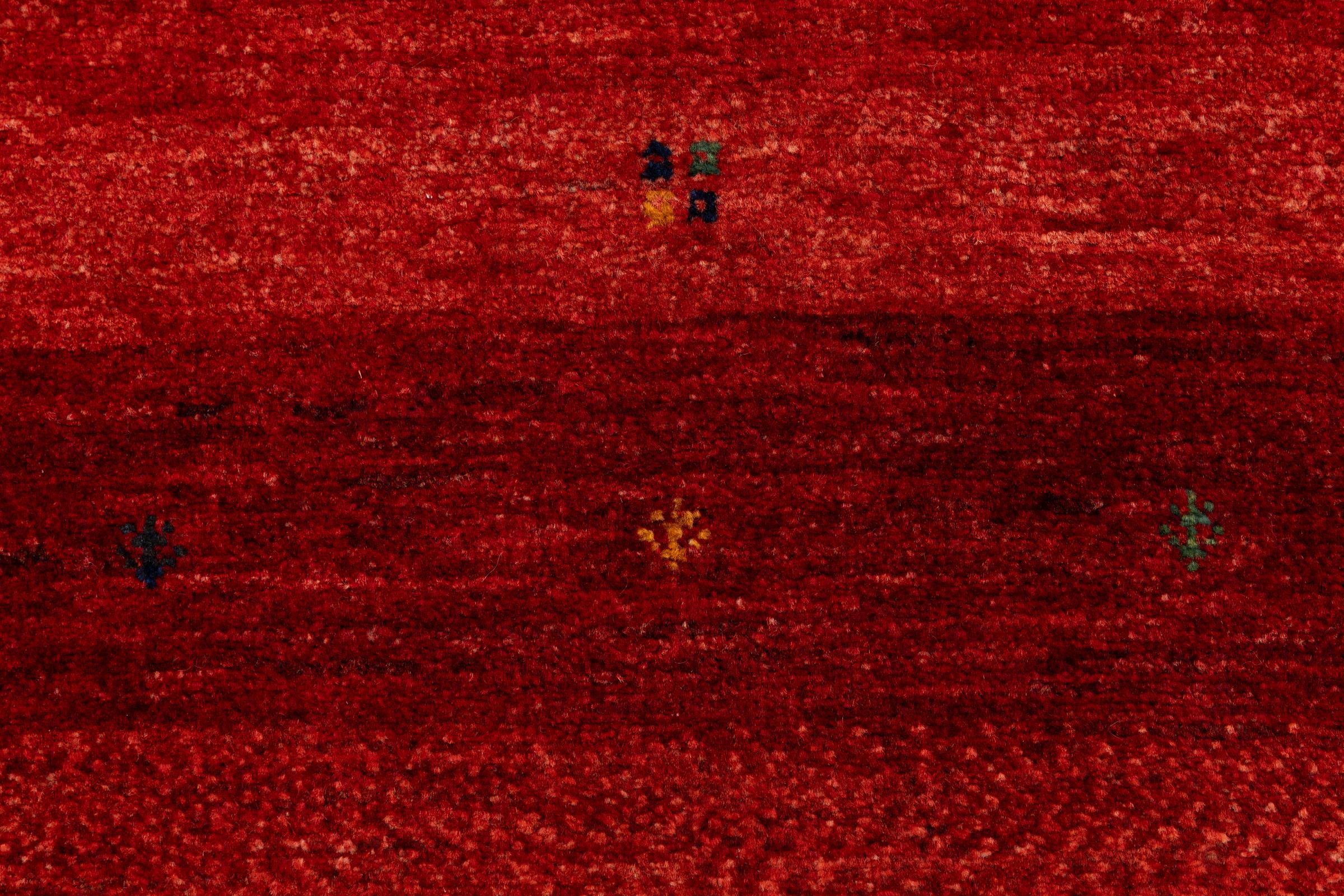 Ten piękny dywan jest perskim Gabbeh i dlatego należy do najwyższej jakości dywanów Gabbeh. Dywany są wiązane przez nomadów lub pół-nomadzi w Iranie zgodnie z tradycyjnym rzemiosłem. Proste motywy i wzory są w większości inspirowane bezpośrednim otoczeniem nomadów. Na przykład wielbłądy, drzewa lub krzewy można znaleźć na tradycyjnych dywanach. Perskie dywany Gabbeh wykonane są z wełny pochodzącej z lokalnie hodowanych stad owiec. Wełna jest więc w większości przypadków nadal obracana ręcznie. Tak więc każdy z tych orientalnych dywanów uosabia unikalny charakter wielowiekowej kultury.