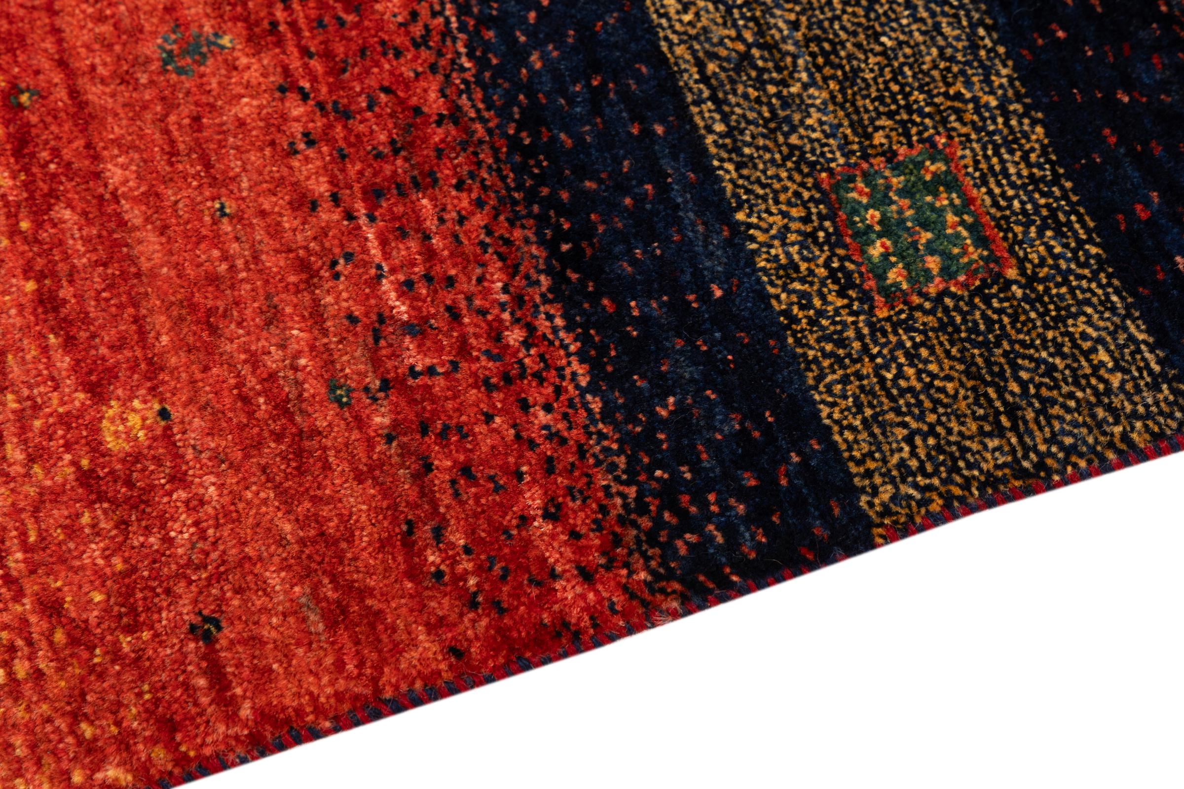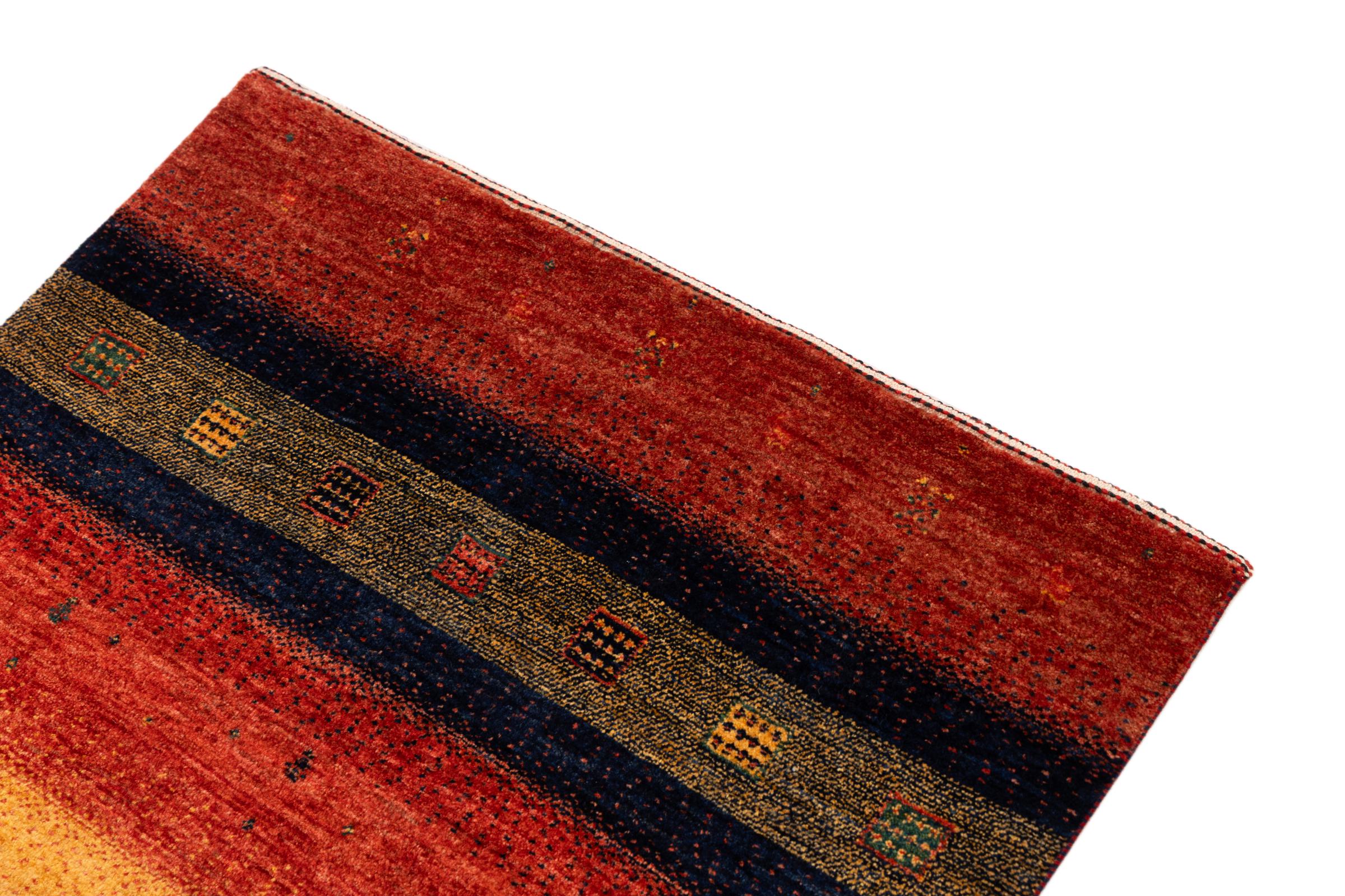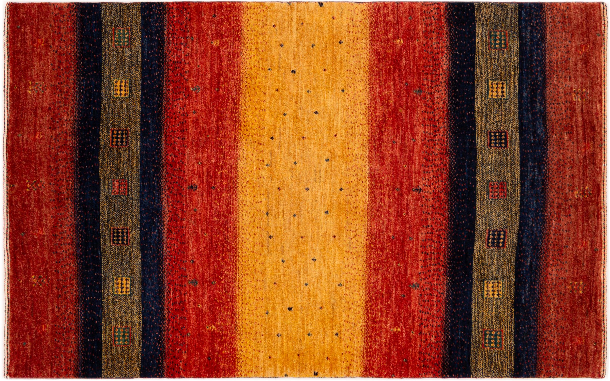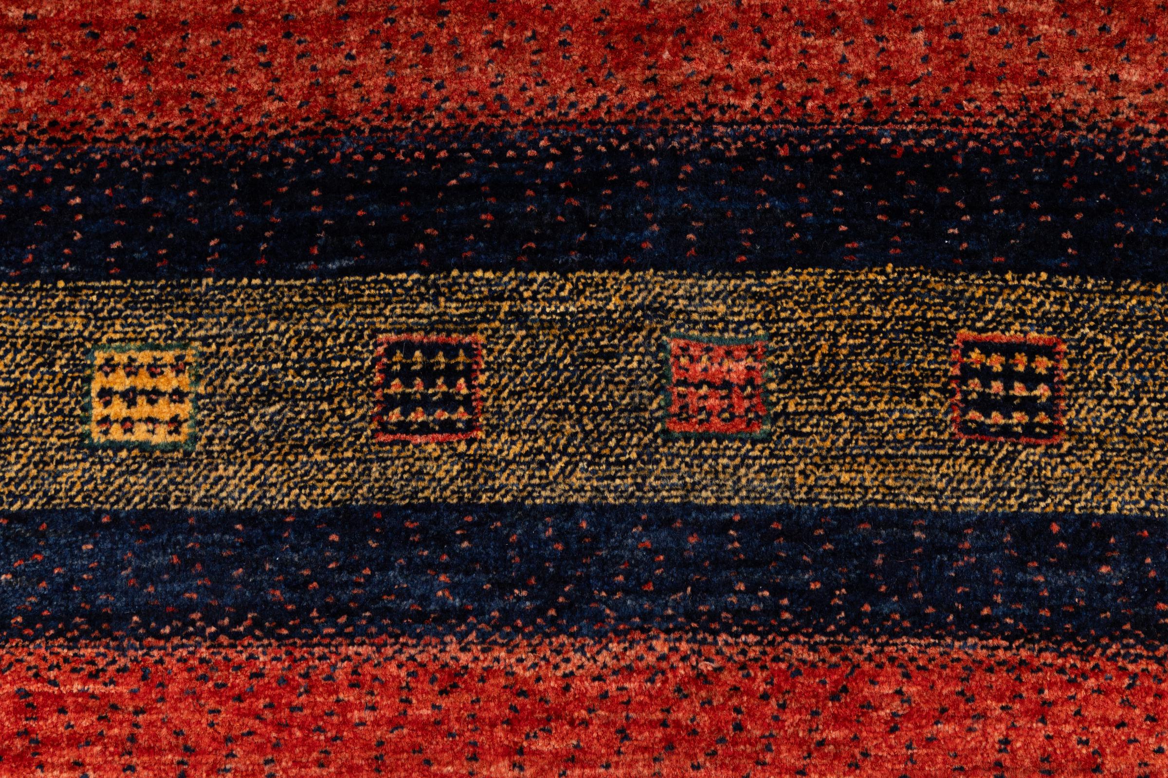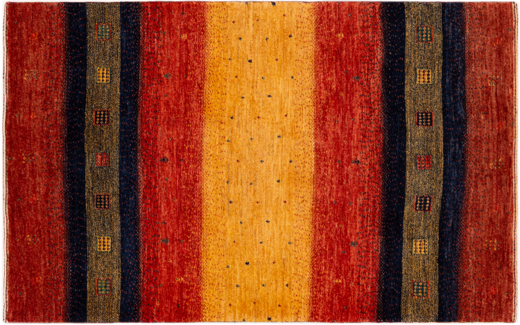 Ten piękny dywan jest perskim Gabbeh i dlatego należy do najwyższej jakości dywanów Gabbeh. Dywany są wiązane przez nomadów lub pół-nomadzi w Iranie zgodnie z tradycyjnym rzemiosłem. Proste motywy i wzory są w większości inspirowane bezpośrednim otoczeniem nomadów. Na przykład wielbłądy, drzewa lub krzewy można znaleźć na tradycyjnych dywanach. Perskie dywany Gabbeh wykonane są z wełny pochodzącej z lokalnie hodowanych stad owiec. Wełna jest więc w większości przypadków nadal obracana ręcznie. Tak więc każdy z tych orientalnych dywanów uosabia unikalny charakter wielowiekowej kultury.