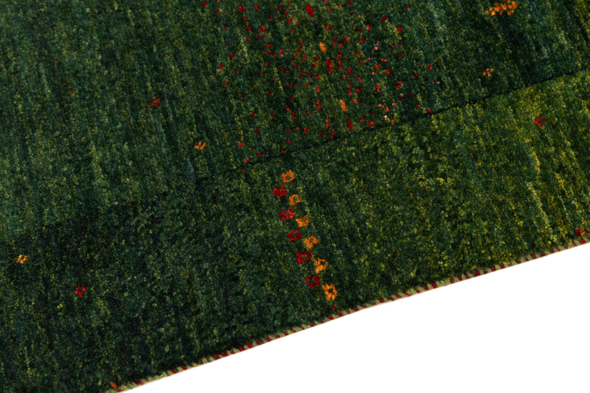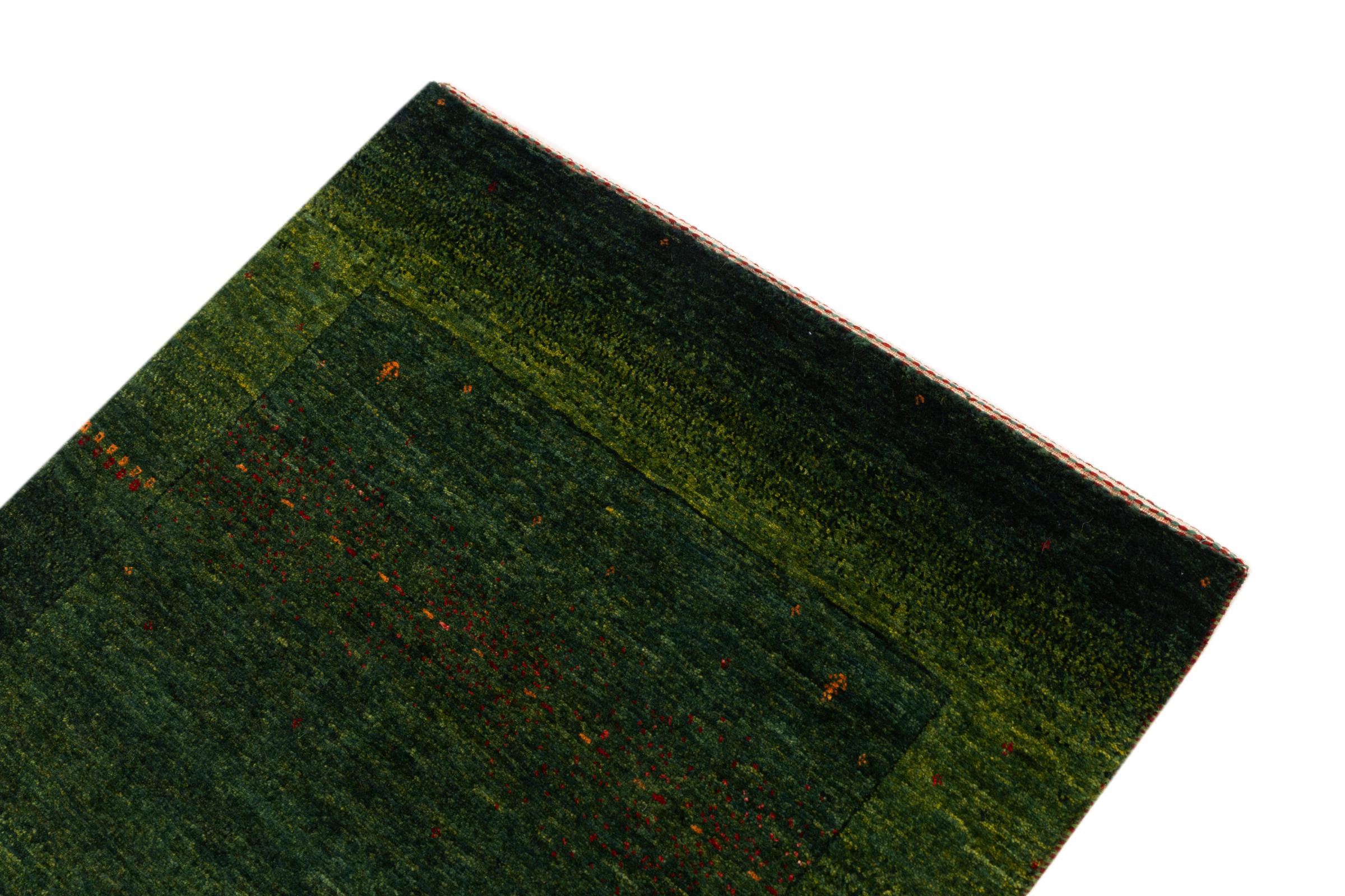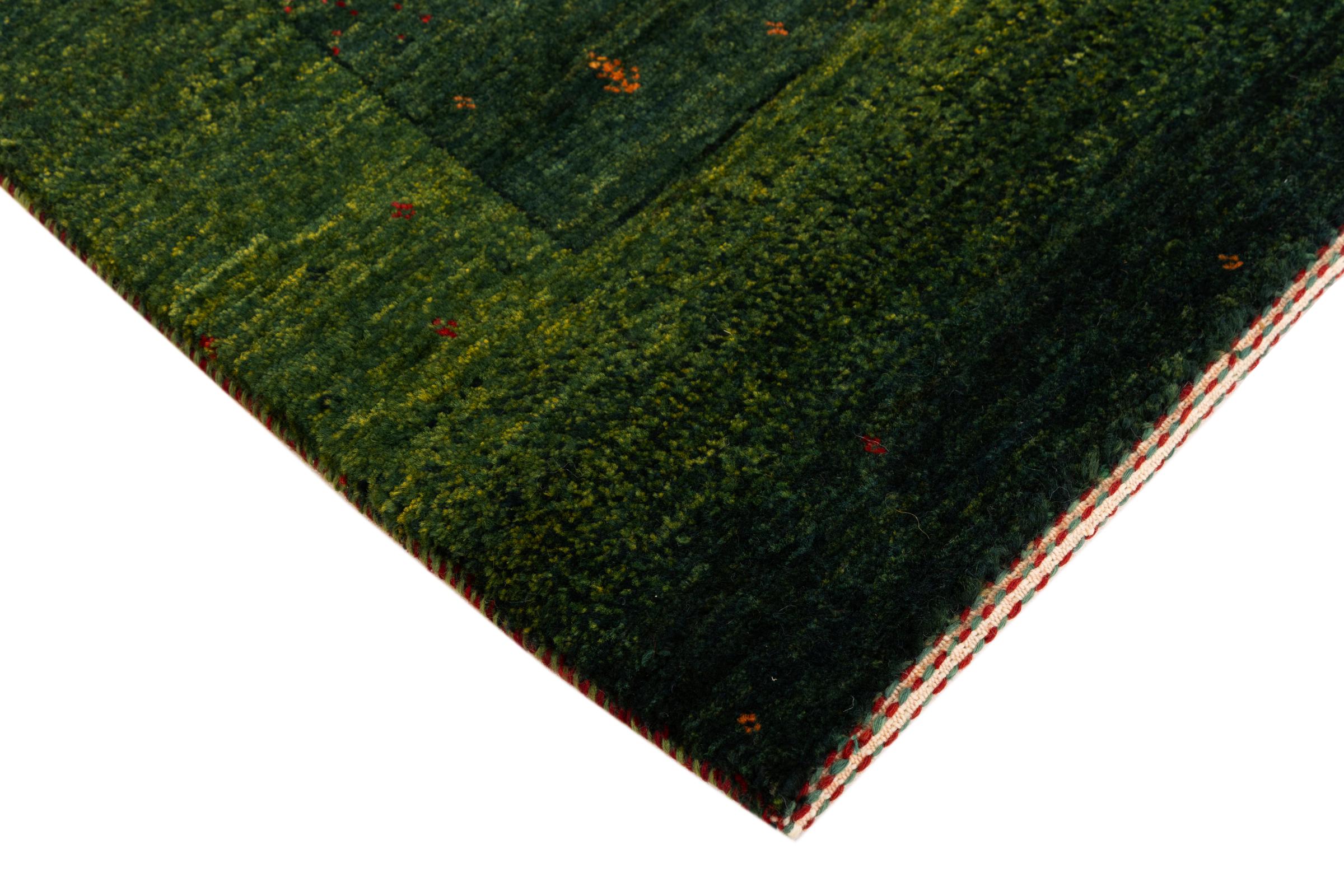 Ten piękny dywan jest perskim Gabbeh i dlatego należy do najwyższej jakości dywanów Gabbeh. Dywany są wiązane przez nomadów lub pół-nomadzi w Iranie zgodnie z tradycyjnym rzemiosłem. Proste motywy i wzory są w większości inspirowane bezpośrednim otoczeniem nomadów. Na przykład wielbłądy, drzewa lub krzewy można znaleźć na tradycyjnych dywanach. Perskie dywany Gabbeh wykonane są z wełny pochodzącej z lokalnie hodowanych stad owiec. Wełna jest więc w większości przypadków nadal obracana ręcznie. Tak więc każdy z tych orientalnych dywanów uosabia unikalny charakter wielowiekowej kultury.