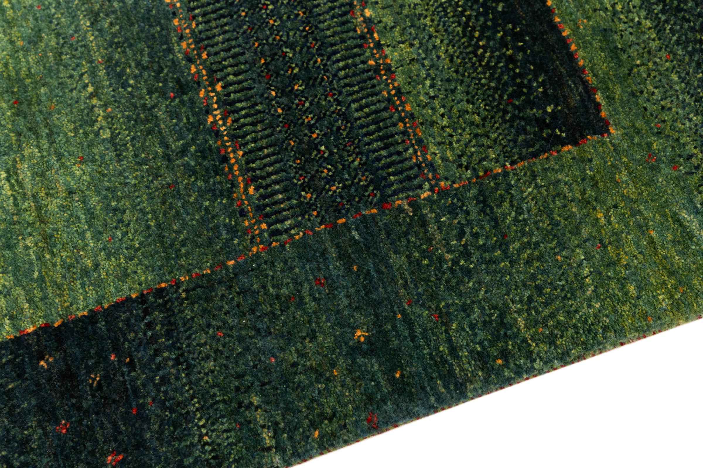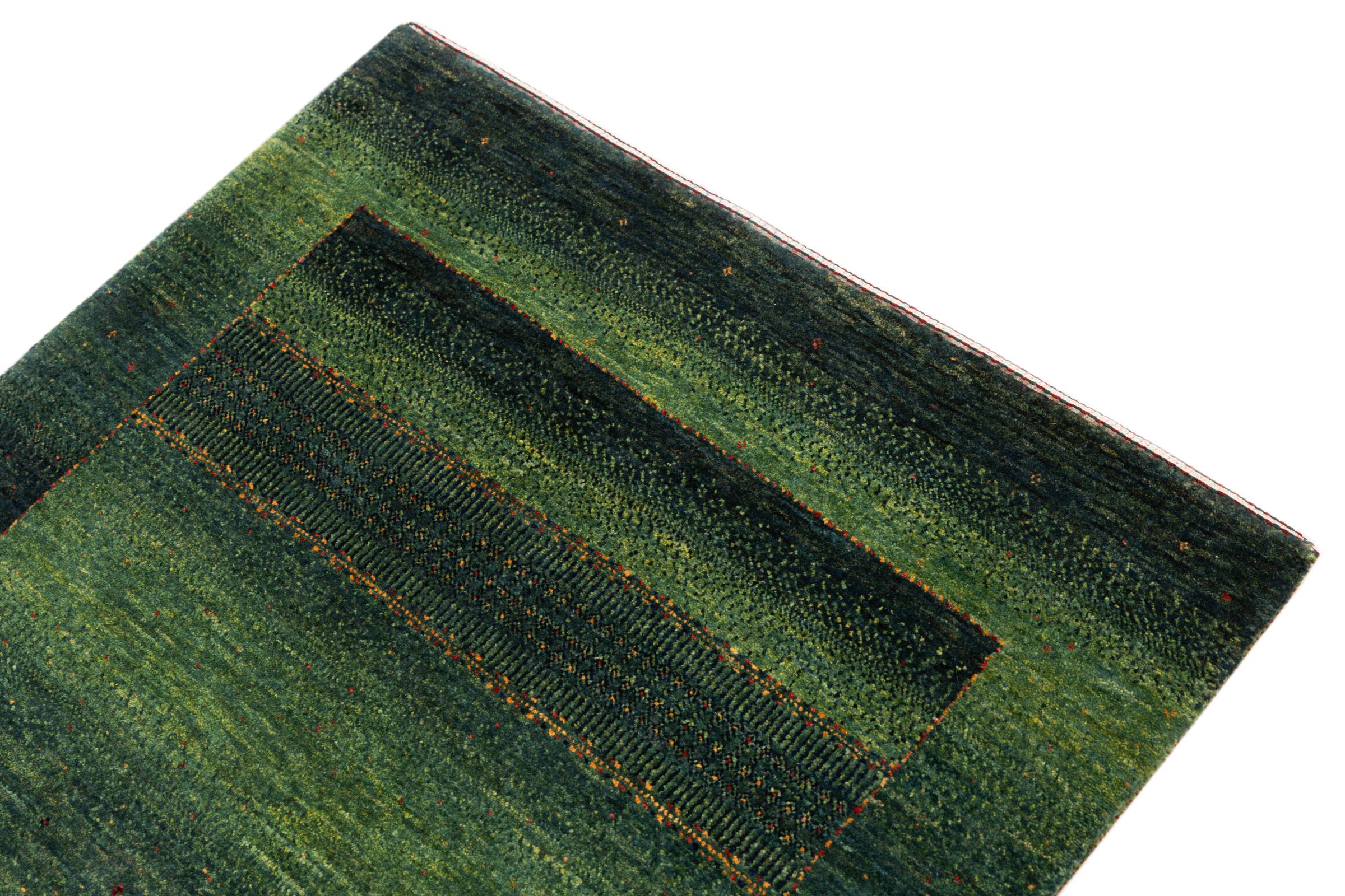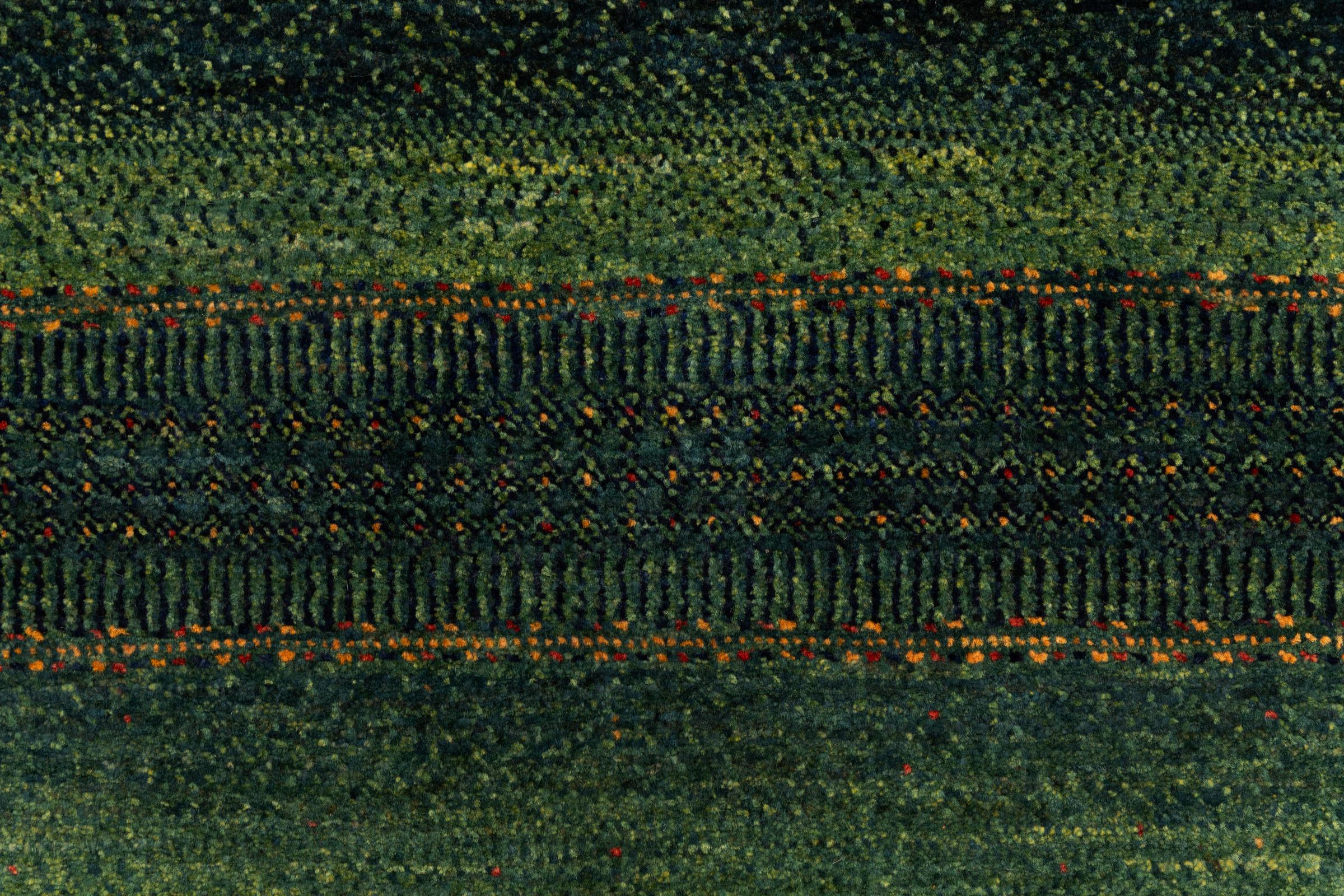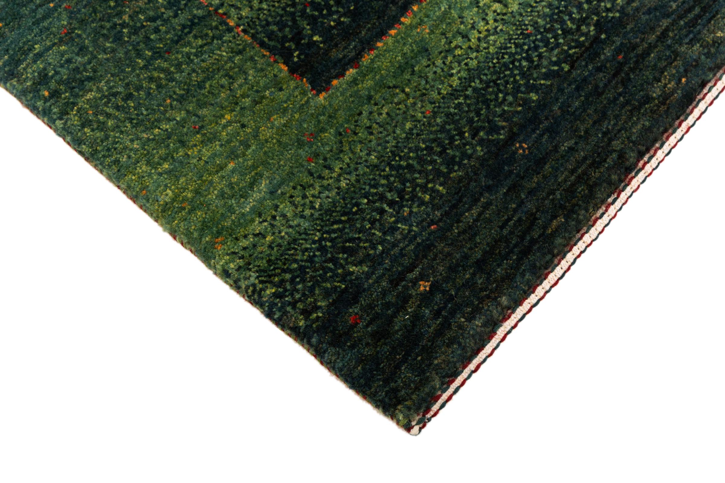 Ten piękny dywan jest perskim Gabbeh i dlatego należy do najwyższej jakości dywanów Gabbeh. Dywany są wiązane przez nomadów lub pół-nomadzi w Iranie zgodnie z tradycyjnym rzemiosłem. Proste motywy i wzory są w większości inspirowane bezpośrednim otoczeniem nomadów. Na przykład wielbłądy, drzewa lub krzewy można znaleźć na tradycyjnych dywanach. Perskie dywany Gabbeh wykonane są z wełny pochodzącej z lokalnie hodowanych stad owiec. Wełna jest więc w większości przypadków nadal obracana ręcznie. Tak więc każdy z tych orientalnych dywanów uosabia unikalny charakter wielowiekowej kultury.