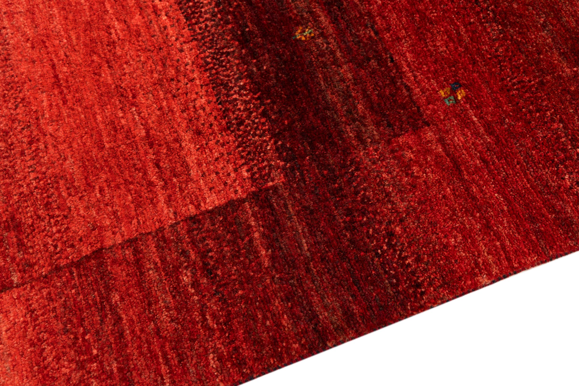 Ten piękny dywan jest perskim Gabbeh i dlatego należy do najwyższej jakości dywanów Gabbeh. Dywany są wiązane przez nomadów lub pół-nomadzi w Iranie zgodnie z tradycyjnym rzemiosłem. Proste motywy i wzory są w większości inspirowane bezpośrednim otoczeniem nomadów. Na przykład wielbłądy, drzewa lub krzewy można znaleźć na tradycyjnych dywanach. Perskie dywany Gabbeh wykonane są z wełny pochodzącej z lokalnie hodowanych stad owiec. Wełna jest więc w większości przypadków nadal obracana ręcznie. Tak więc każdy z tych orientalnych dywanów uosabia unikalny charakter wielowiekowej kultury.