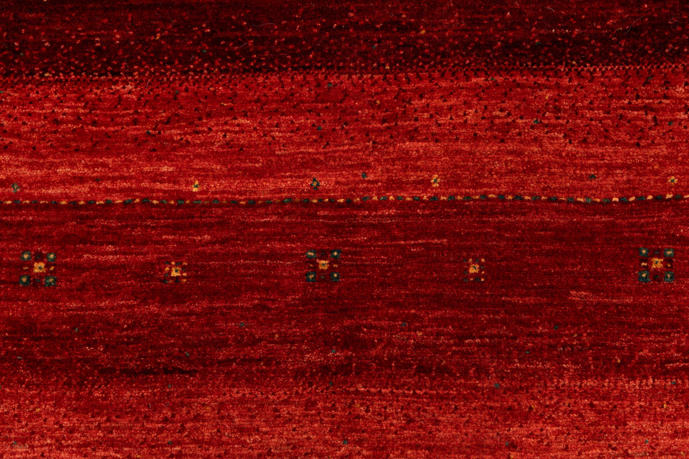 Ten piękny dywan jest perskim Gabbeh i dlatego należy do najwyższej jakości dywanów Gabbeh. Dywany są wiązane przez nomadów lub pół-nomadzi w Iranie zgodnie z tradycyjnym rzemiosłem. Proste motywy i wzory są w większości inspirowane bezpośrednim otoczeniem nomadów. Na przykład wielbłądy, drzewa lub krzewy można znaleźć na tradycyjnych dywanach. Perskie dywany Gabbeh wykonane są z wełny pochodzącej z lokalnie hodowanych stad owiec. Wełna jest więc w większości przypadków nadal obracana ręcznie. Tak więc każdy z tych orientalnych dywanów uosabia unikalny charakter wielowiekowej kultury.