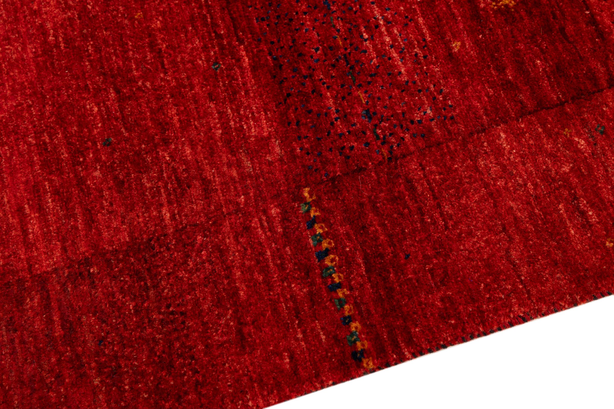 Ten piękny dywan jest perskim Gabbeh i dlatego należy do najwyższej jakości dywanów Gabbeh. Dywany są wiązane przez nomadów lub pół-nomadzi w Iranie zgodnie z tradycyjnym rzemiosłem. Proste motywy i wzory są w większości inspirowane bezpośrednim otoczeniem nomadów. Na przykład wielbłądy, drzewa lub krzewy można znaleźć na tradycyjnych dywanach. Perskie dywany Gabbeh wykonane są z wełny pochodzącej z lokalnie hodowanych stad owiec. Wełna jest więc w większości przypadków nadal obracana ręcznie. Tak więc każdy z tych orientalnych dywanów uosabia unikalny charakter wielowiekowej kultury.