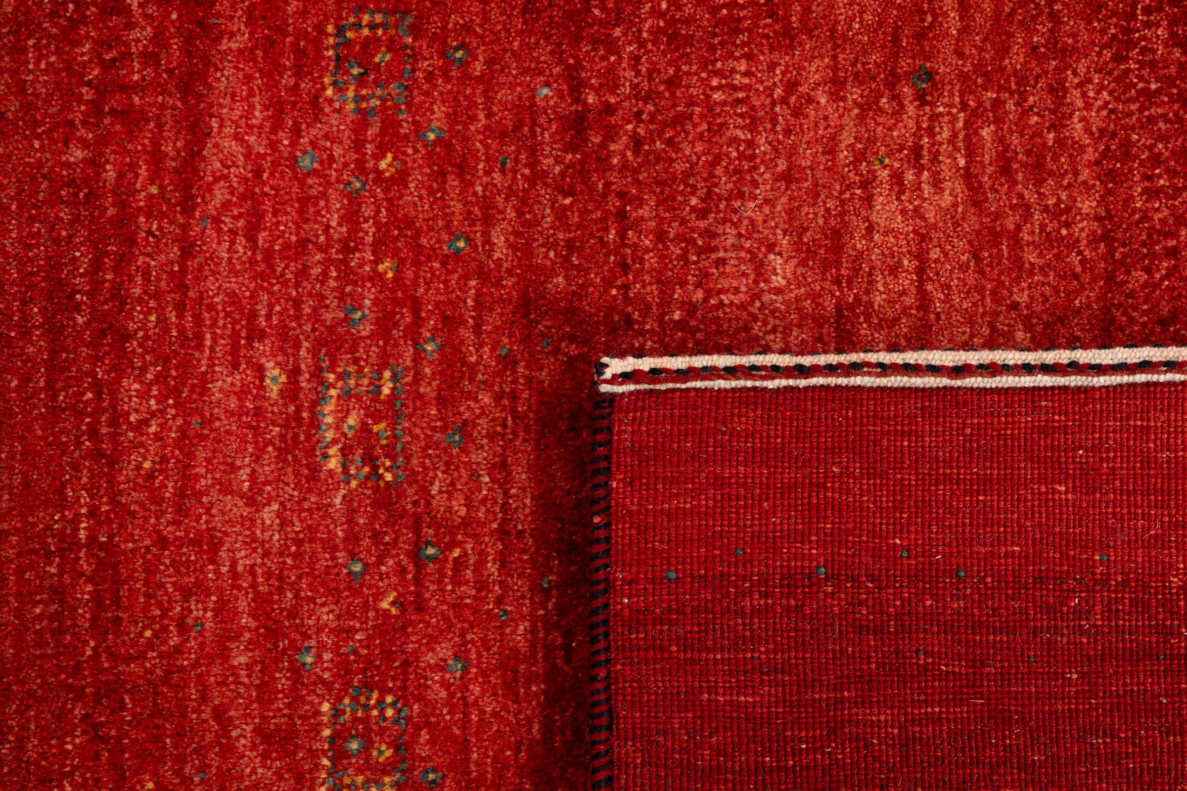 Ten piękny dywan jest perskim Gabbeh i dlatego należy do najwyższej jakości dywanów Gabbeh. Dywany są wiązane przez nomadów lub pół-nomadzi w Iranie zgodnie z tradycyjnym rzemiosłem. Proste motywy i wzory są w większości inspirowane bezpośrednim otoczeniem nomadów. Na przykład wielbłądy, drzewa lub krzewy można znaleźć na tradycyjnych dywanach. Perskie dywany Gabbeh wykonane są z wełny pochodzącej z lokalnie hodowanych stad owiec. Wełna jest więc w większości przypadków nadal obracana ręcznie. Tak więc każdy z tych orientalnych dywanów uosabia unikalny charakter wielowiekowej kultury.