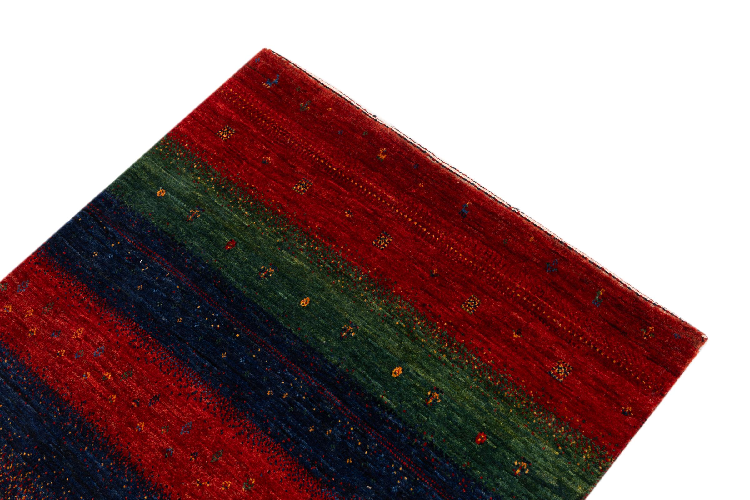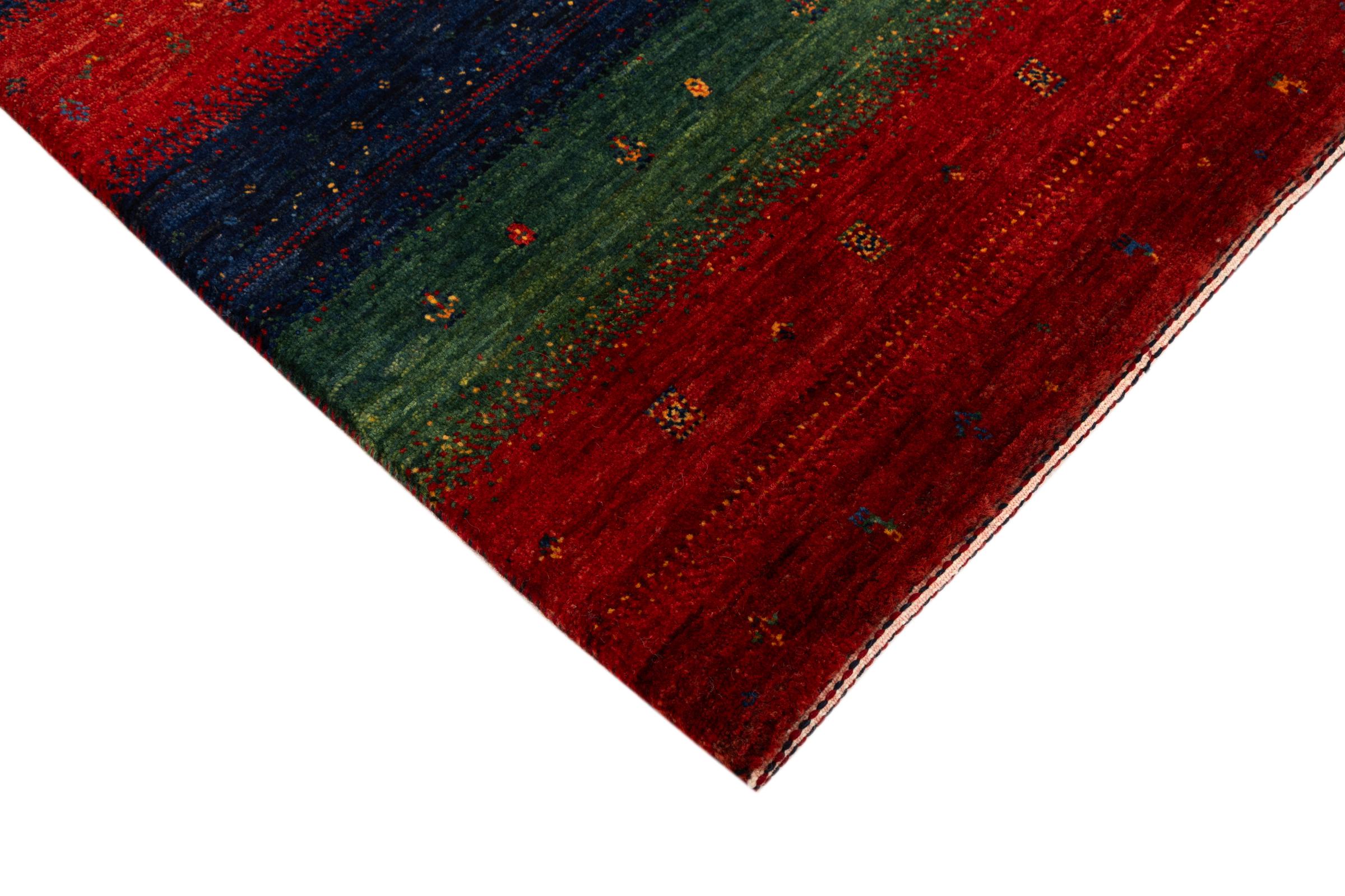 Ten piękny dywan jest perskim Gabbeh i dlatego należy do najwyższej jakości dywanów Gabbeh. Dywany są wiązane przez nomadów lub pół-nomadzi w Iranie zgodnie z tradycyjnym rzemiosłem. Proste motywy i wzory są w większości inspirowane bezpośrednim otoczeniem nomadów. Na przykład wielbłądy, drzewa lub krzewy można znaleźć na tradycyjnych dywanach. Perskie dywany Gabbeh wykonane są z wełny pochodzącej z lokalnie hodowanych stad owiec. Wełna jest więc w większości przypadków nadal obracana ręcznie. Tak więc każdy z tych orientalnych dywanów uosabia unikalny charakter wielowiekowej kultury.