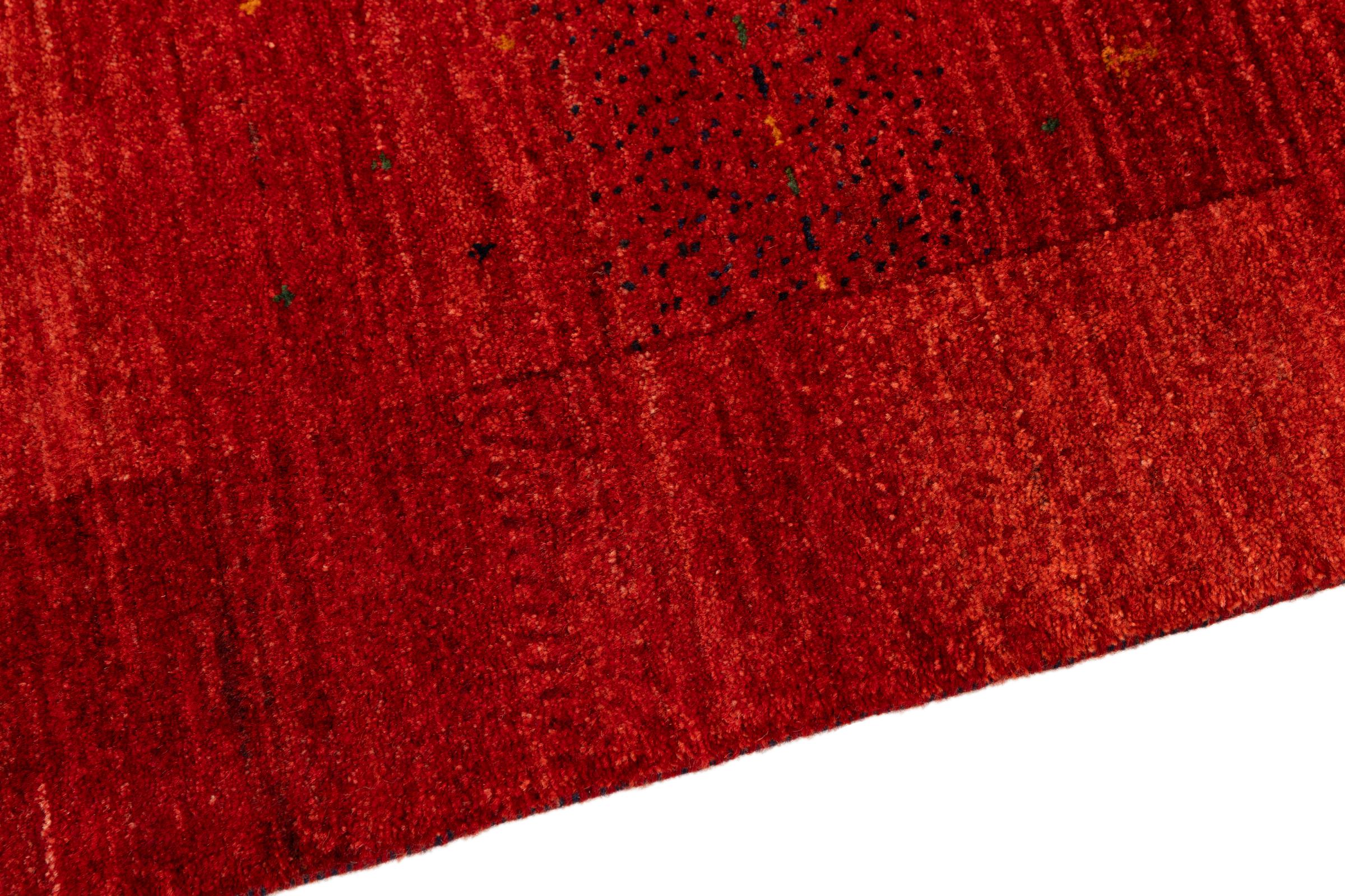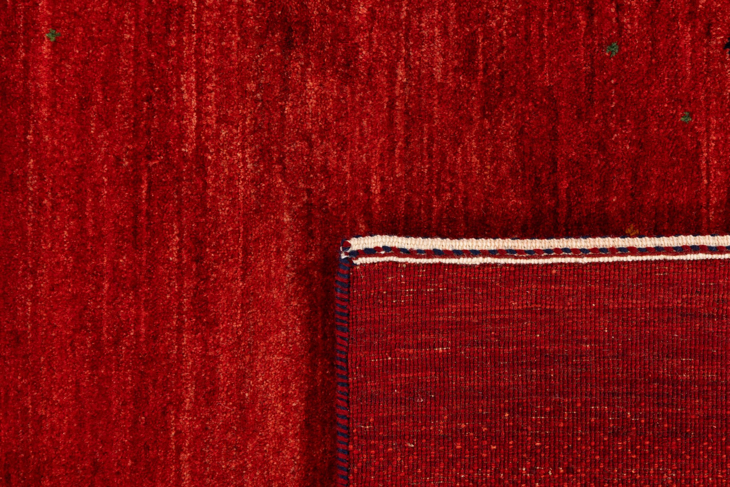 Ten piękny dywan jest perskim Gabbeh i dlatego należy do najwyższej jakości dywanów Gabbeh. Dywany są wiązane przez nomadów lub pół-nomadzi w Iranie zgodnie z tradycyjnym rzemiosłem. Proste motywy i wzory są w większości inspirowane bezpośrednim otoczeniem nomadów. Na przykład wielbłądy, drzewa lub krzewy można znaleźć na tradycyjnych dywanach. Perskie dywany Gabbeh wykonane są z wełny pochodzącej z lokalnie hodowanych stad owiec. Wełna jest więc w większości przypadków nadal obracana ręcznie. Tak więc każdy z tych orientalnych dywanów uosabia unikalny charakter wielowiekowej kultury.