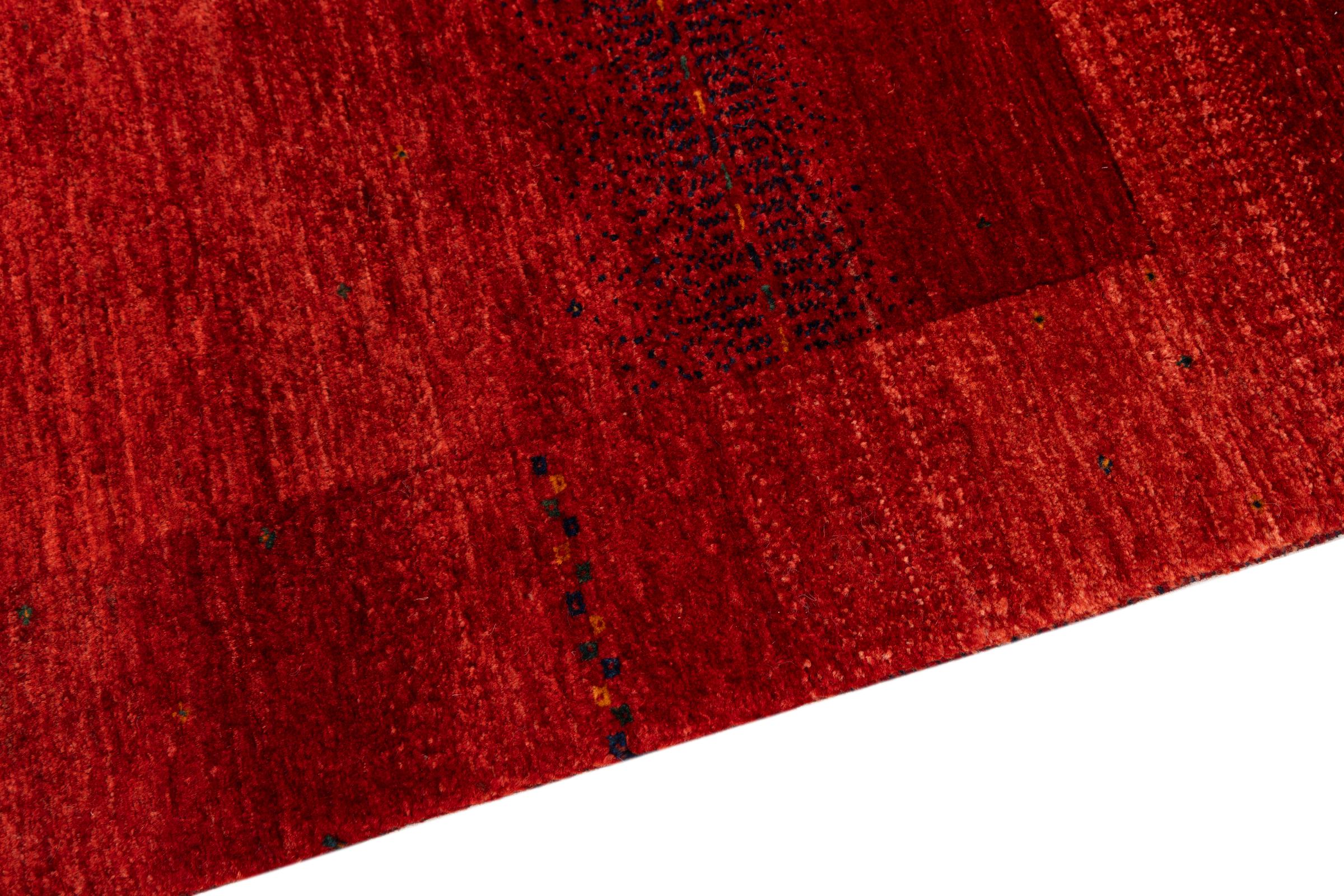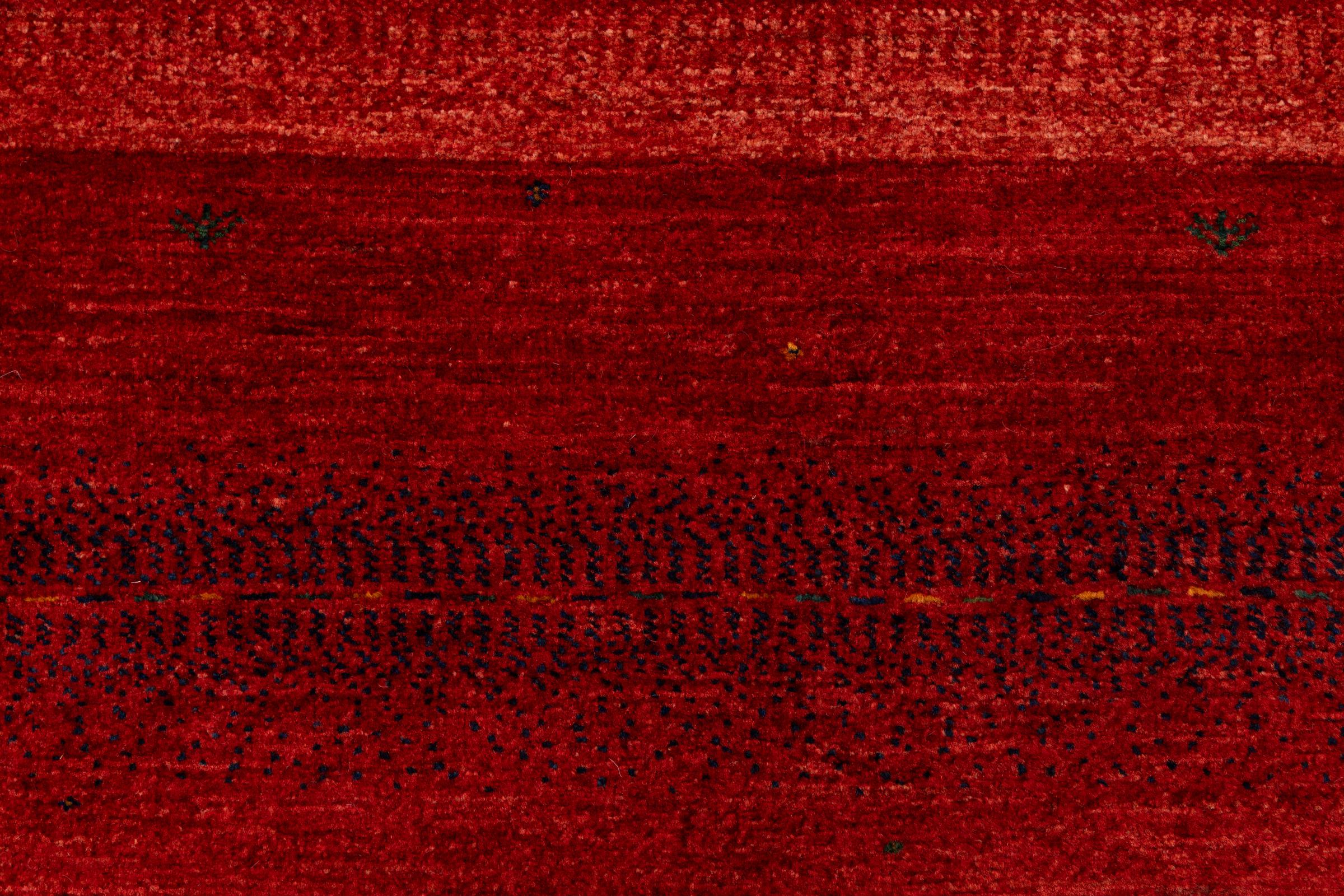 Ten piękny dywan jest perskim Gabbeh i dlatego należy do najwyższej jakości dywanów Gabbeh. Dywany są wiązane przez nomadów lub pół-nomadzi w Iranie zgodnie z tradycyjnym rzemiosłem. Proste motywy i wzory są w większości inspirowane bezpośrednim otoczeniem nomadów. Na przykład wielbłądy, drzewa lub krzewy można znaleźć na tradycyjnych dywanach. Perskie dywany Gabbeh wykonane są z wełny pochodzącej z lokalnie hodowanych stad owiec. Wełna jest więc w większości przypadków nadal obracana ręcznie. Tak więc każdy z tych orientalnych dywanów uosabia unikalny charakter wielowiekowej kultury.