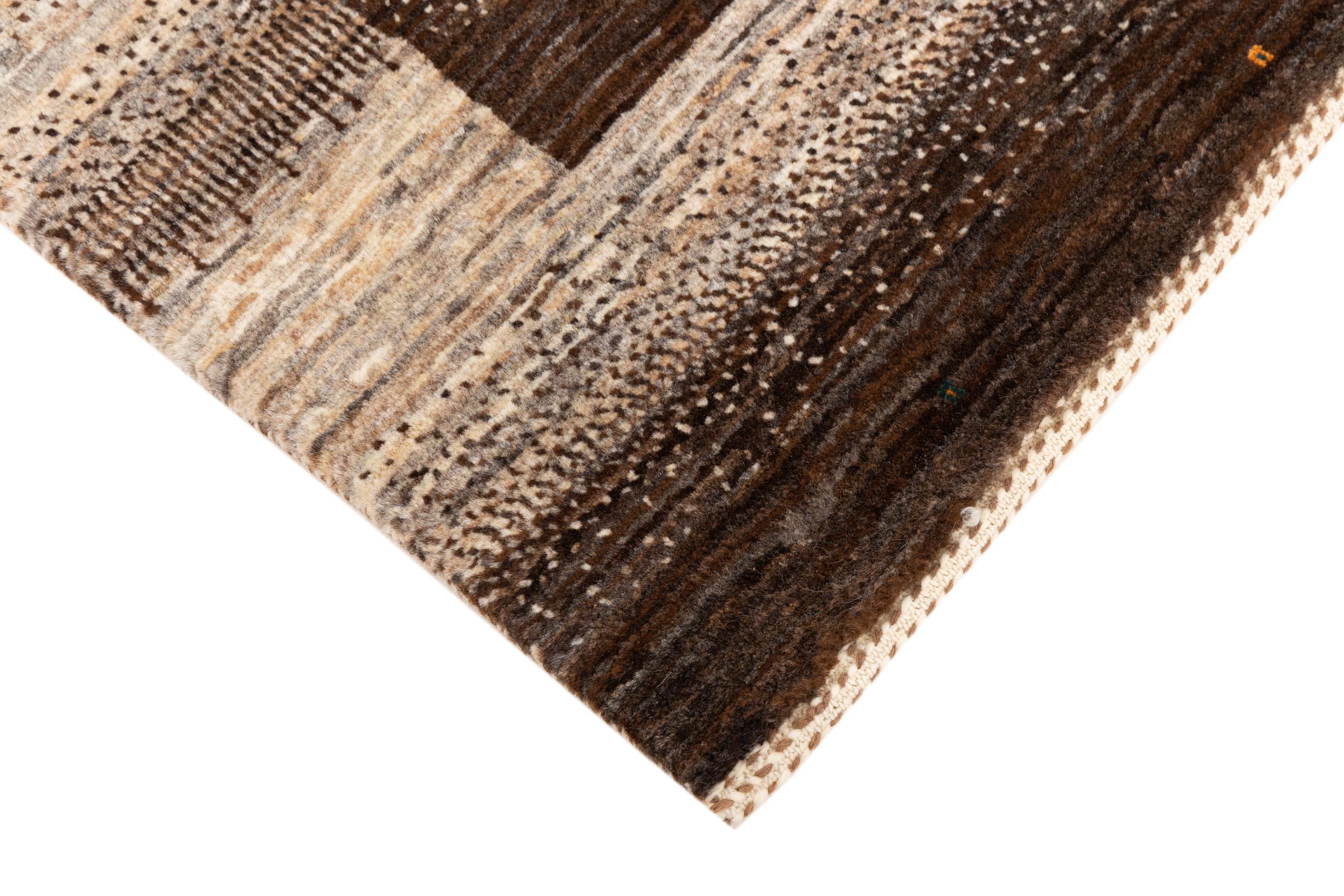 Ten piękny dywan jest perskim Gabbeh i dlatego należy do najwyższej jakości dywanów Gabbeh. Dywany są wiązane przez nomadów lub pół-nomadzi w Iranie zgodnie z tradycyjnym rzemiosłem. Proste motywy i wzory są w większości inspirowane bezpośrednim otoczeniem nomadów. Na przykład wielbłądy, drzewa lub krzewy można znaleźć na tradycyjnych dywanach. Perskie dywany Gabbeh wykonane są z wełny pochodzącej z lokalnie hodowanych stad owiec. Wełna jest więc w większości przypadków nadal obracana ręcznie. Tak więc każdy z tych orientalnych dywanów uosabia unikalny charakter wielowiekowej kultury.
